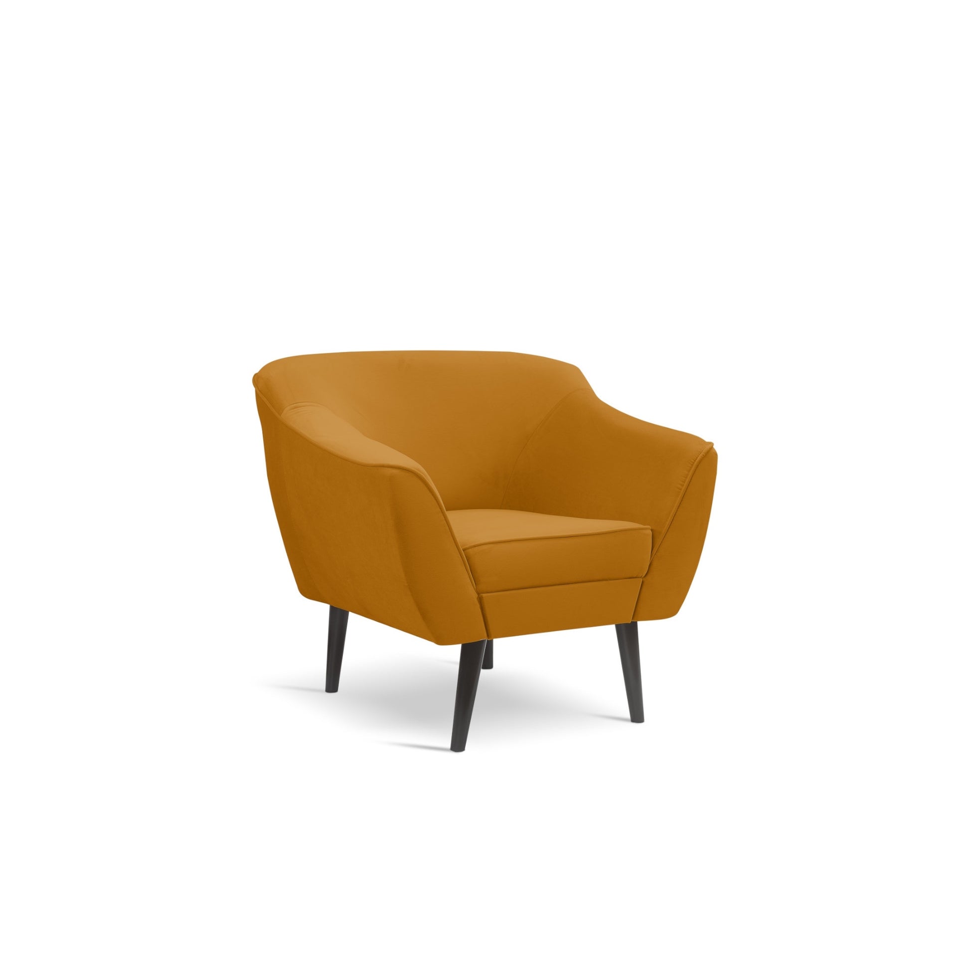 The back of the armchair is upholstered in the same fabric. It's designed to stand in the center of the room as a freestanding piece. And you know what's best? It's incredibly easy to clean. It's lightweight – it's easy to move, and its 22 cm high beech legs make it easy to vacuum. A great feature. And it's very comfortable – after all, it's velvet. The durable construction is made of a combination of particleboard, hardwood plywood, and wood.
