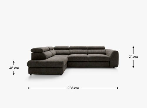 Wide, soft seats and thick backrests ensure comfort regardless of the time of day. The extended corner section (207 cm) allows you to stretch your legs freely and relax in a semi-reclined position. Additionally, adjustable headrests allow you to adjust the support angle to your preferences – perfect for a longer rest, an evening watching a movie, or an afternoon nap.