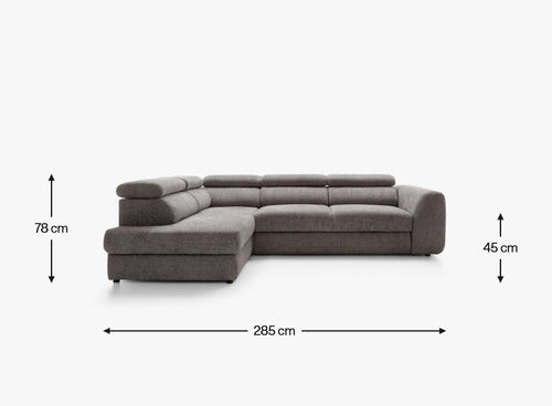 Wide, soft seats and thick backrests ensure comfort regardless of the time of day. The extended corner section (207 cm) allows you to stretch your legs freely and relax in a semi-reclined position. Additionally, adjustable headrests allow you to adjust the support angle to your preferences – perfect for a longer rest, an evening watching a movie, or an afternoon nap.