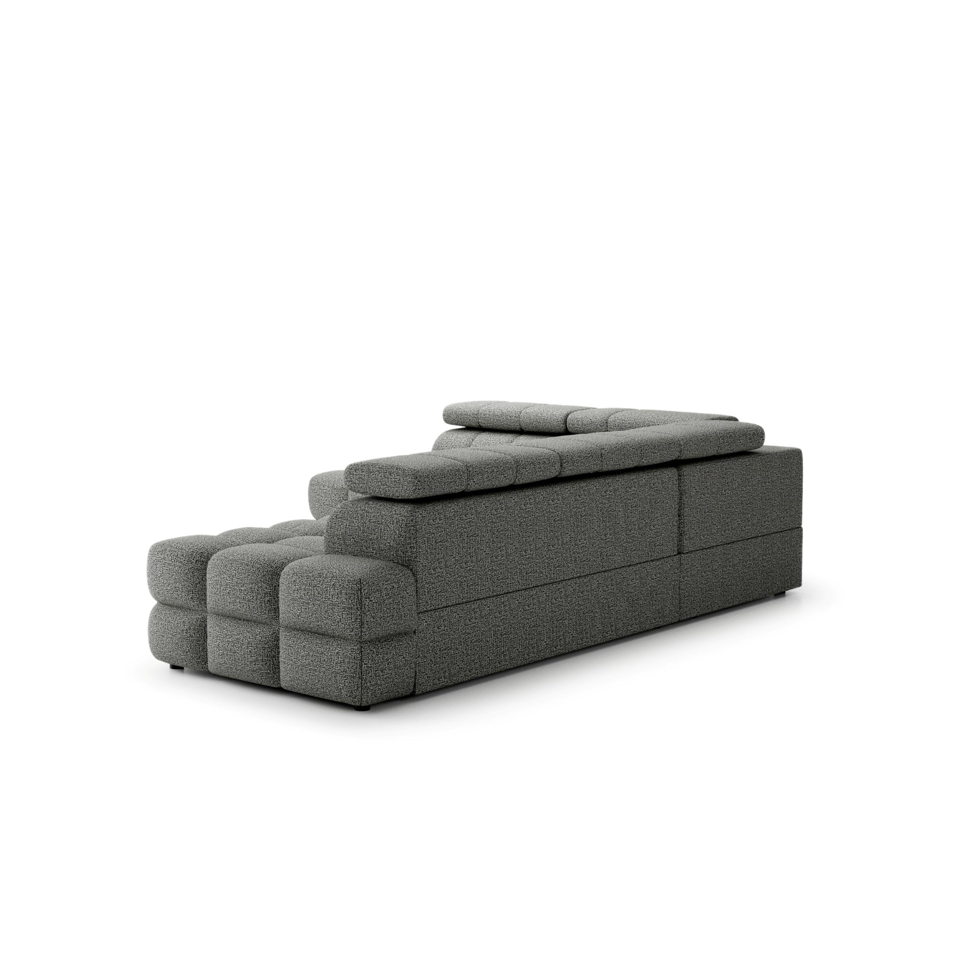 Funkcjonalność narożnika podkreślają wielostopniowo regulowane zagłówki, które pozwalają dopasować podparcie głowy i karku do ulubionej pozycji – idealne do czytania, rozmów czy wieczornego seansu. Buffalo posiada również funkcję spania o powierzchni 206 x 142 cm, umożliwiając wygodne przenocowanie gości lub stworzenie dodatkowej przestrzeni do snu.