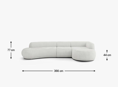 Przy szerokości 366 cm narożnik Gio tworzy imponującą, a jednocześnie harmonijną strefę relaksu, która naturalnie staje się centralnym punktem salonu. Jak wszystkie elementy kolekcji Gio, również ten układ jest częścią modułowego systemu, który pozwala dowolnie komponować i personalizować układy zgodnie z własnymi potrzebami, korzystając z konfiguratora.