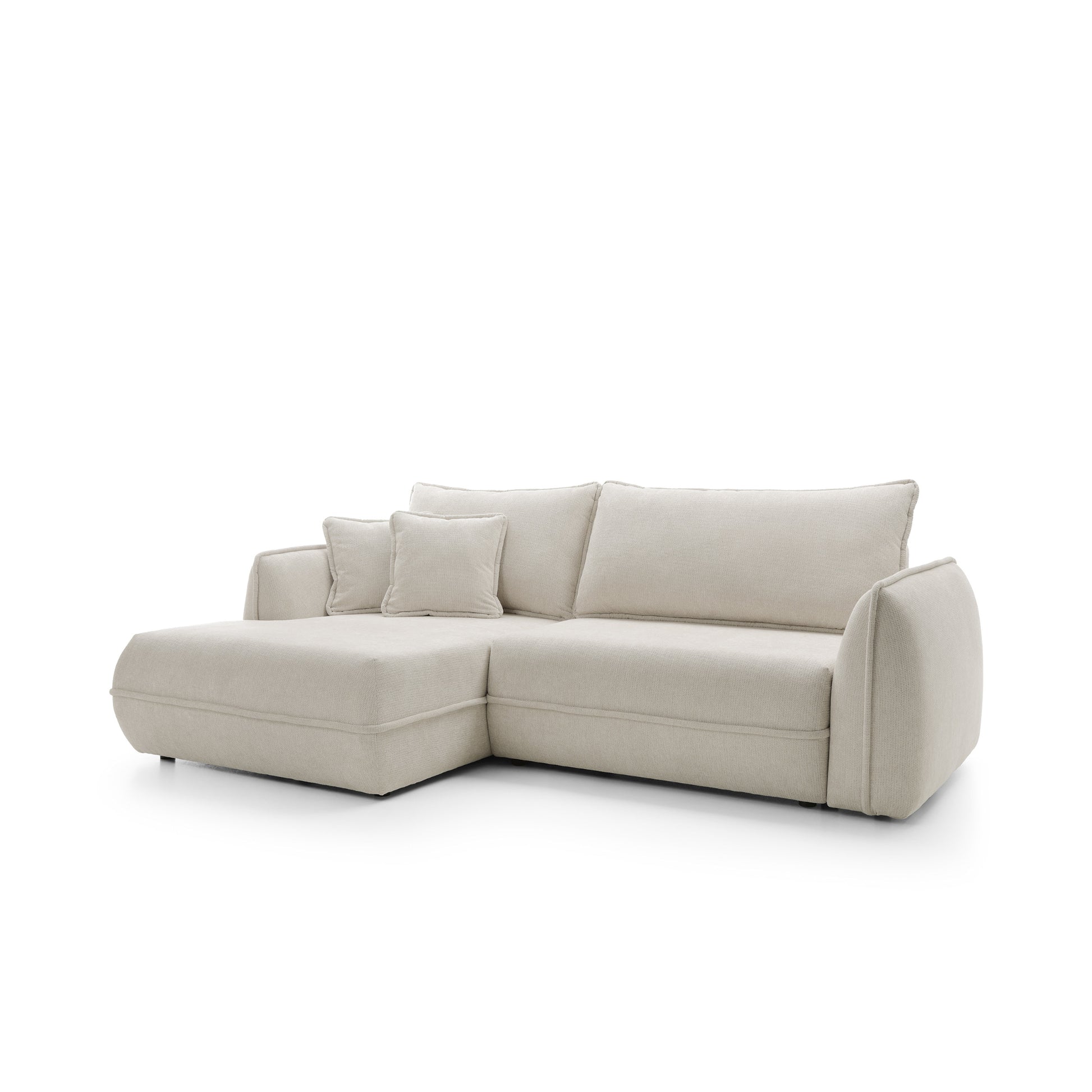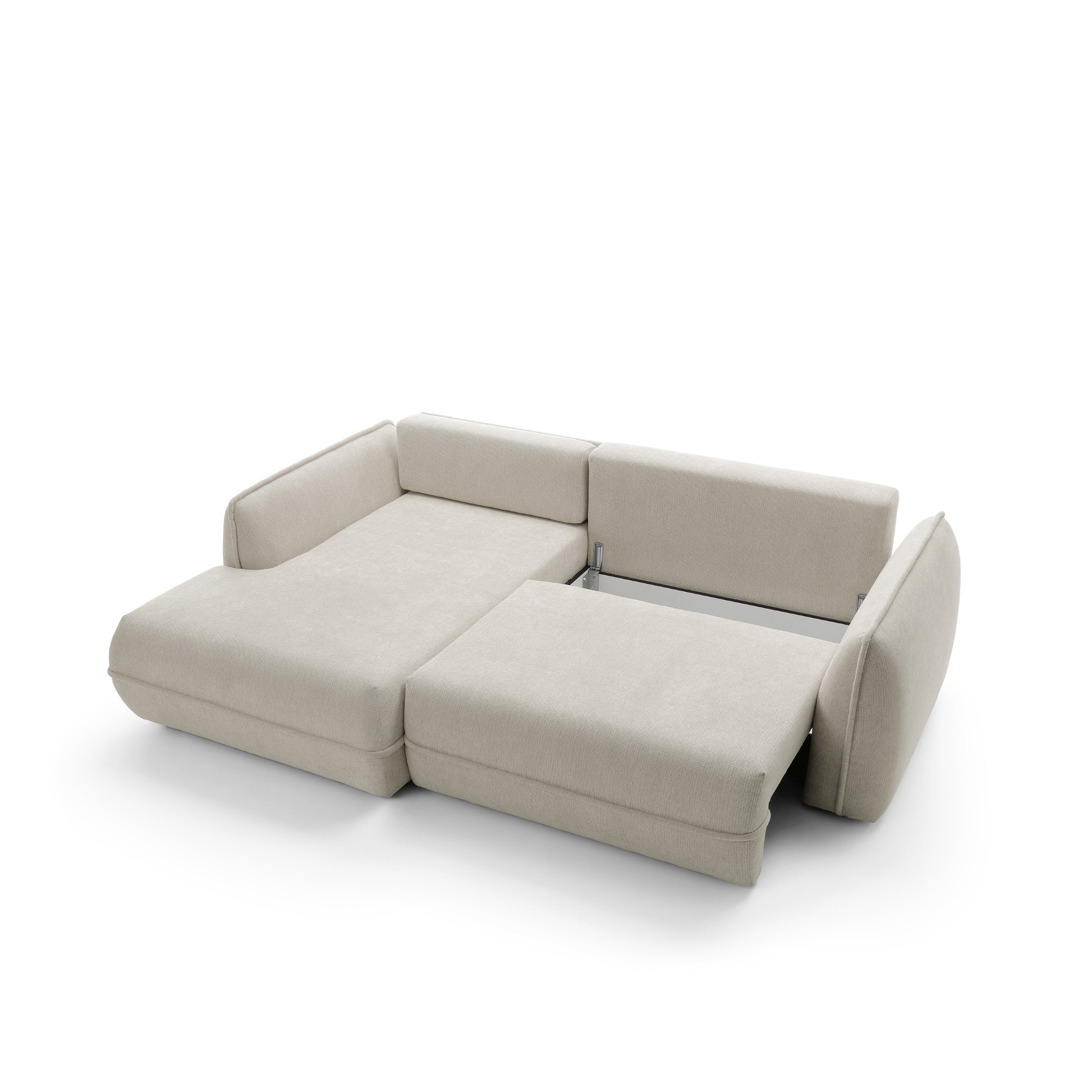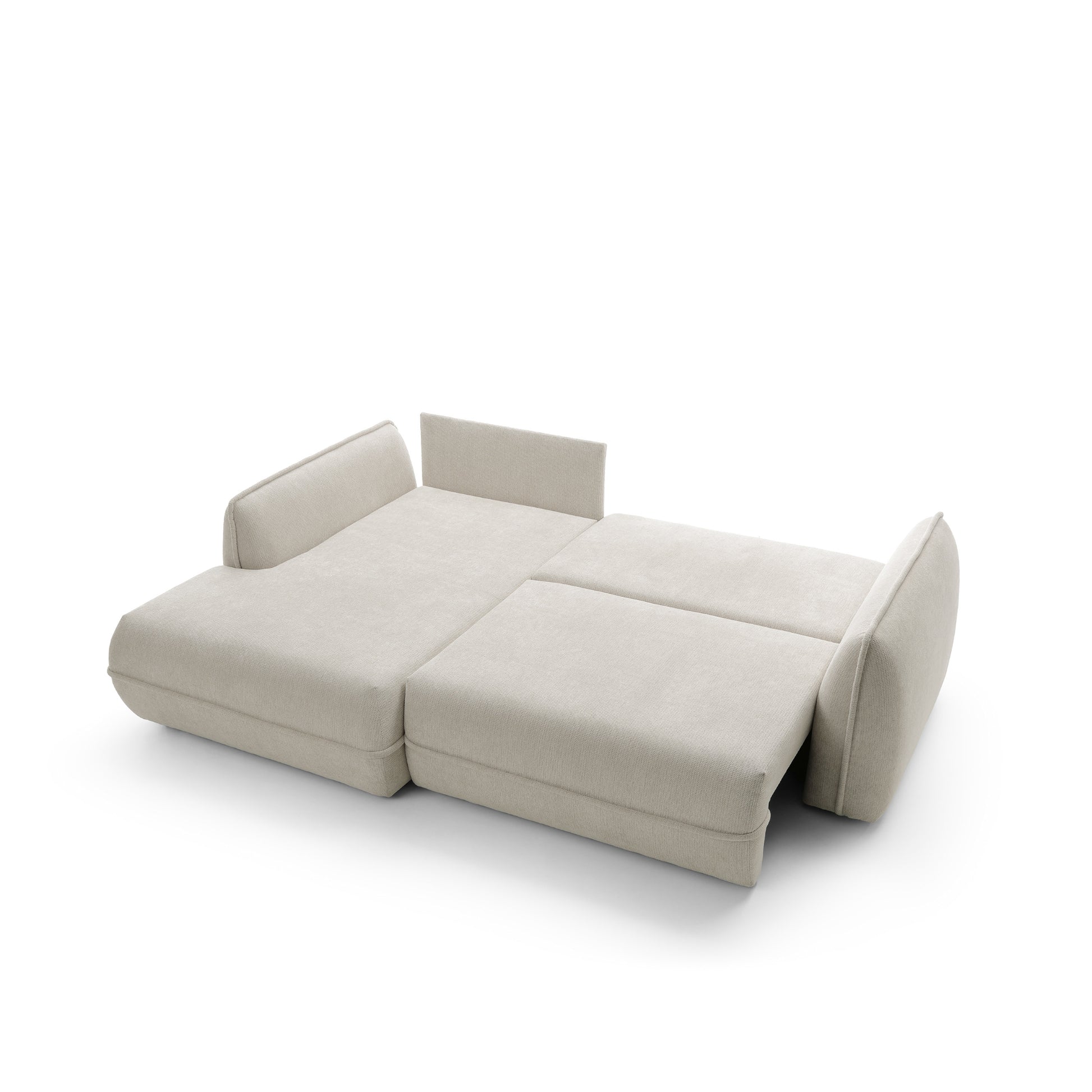Moho to nie tylko estetyka, ale również funkcjonalność. Dzięki funkcji spania narożnik w prosty sposób zamienia się w wygodne miejsce do snu o powierzchni 195 × 145 cm, idealne dla gości lub do okazjonalnego noclegu. Pojemnik na pościel umożliwia praktyczne przechowywanie kołder i poduszek, pomagając utrzymać porządek w salonie.