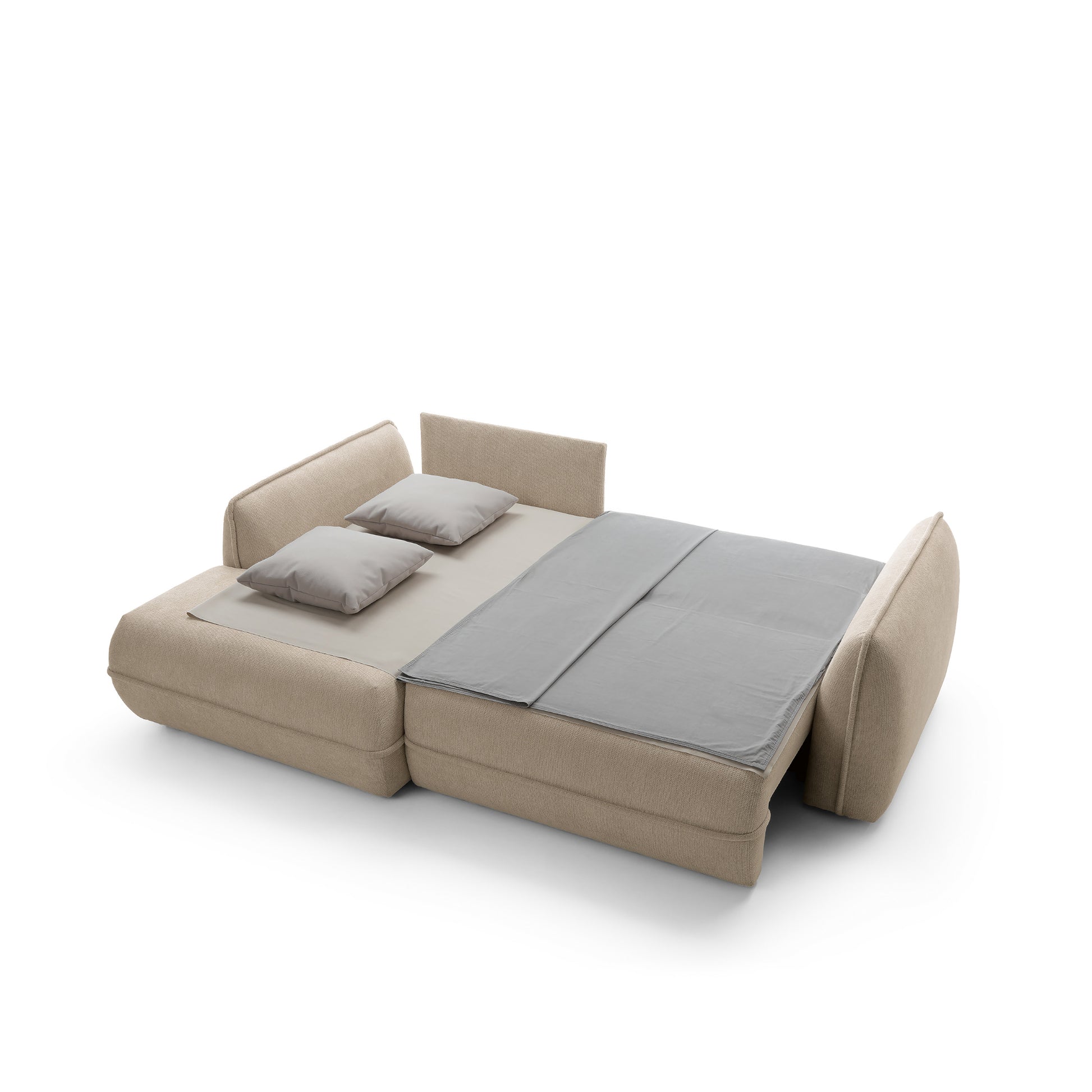 Moho to nie tylko estetyka, ale również funkcjonalność. Dzięki funkcji spania narożnik w prosty sposób zamienia się w wygodne miejsce do snu o powierzchni 195 × 145 cm, idealne dla gości lub do okazjonalnego noclegu. Pojemnik na pościel umożliwia praktyczne przechowywanie kołder i poduszek, pomagając utrzymać porządek w salonie.