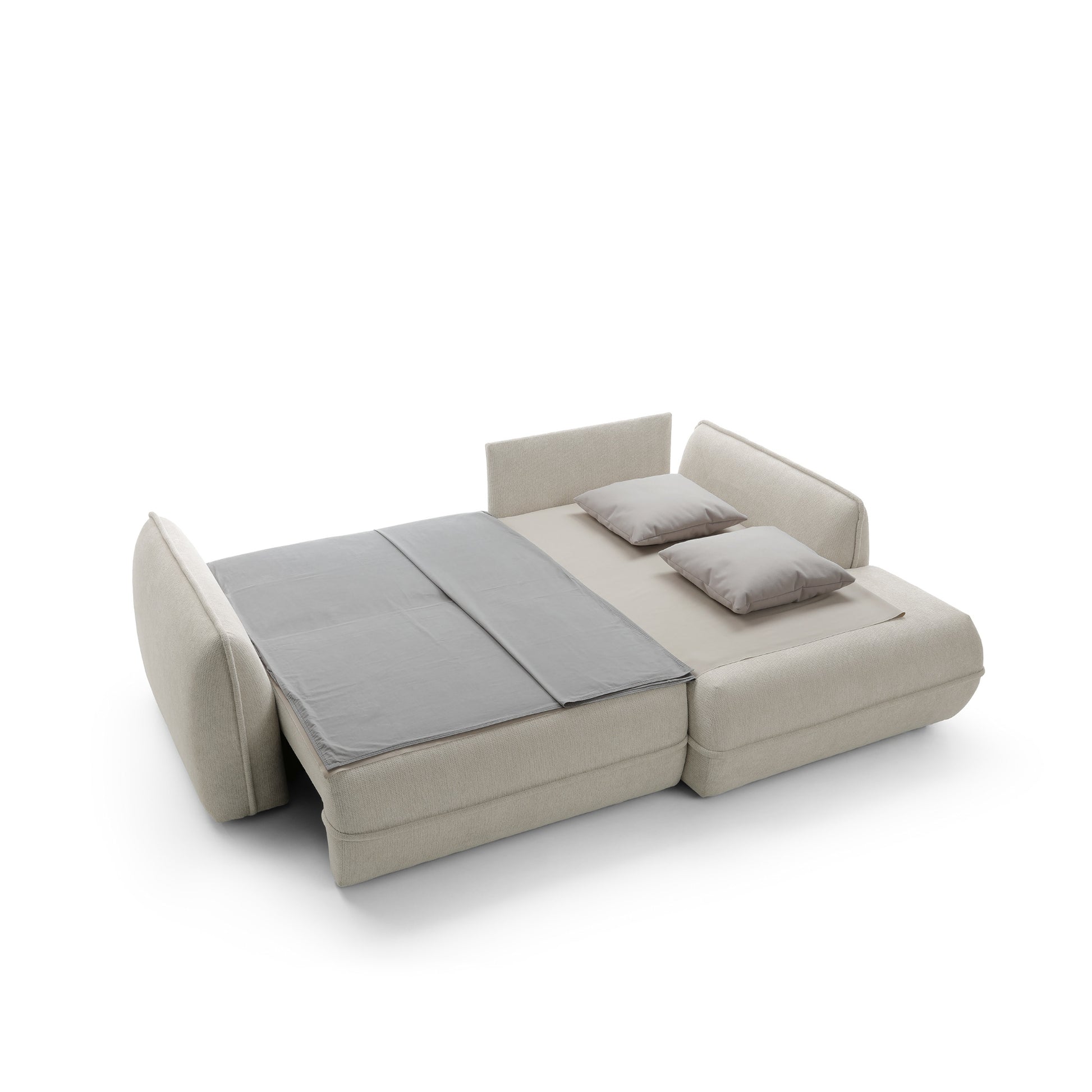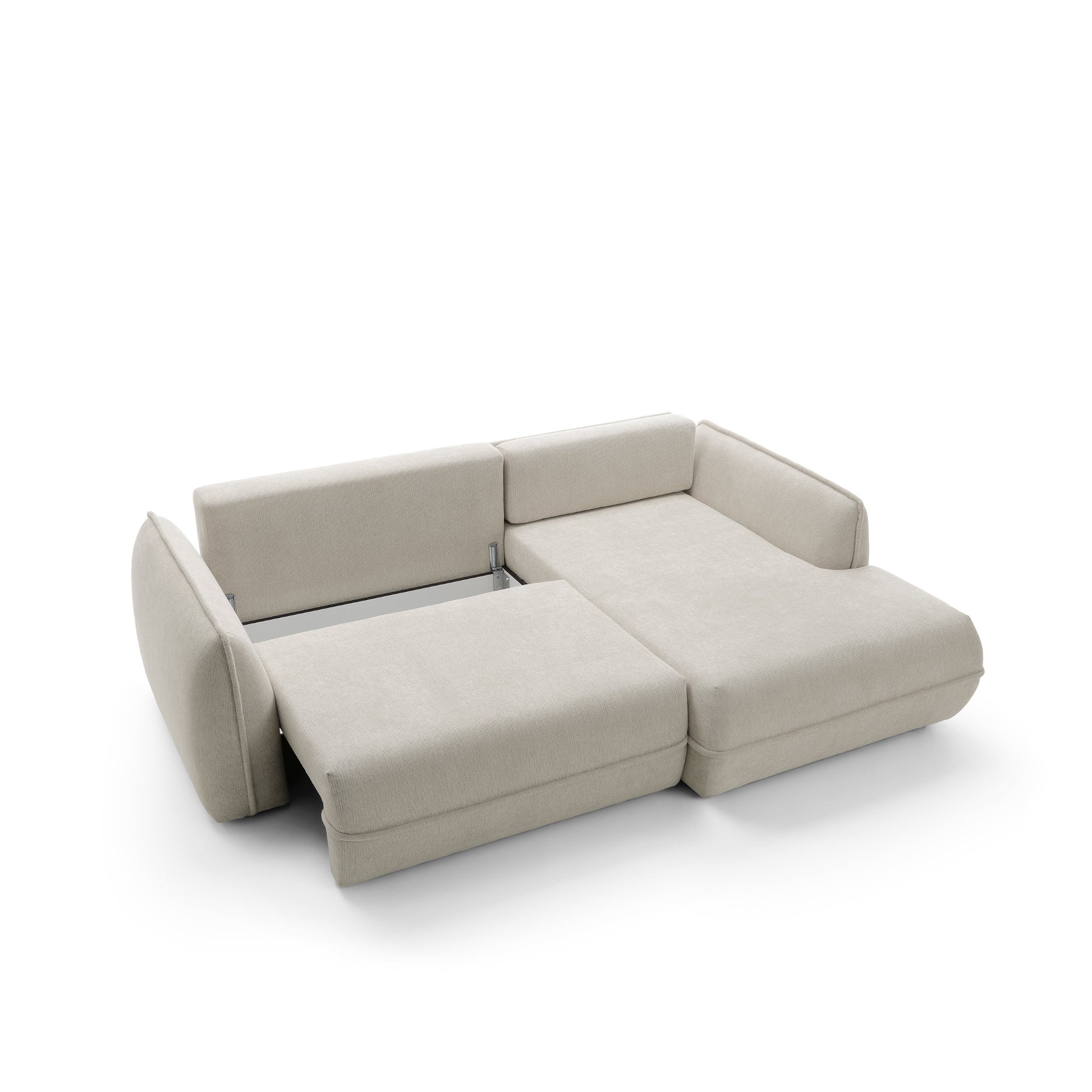 Moho to nie tylko estetyka, ale również funkcjonalność. Dzięki funkcji spania narożnik w prosty sposób zamienia się w wygodne miejsce do snu o powierzchni 195 × 145 cm, idealne dla gości lub do okazjonalnego noclegu. Pojemnik na pościel umożliwia praktyczne przechowywanie kołder i poduszek, pomagając utrzymać porządek w salonie.