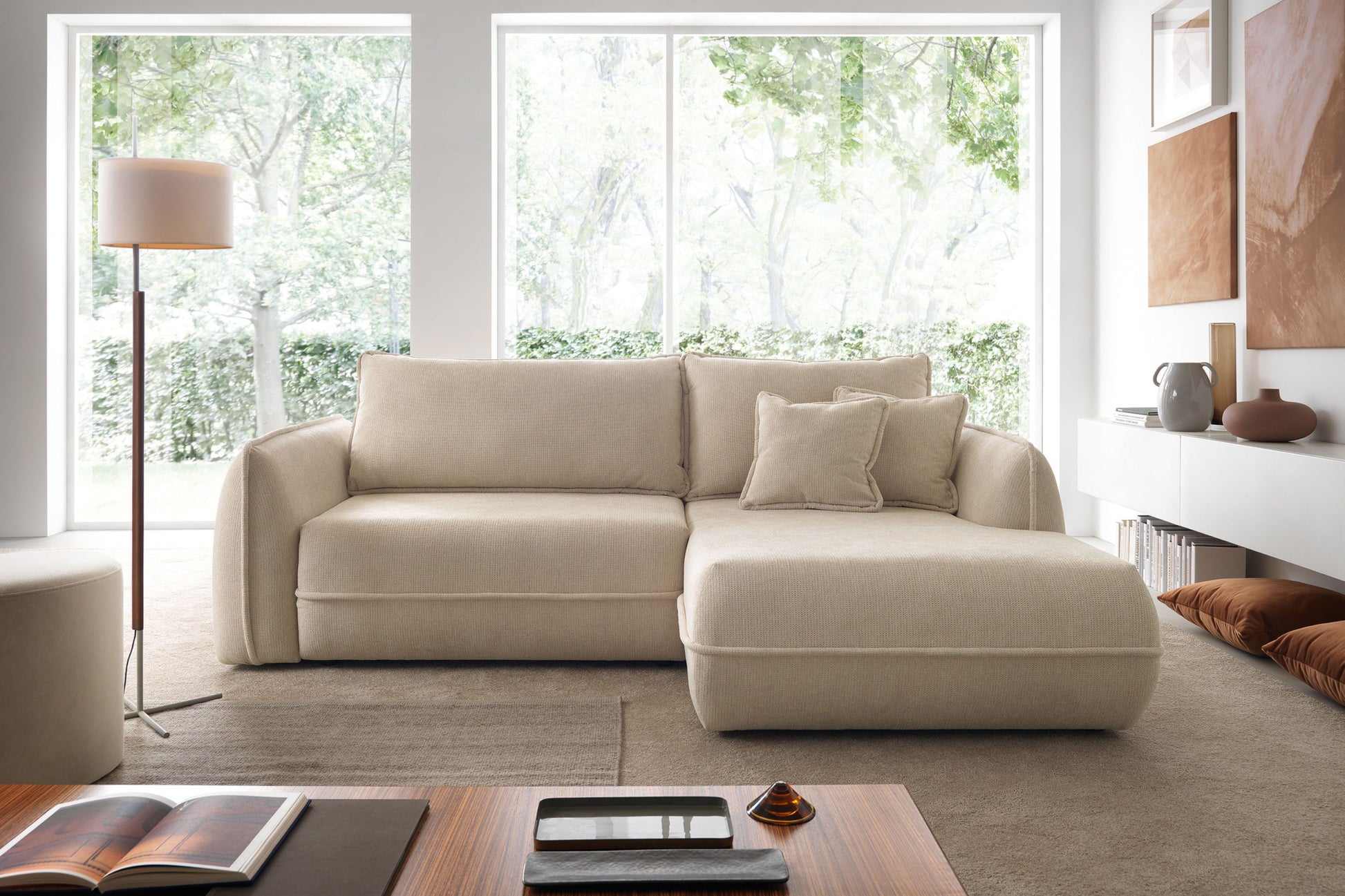 Moho to narożnik dla osób, które szukają miękkiej formy, wysokiego komfortu i funkcjonalnych rozwiązań zamkniętych w nowoczesnej, spokojnej bryle.