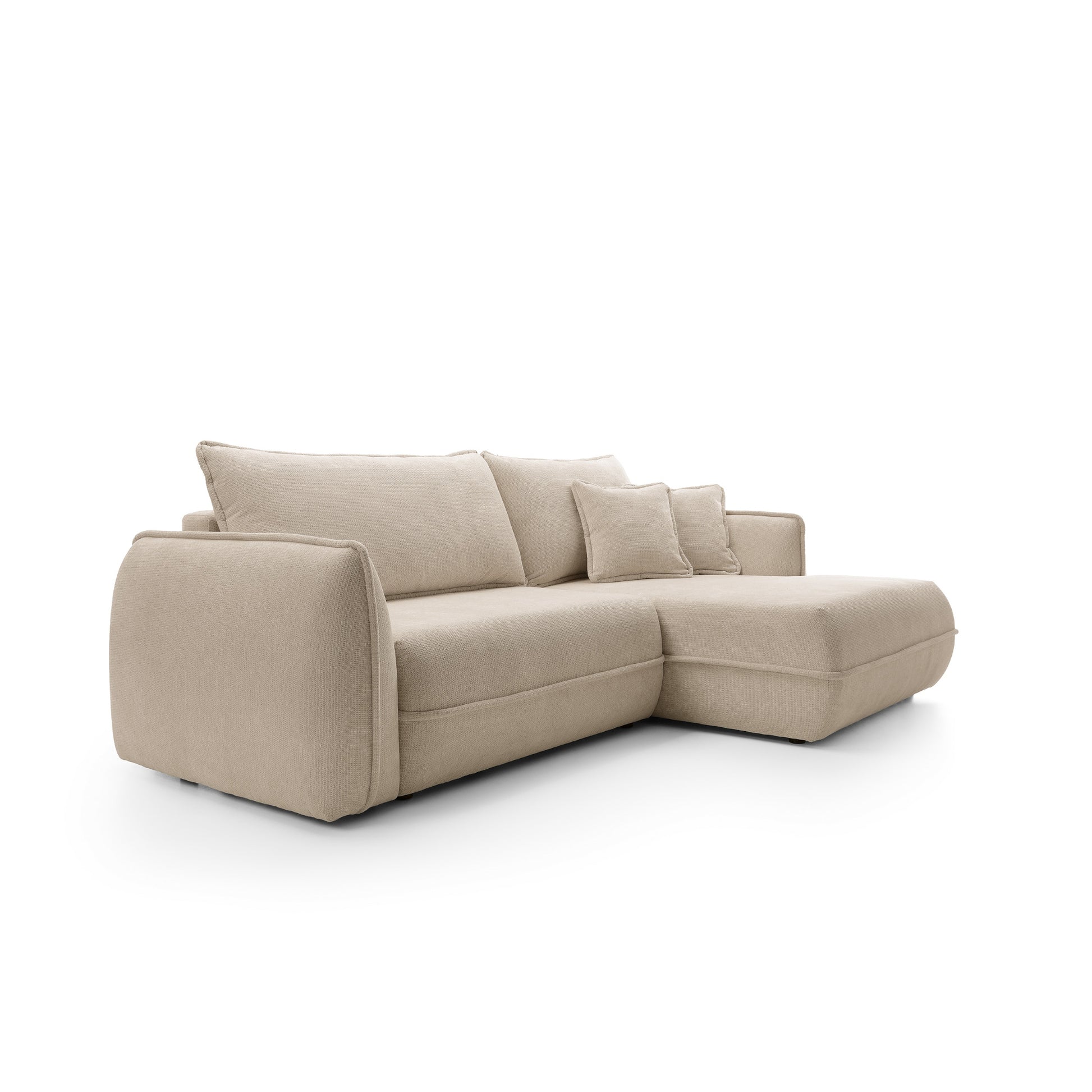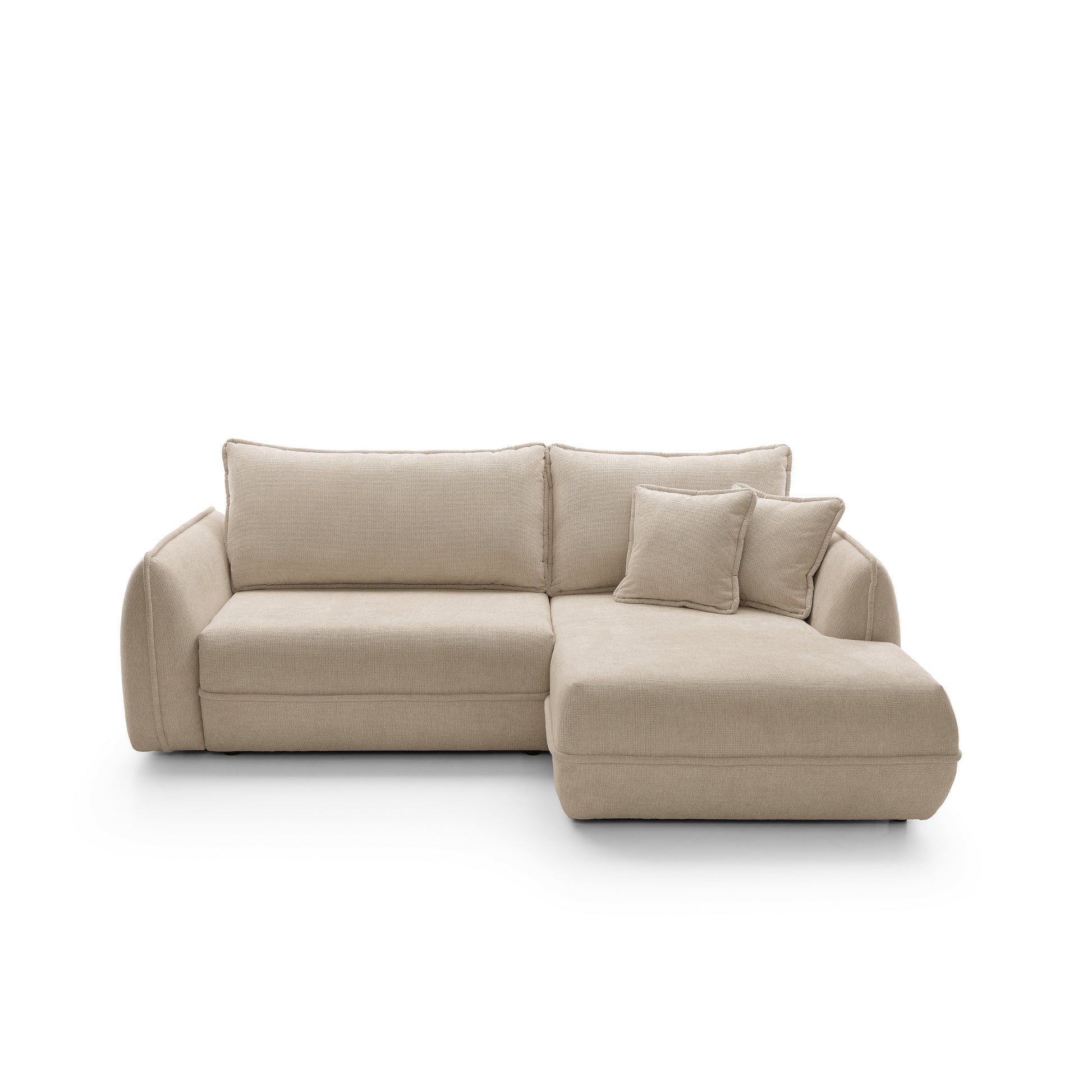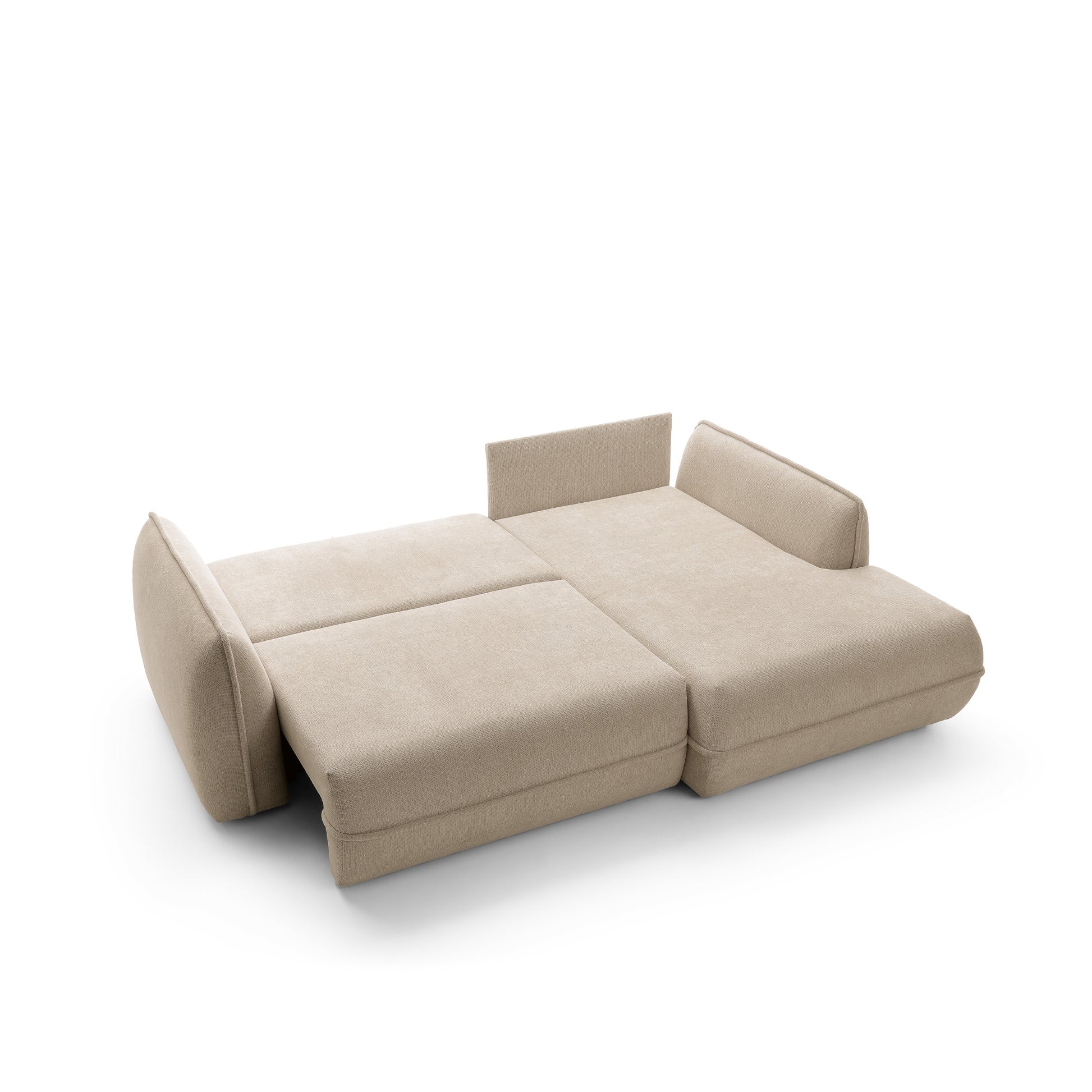 Moho to nie tylko estetyka, ale również funkcjonalność. Dzięki funkcji spania narożnik w prosty sposób zamienia się w wygodne miejsce do snu o powierzchni 195 × 145 cm, idealne dla gości lub do okazjonalnego noclegu. Pojemnik na pościel umożliwia praktyczne przechowywanie kołder i poduszek, pomagając utrzymać porządek w salonie.