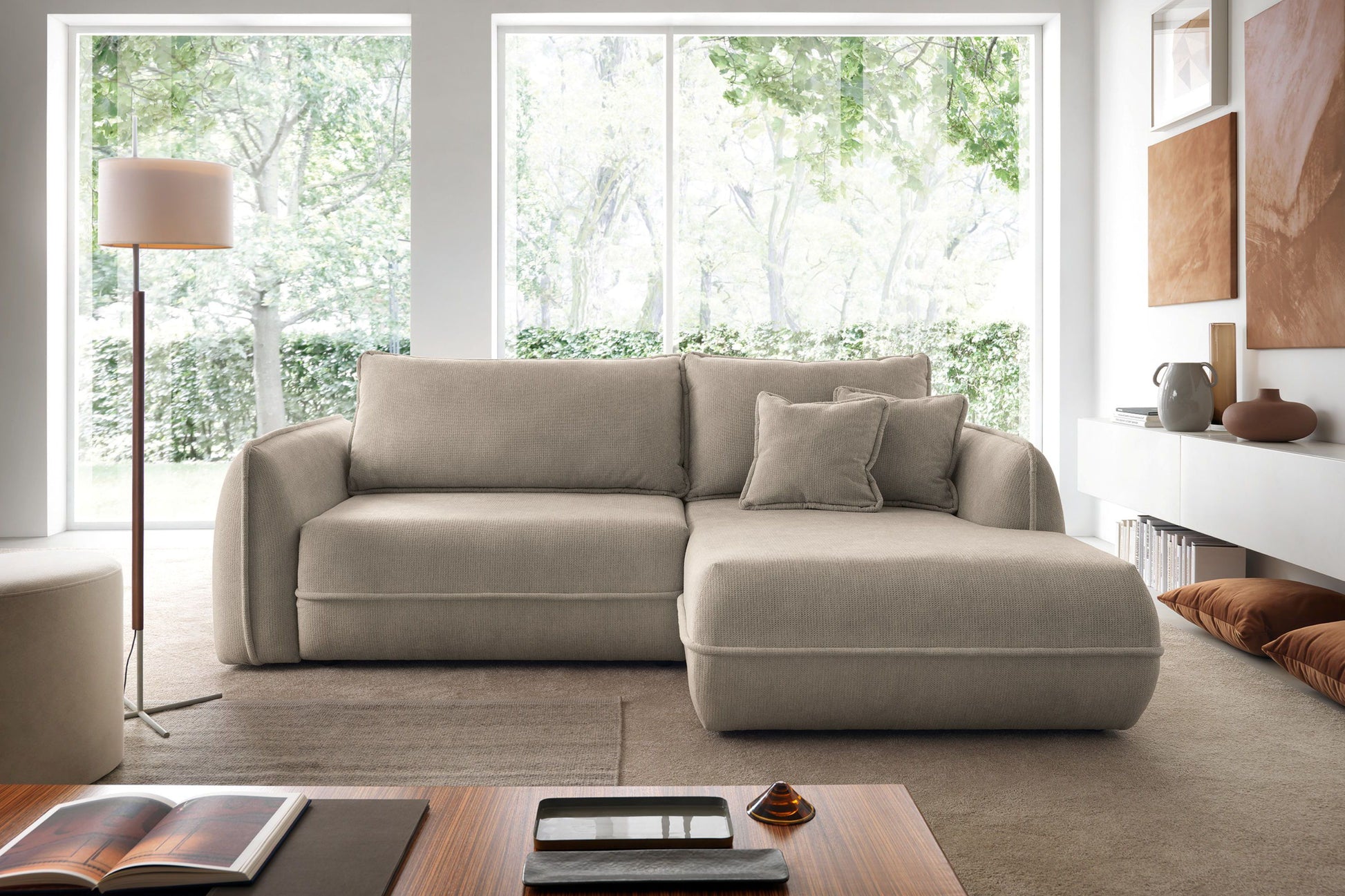 Moho to narożnik dla osób, które szukają miękkiej formy, wysokiego komfortu i funkcjonalnych rozwiązań zamkniętych w nowoczesnej, spokojnej bryle.