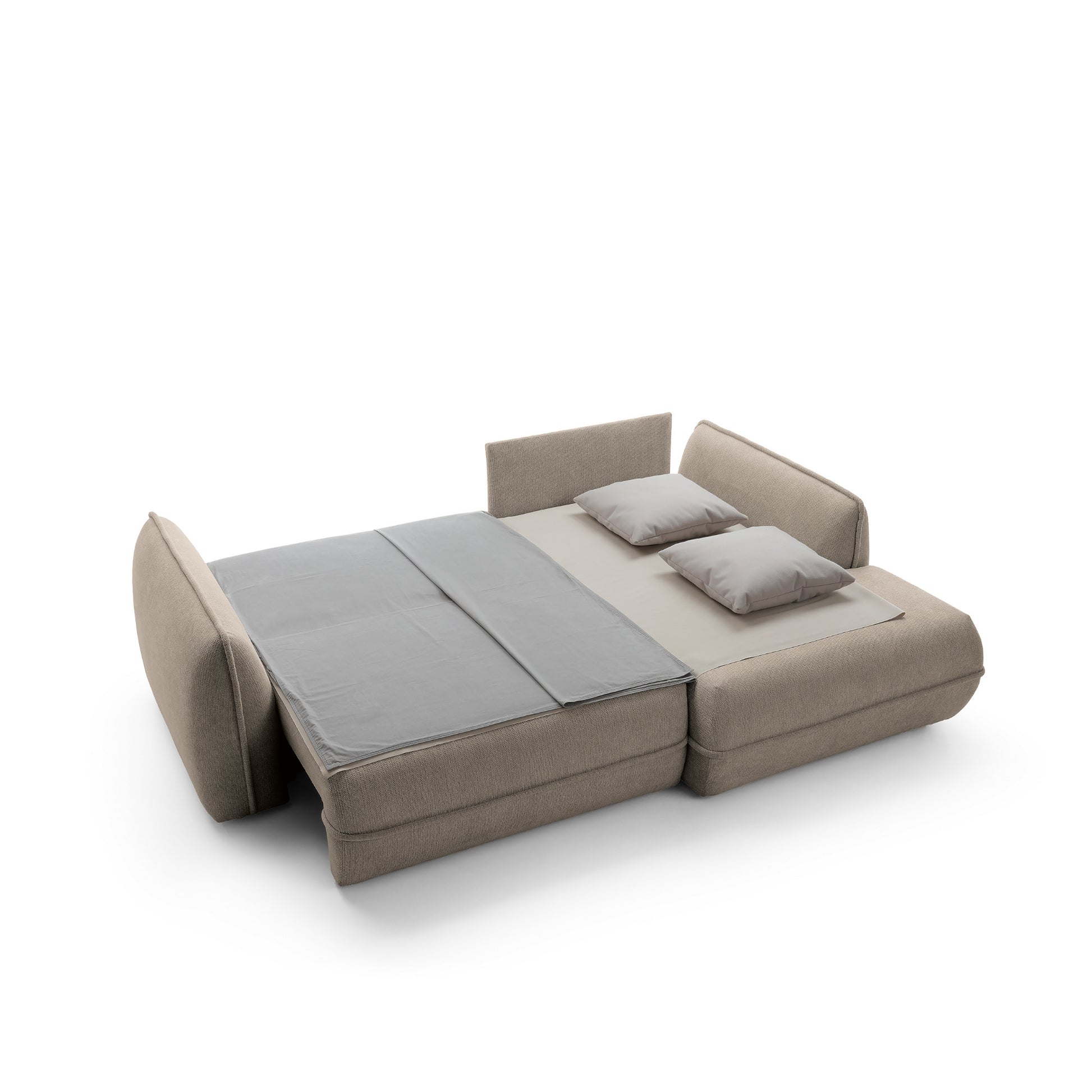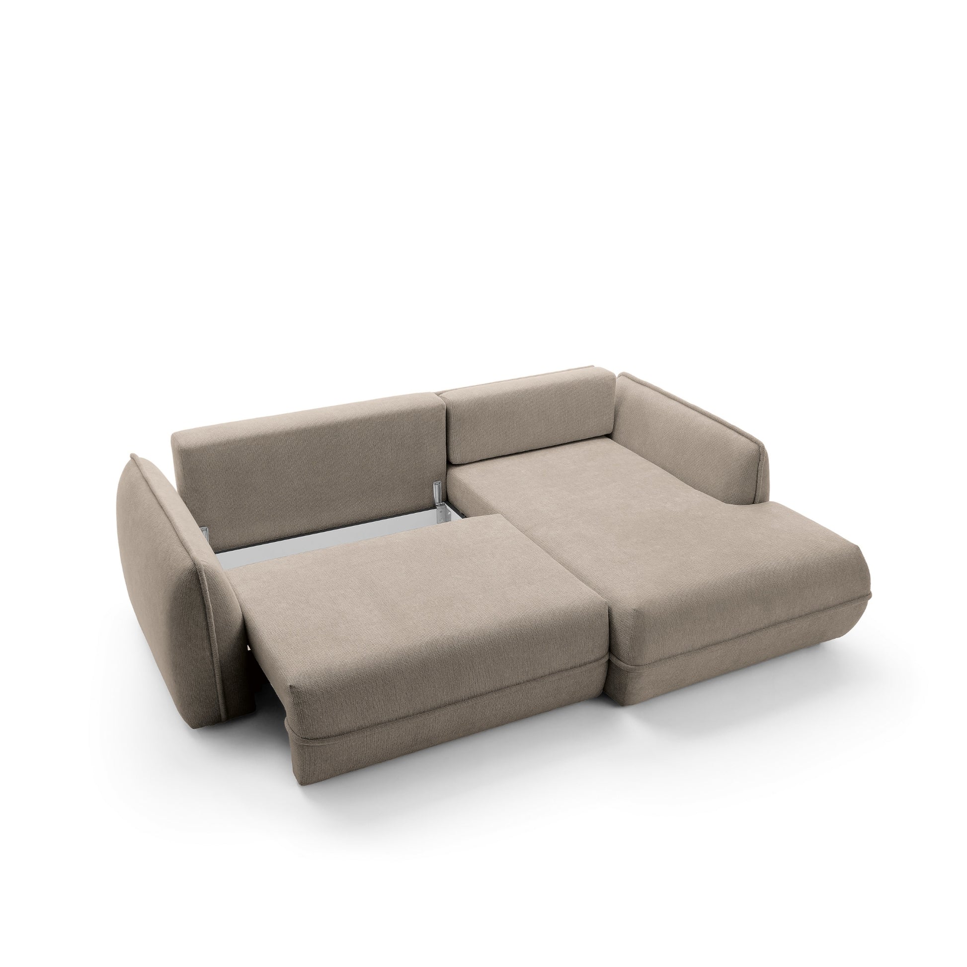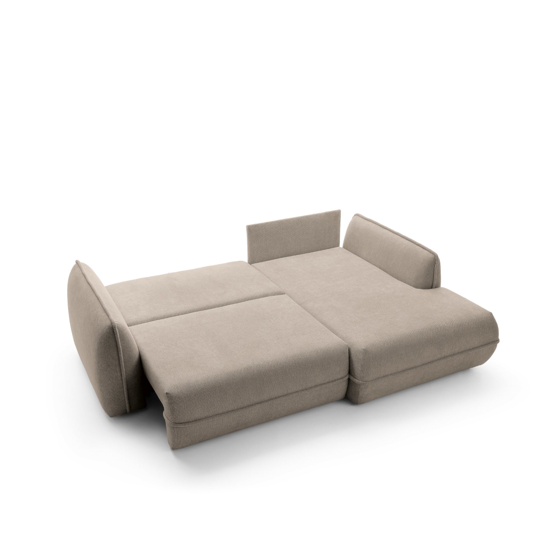 Moho to nie tylko estetyka, ale również funkcjonalność. Dzięki funkcji spania narożnik w prosty sposób zamienia się w wygodne miejsce do snu o powierzchni 195 × 145 cm, idealne dla gości lub do okazjonalnego noclegu. Pojemnik na pościel umożliwia praktyczne przechowywanie kołder i poduszek, pomagając utrzymać porządek w salonie.