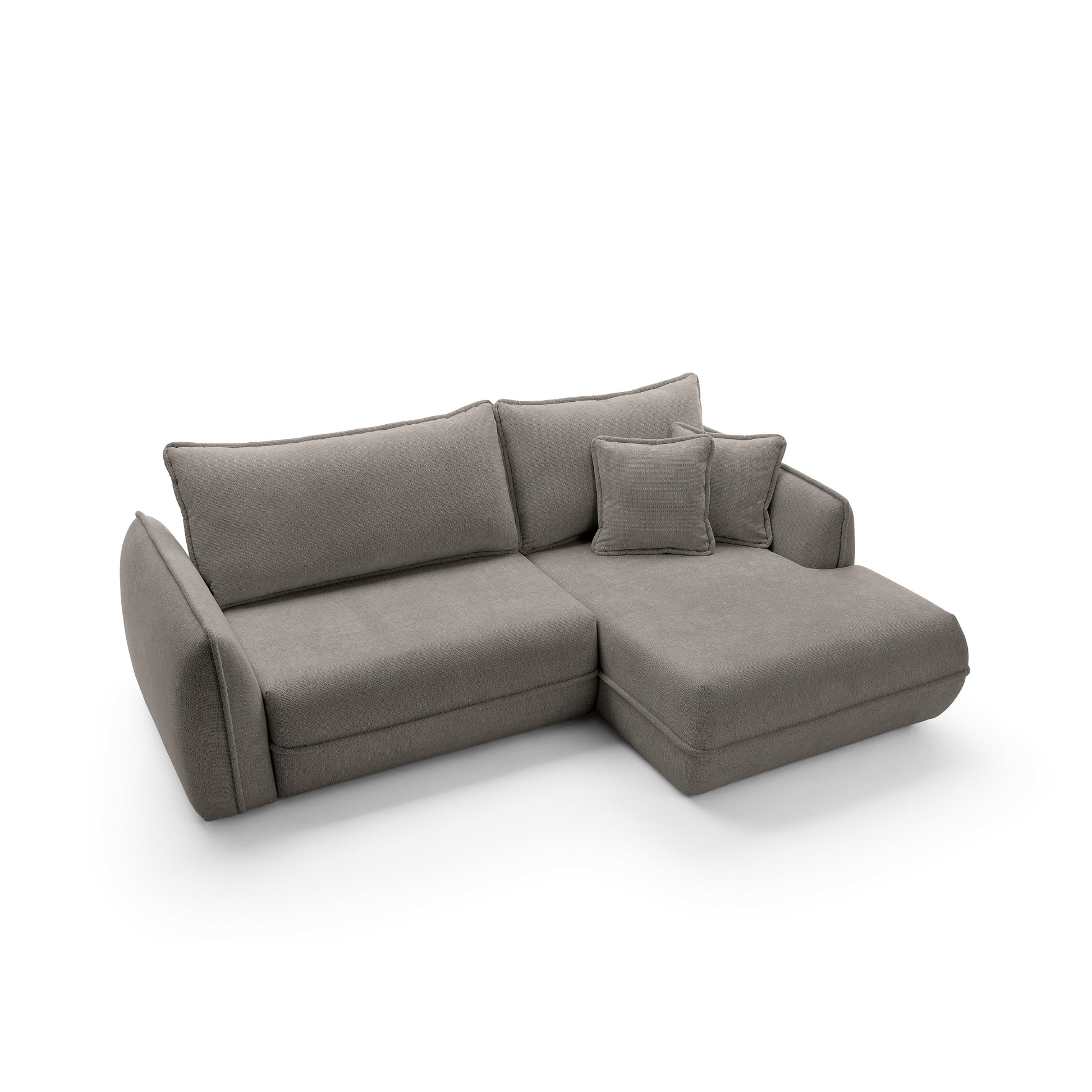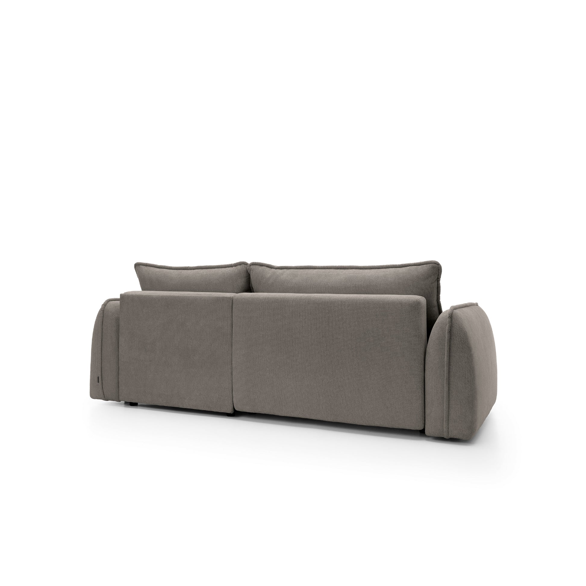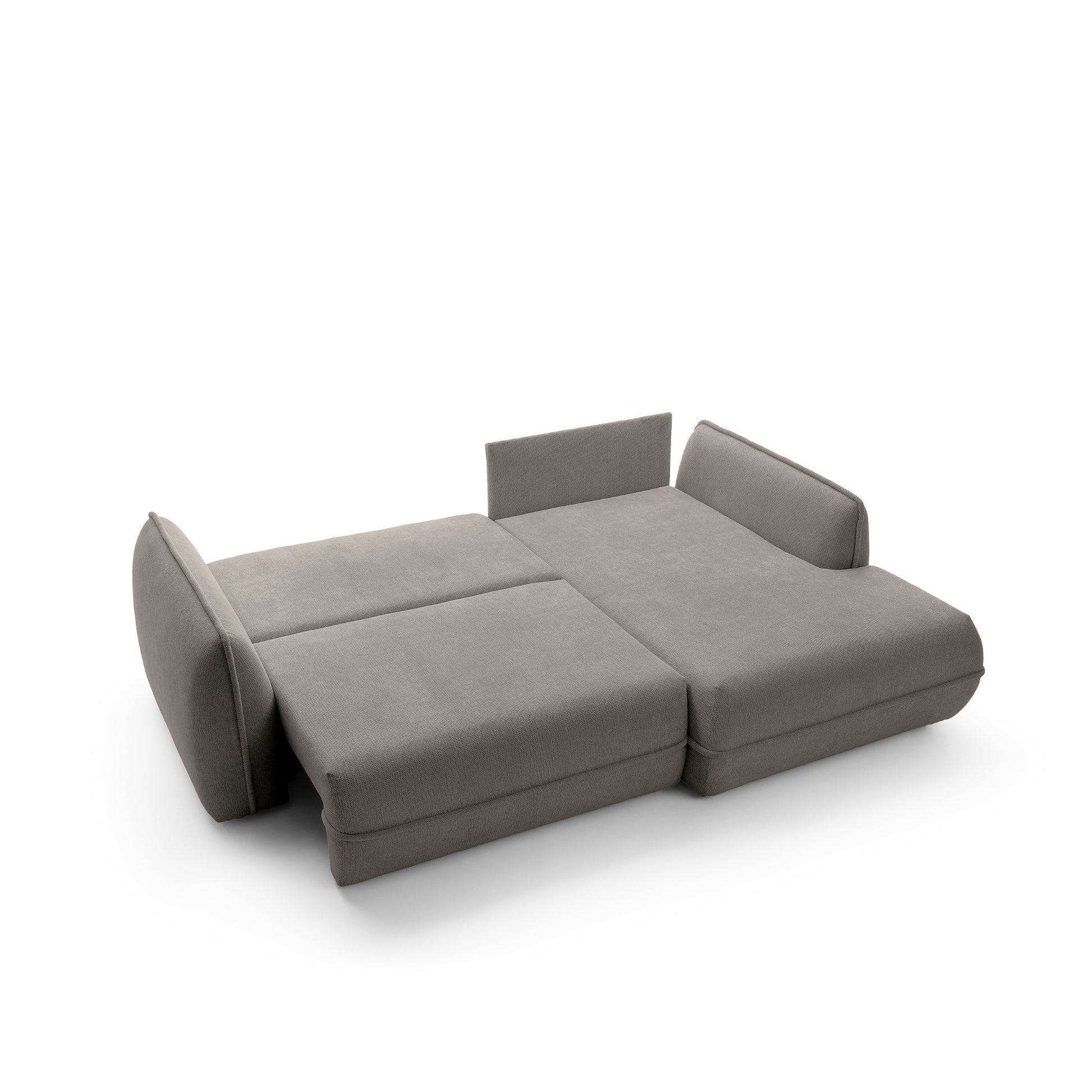 Moho to nie tylko estetyka, ale również funkcjonalność. Dzięki funkcji spania narożnik w prosty sposób zamienia się w wygodne miejsce do snu o powierzchni 195 × 145 cm, idealne dla gości lub do okazjonalnego noclegu. Pojemnik na pościel umożliwia praktyczne przechowywanie kołder i poduszek, pomagając utrzymać porządek w salonie.