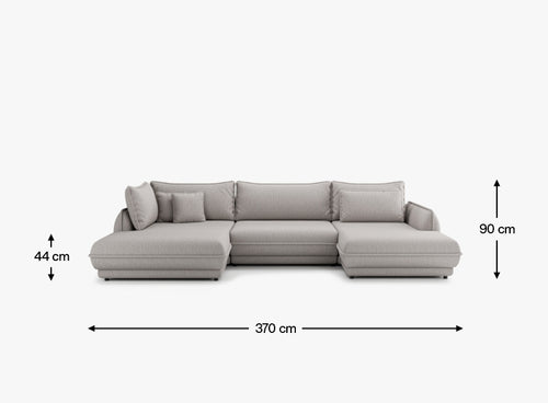 The entire unit rests on sturdy 3 cm high legs , while 68 cm armrests offer additional support. The sofa's total height is 90 cm and its width is a whopping 370 cm , making the Mojave III impressively spacious and a great addition to larger interiors.