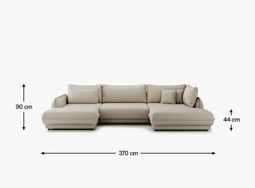 The entire unit rests on sturdy 3 cm high legs , while 68 cm armrests offer additional support. The sofa's total height is 90 cm and its width is a whopping 370 cm , making the Mojave III impressively spacious and a great addition to larger interiors.