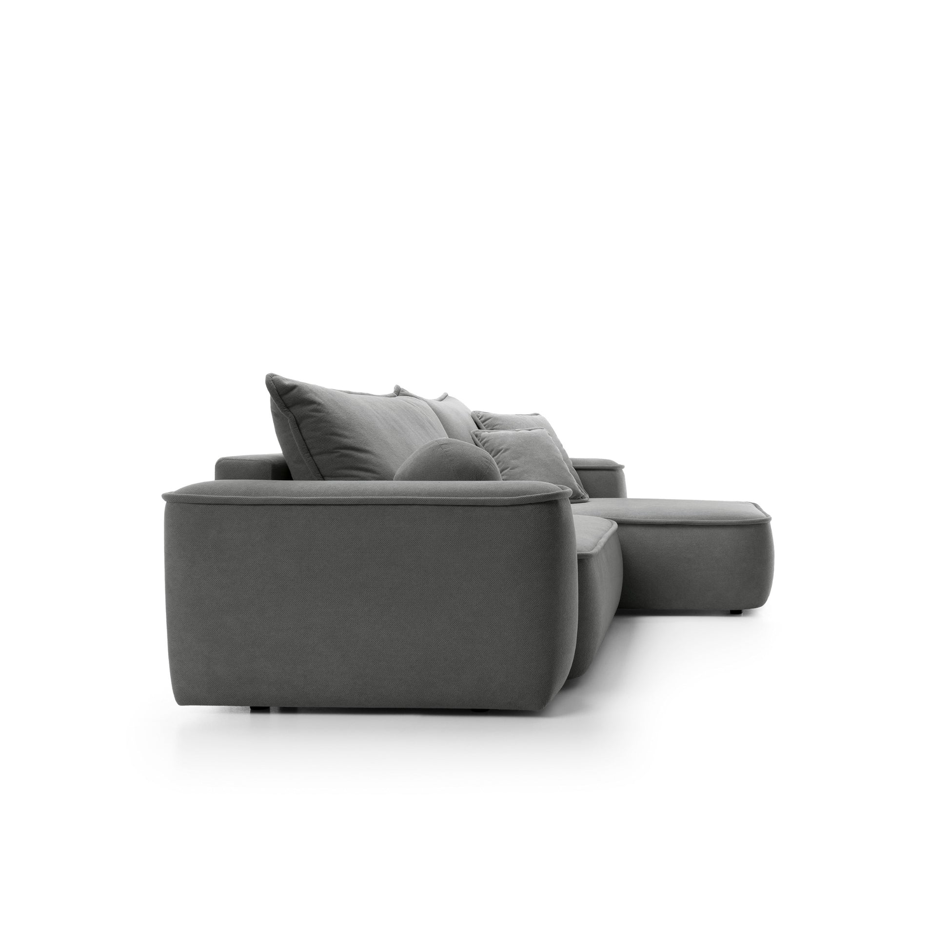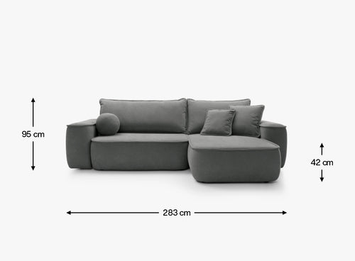 Narożnik Sandby posiada uniwersalną konstrukcję, co oznacza możliwość zmiany strony – z prawej na lewą – w zależności od układu pomieszczenia. Dzięki temu z łatwością dopasujesz go do swojego salonu, niezależnie od metrażu i aranżacji.