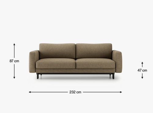 Its hidden sleeping function allows for an instant transformation – from an elegant sofa to a comfortable bed. The spacious bedding storage is a clever solution for contemporary interiors, where every item should have its place. High legs add a touch of lightness to the form and make the piece appear to float above the floor, while also making it easier to keep things tidy.