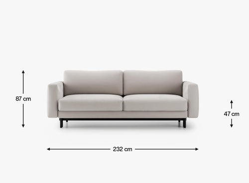 Its hidden sleeping function allows for an instant transformation – from an elegant sofa to a comfortable bed. The spacious bedding storage is a clever solution for contemporary interiors, where every item should have its place. High legs add a touch of lightness to the form and make the piece appear to float above the floor, while also making it easier to keep things tidy.