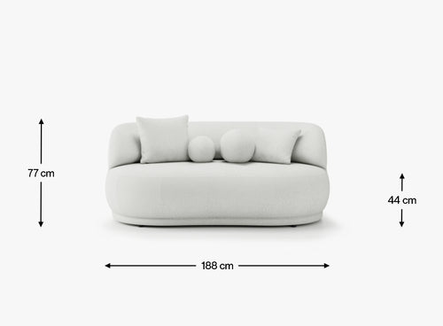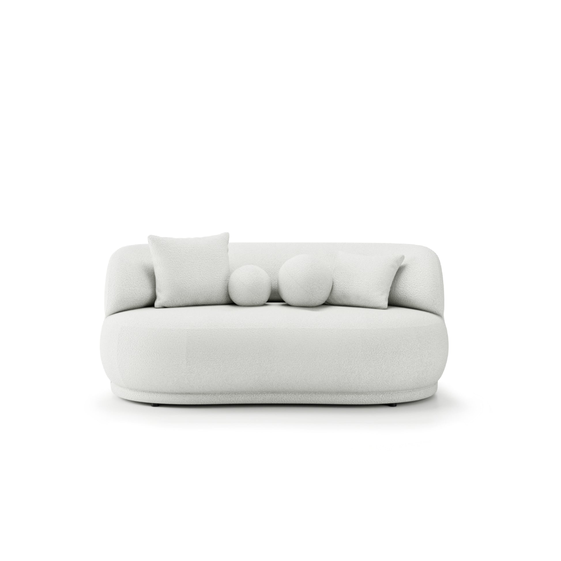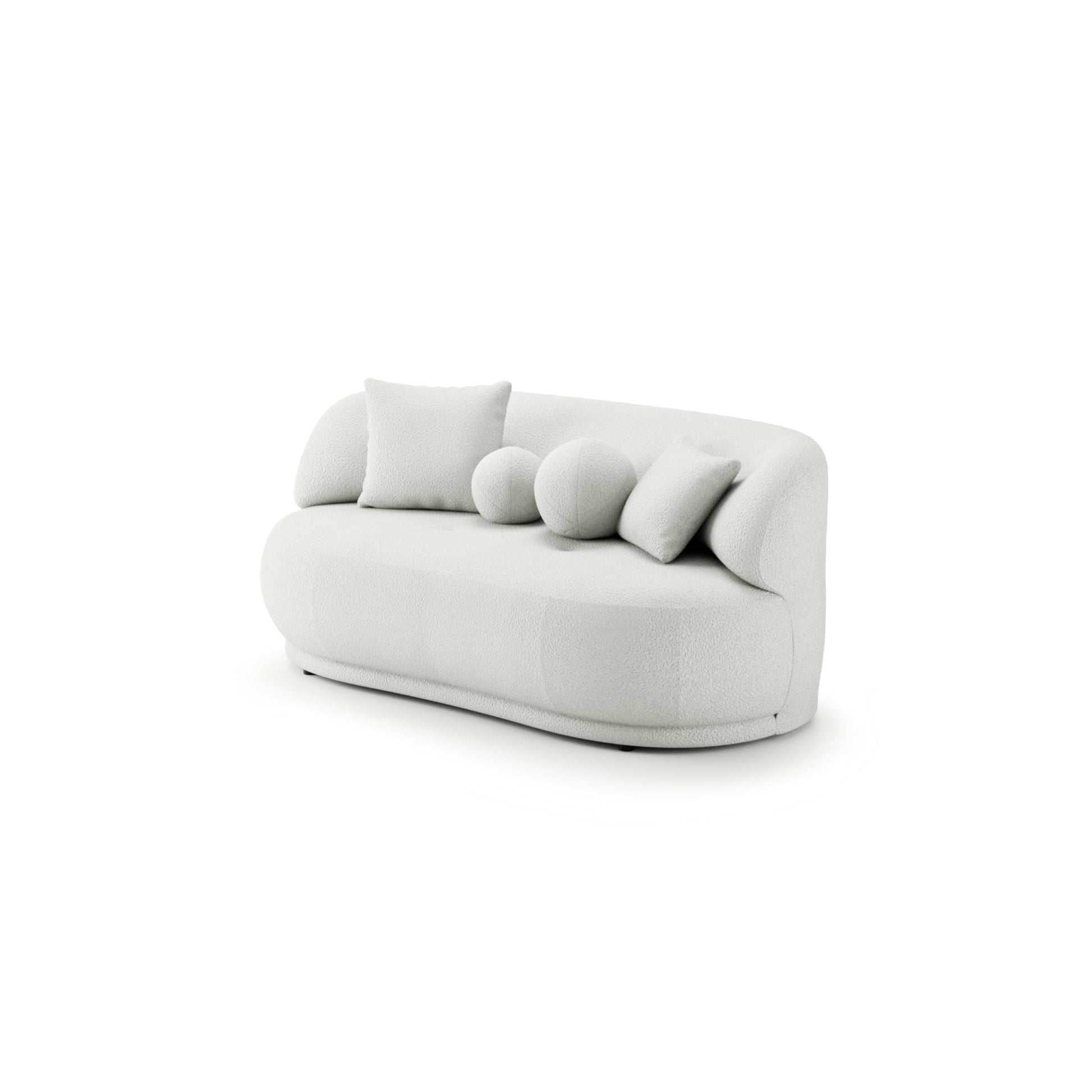 Obicie wykonano z tkaniny Abriamo – wyjątkowo miękkiej i przyjemnej w dotyku struktury typu bouclé. Materiał wyróżnia się trwałością i odpornością na codzienne użytkowanie – 45 000 cykli Martindale’a – oraz właściwościami trudnopalnymi i wysoką odpornością na światło. Dzięki temu sofa Gio Mini zachowa swój estetyczny wygląd przez lata.