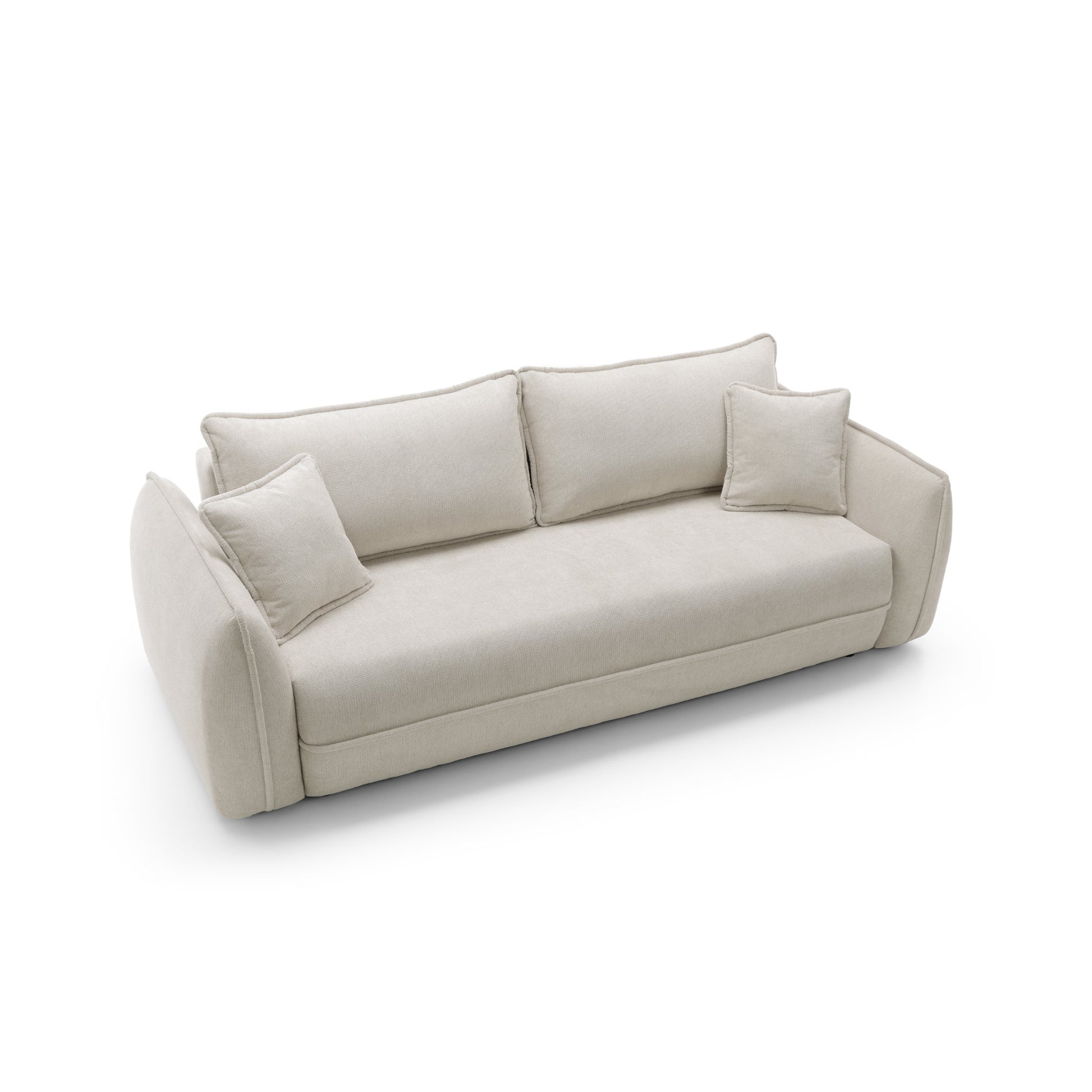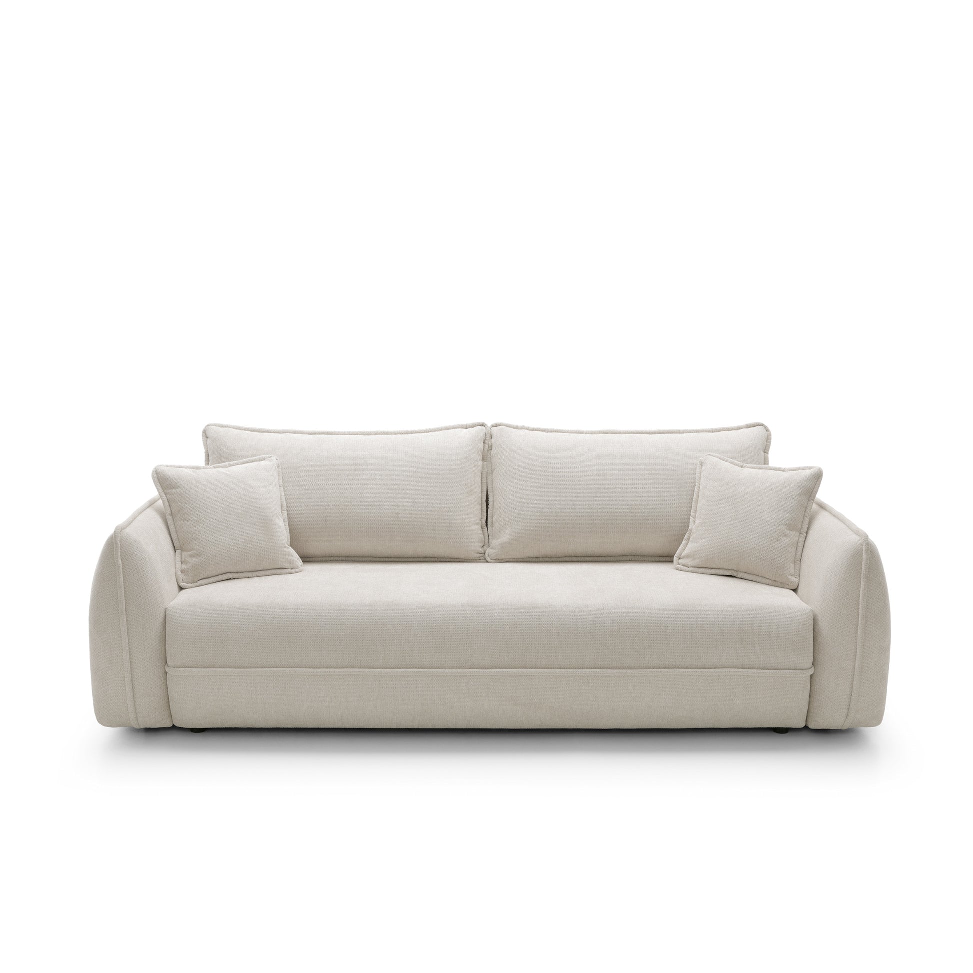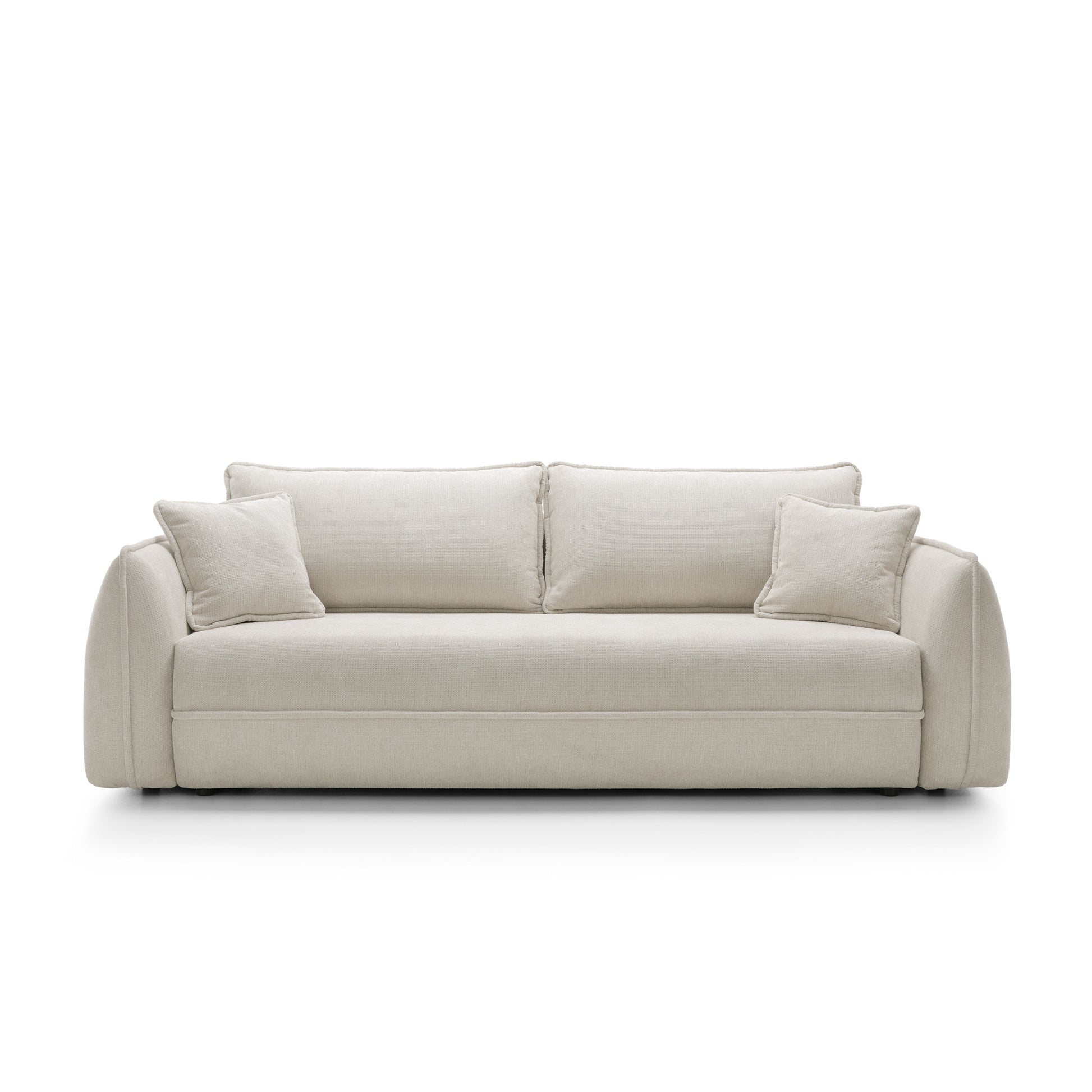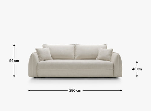Wysokość siedziska 43 cm oraz odpowiednia głębokość sprawiają, że sofa oferuje naturalną, wygodną pozycję siedzenia. Podłokietniki o wysokości 66 cm stanowią wygodne podparcie, a jednocześnie podkreślają miękki, nowoczesny charakter mebla.