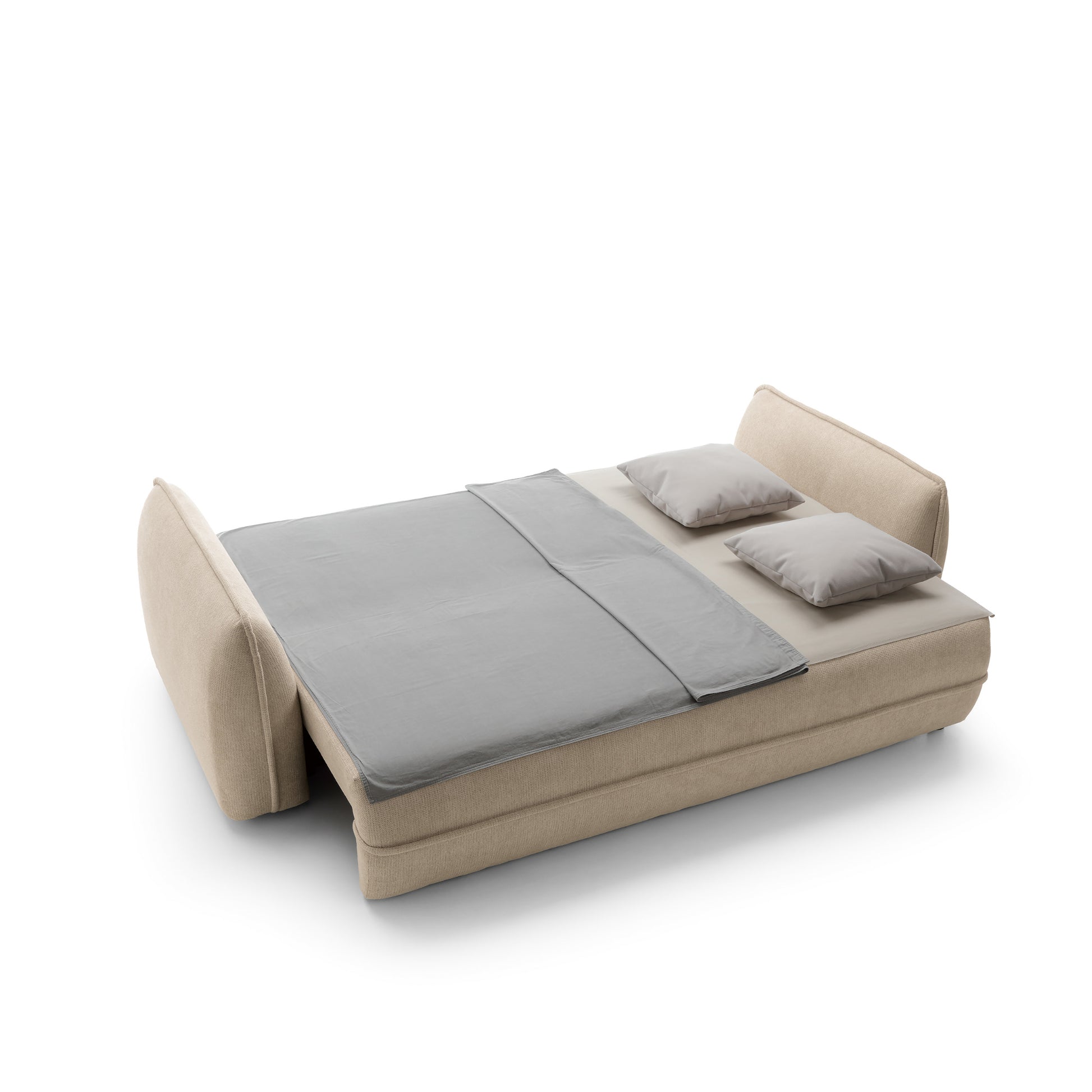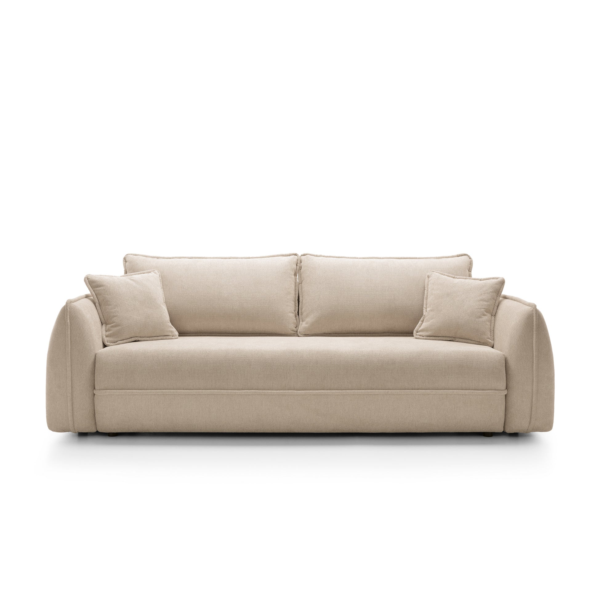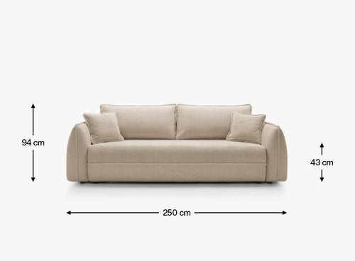 Wysokość siedziska 43 cm oraz odpowiednia głębokość sprawiają, że sofa oferuje naturalną, wygodną pozycję siedzenia. Podłokietniki o wysokości 66 cm stanowią wygodne podparcie, a jednocześnie podkreślają miękki, nowoczesny charakter mebla.