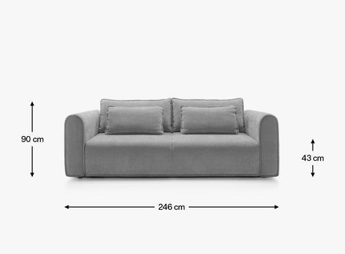 At 246 cm wide , 90 cm high , and 110 cm deep , Munro is the perfect centerpiece for a relaxation area. The wide seat ( 198 cm ) and ergonomic backrest height (73 cm) provide comfort you'll appreciate during both daily relaxation and longer get-togethers with loved ones.