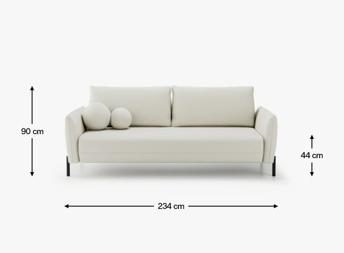 Sofa Vasco to nie tylko piękna forma, ale również przemyślana funkcjonalność. Dzięki zastosowanemu mechanizmowi rozkładania DL, w kilka chwil można ją przekształcić w wygodne łóżko o powierzchni 200 × 140 cm. Dodatkowo, pojemny schowek na pościel pozwala zachować porządek i praktyczność w codziennym użytkowaniu.