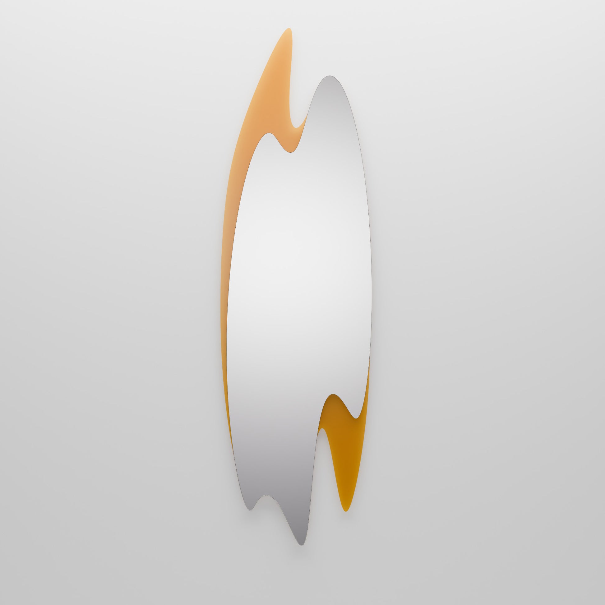 Lustro w kształcie fali. Lustro w kształcie pioruna. To, co w nim zobaczysz, to Twoje :> Nieoczywisty design, opływowy kształt. Akcent kolorystyczny. Takie jest lustro Flavia. Może być powieszone na cztery sposoby – w pionie lub w poziomie. Możesz je powiesić w domu albo na zewnątrz, przed domem. Tak jest zaprojektowane – żeby było maksymalnie wytrzymałe.