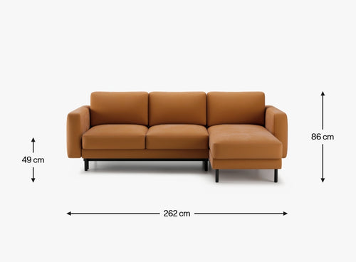 Wymiary narożnika – 262 cm szerokości, 86 cm wysokości i 156 cm głębokości – czynią z Alamedy wygodne, a przy tym estetyczne centrum domowej strefy relaksu.