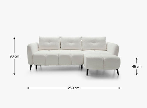Narożnik Apollo to nie tylko piękno i wygoda, ale także praktyczne rozwiązania, które odpowiadają na potrzeby codziennego użytkowania. Wbudowana funkcja spania pozwala w szybki i łatwy sposób przekształcić go w komfortowe łóżko, zapewniając wygodne miejsce do nocnego odpoczynku dla Ciebie lub Twoich gości. Dodatkowo, pojemny schowek na pościel sprawia, że z łatwością utrzymasz porządek w salonie.