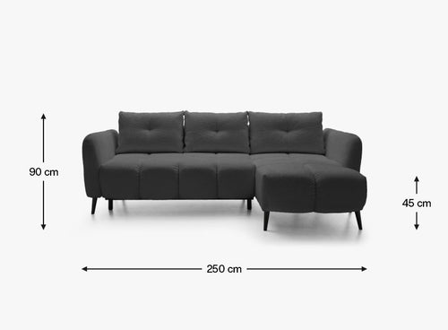 Narożnik Apollo to nie tylko piękno i wygoda, ale także praktyczne rozwiązania, które odpowiadają na potrzeby codziennego użytkowania. Wbudowana funkcja spania pozwala w szybki i łatwy sposób przekształcić go w komfortowe łóżko, zapewniając wygodne miejsce do nocnego odpoczynku dla Ciebie lub Twoich gości. Dodatkowo, pojemny schowek na pościel sprawia, że z łatwością utrzymasz porządek w salonie.