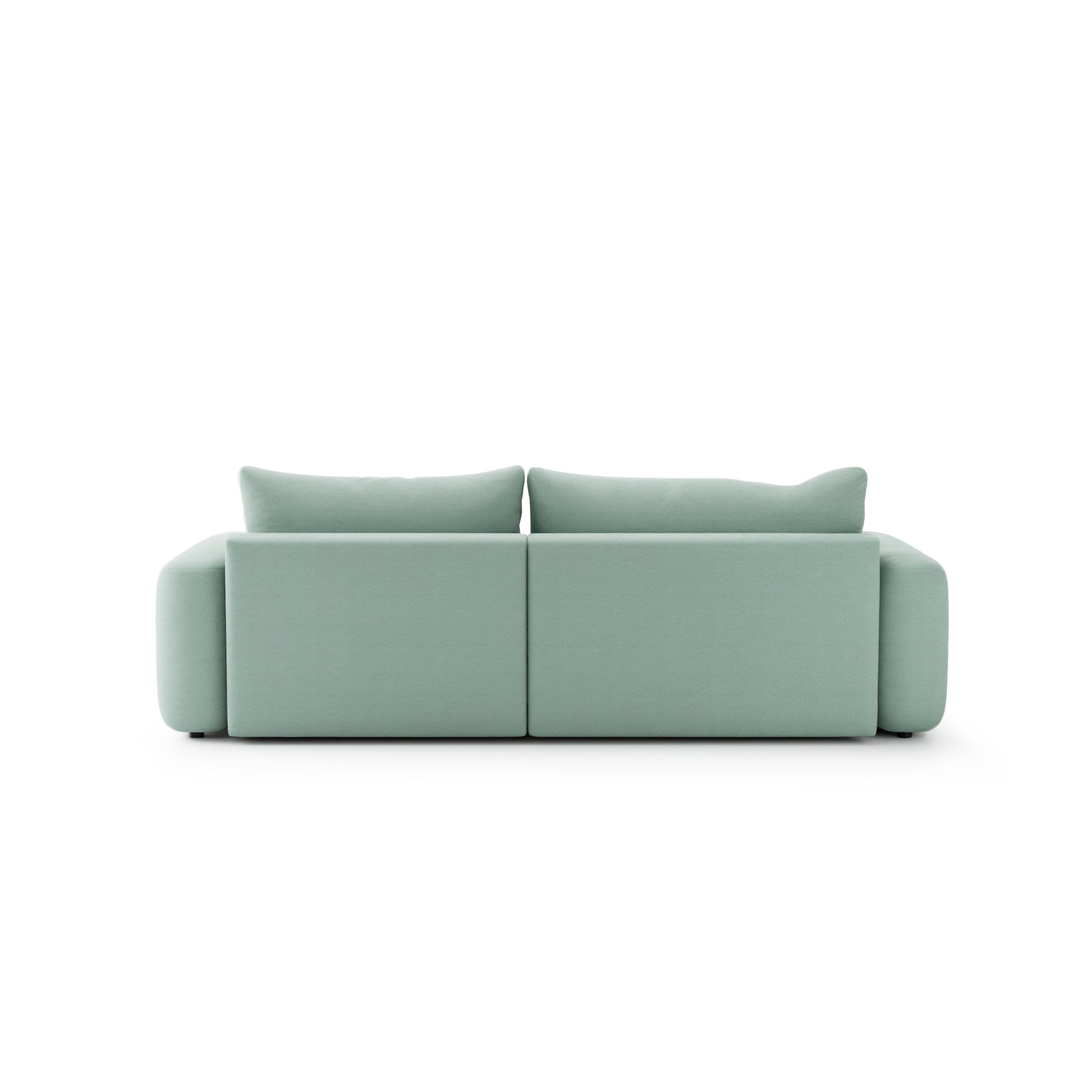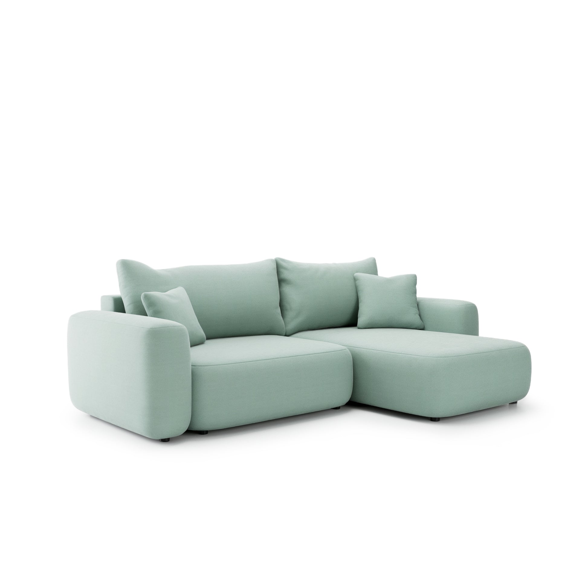 Szerokie siedziska o głębokości 63 cm i miękkie oparcia zapewniają komfort na najwyższym poziomie – idealny zarówno do popołudniowego odpoczynku, jak i długich wieczorów w gronie najbliższych. Dzięki funkcji spania narożnik w kilka chwil zamienia się w wygodne łóżko o powierzchni 216 × 134 cm, a praktyczny pojemnik na pościel pozwala zachować porządek i maksymalnie wykorzystać przestrzeń.