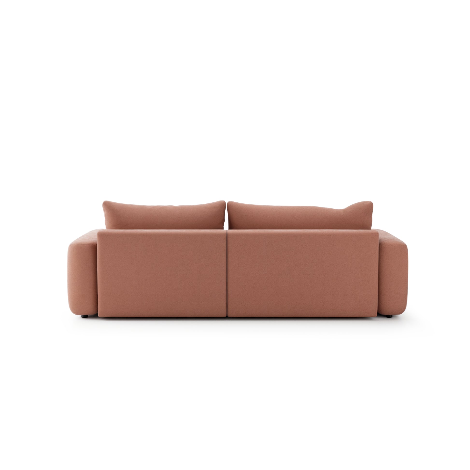 Szerokie siedziska o głębokości 63 cm i miękkie oparcia zapewniają komfort na najwyższym poziomie – idealny zarówno do popołudniowego odpoczynku, jak i długich wieczorów w gronie najbliższych. Dzięki funkcji spania narożnik w kilka chwil zamienia się w wygodne łóżko o powierzchni 216 × 134 cm, a praktyczny pojemnik na pościel pozwala zachować porządek i maksymalnie wykorzystać przestrzeń.