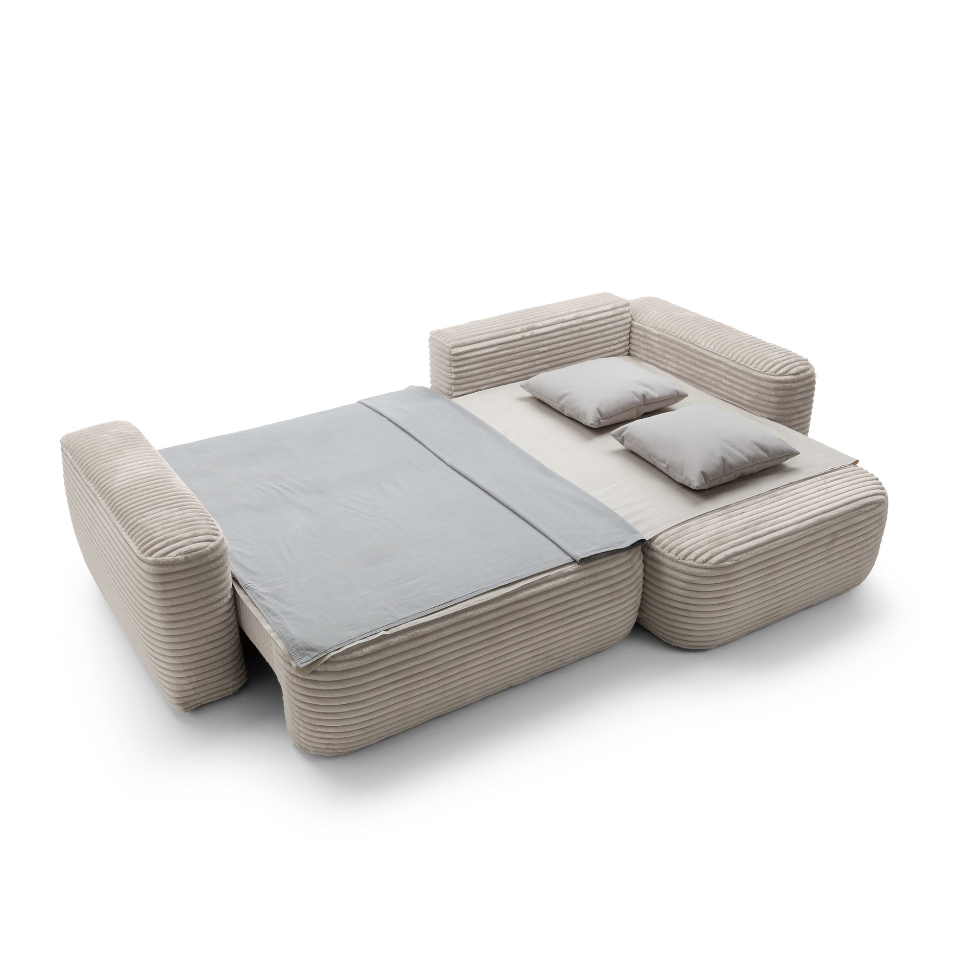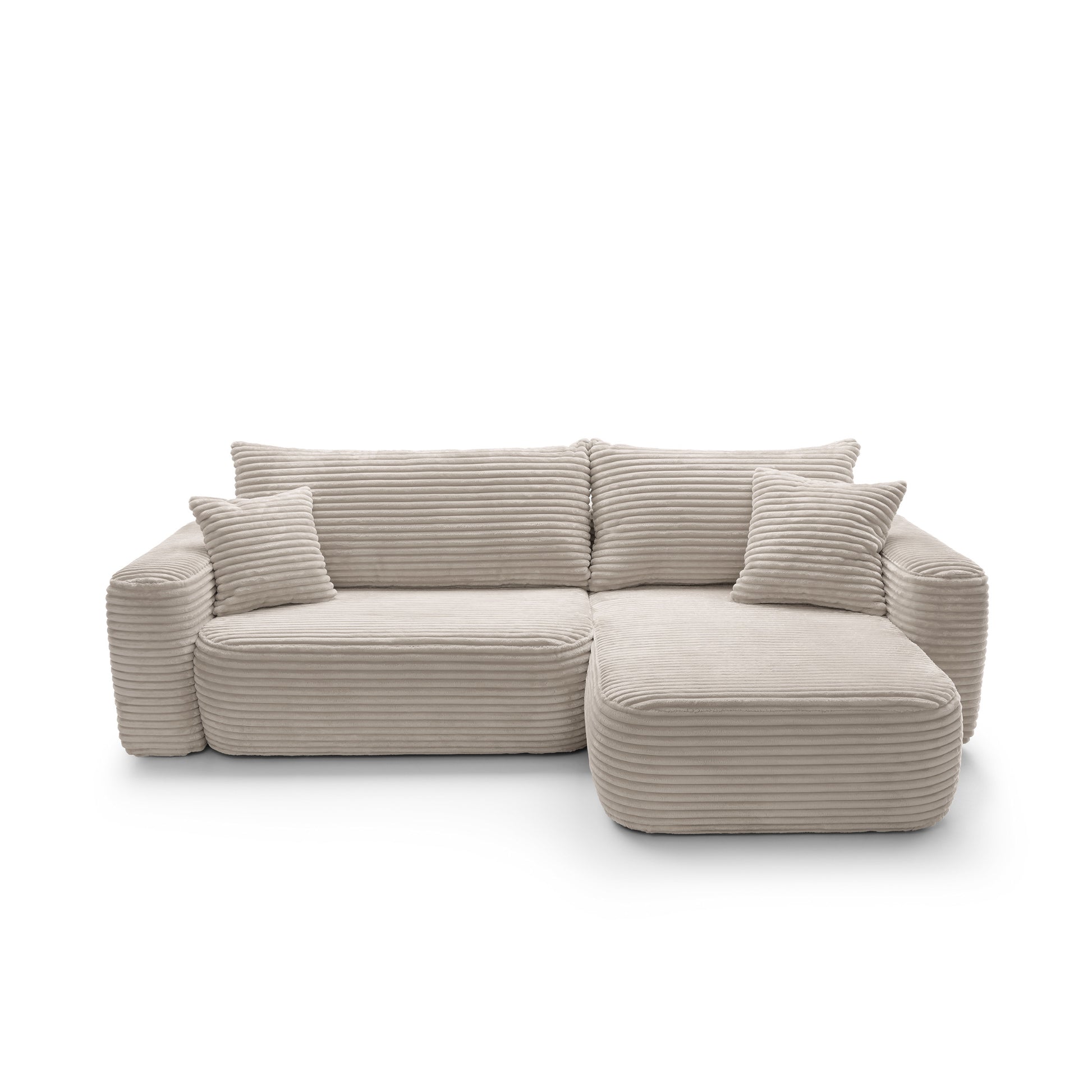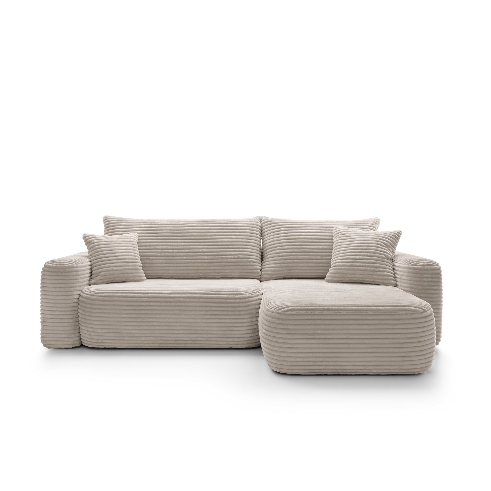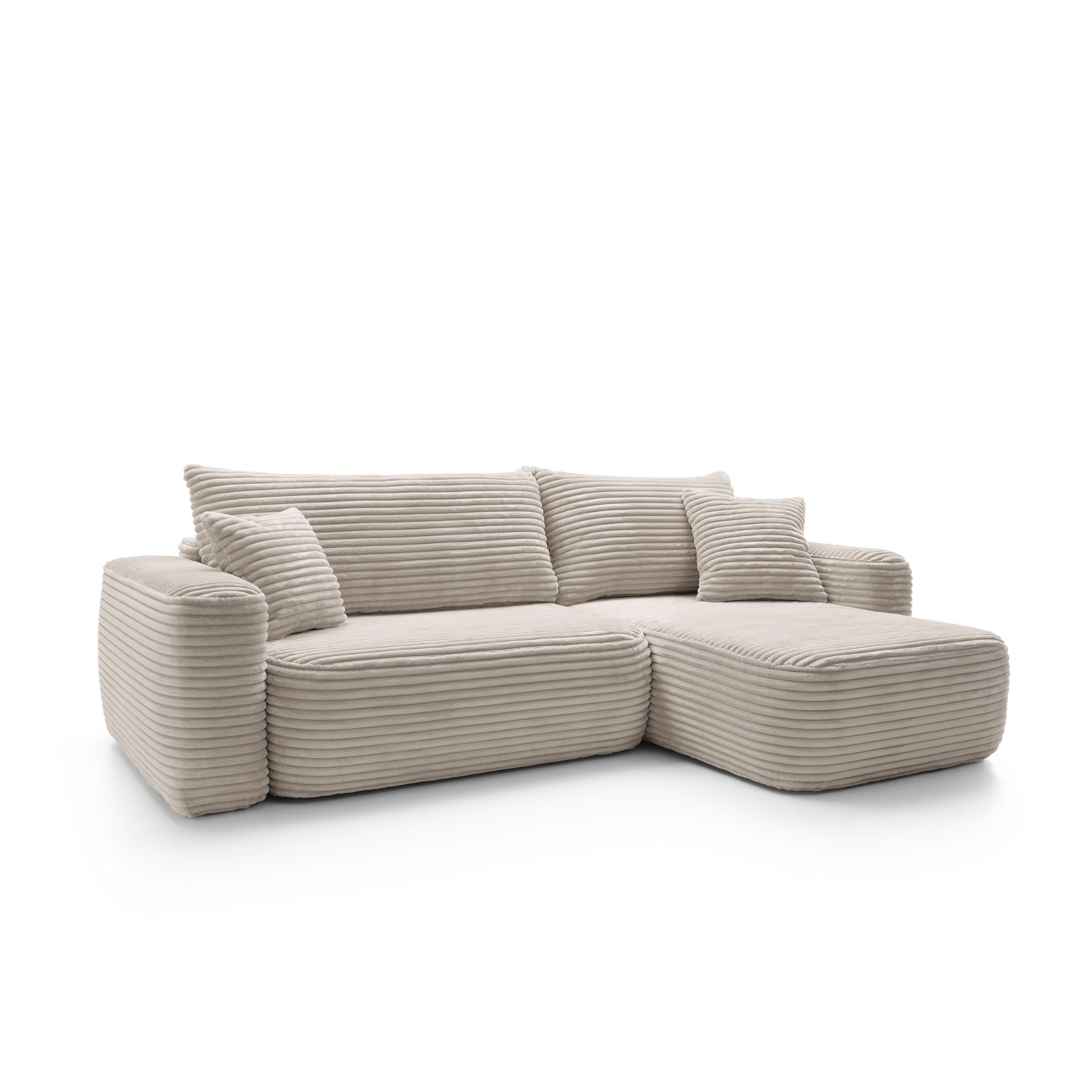 Szerokie siedziska o głębokości 63 cm i miękkie oparcia zapewniają komfort na najwyższym poziomie – idealny zarówno do popołudniowego odpoczynku, jak i długich wieczorów w gronie najbliższych. Dzięki funkcji spania narożnik w kilka chwil zamienia się w wygodne łóżko o powierzchni 216 × 134 cm, a praktyczny pojemnik na pościel pozwala zachować porządek i maksymalnie wykorzystać przestrzeń.