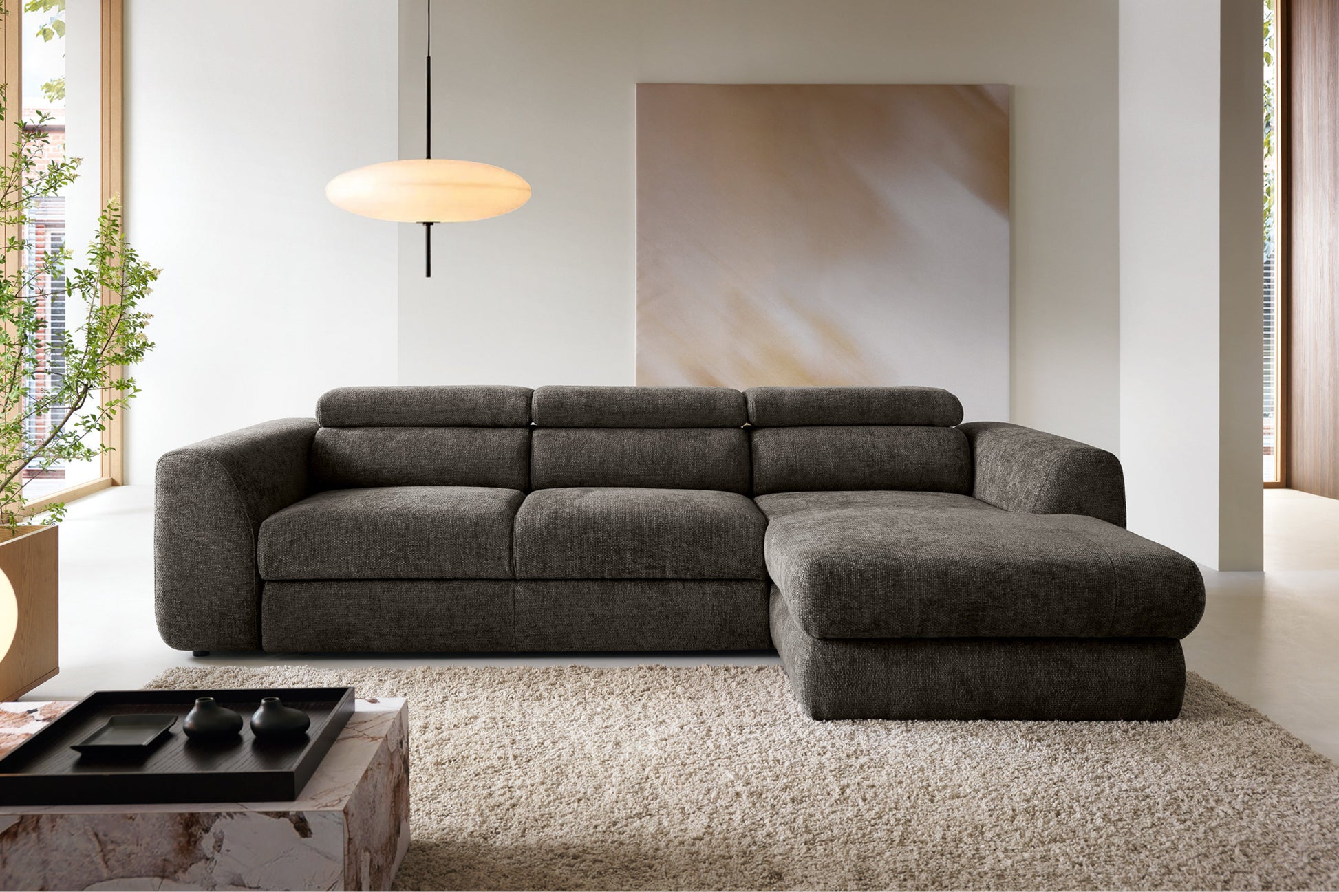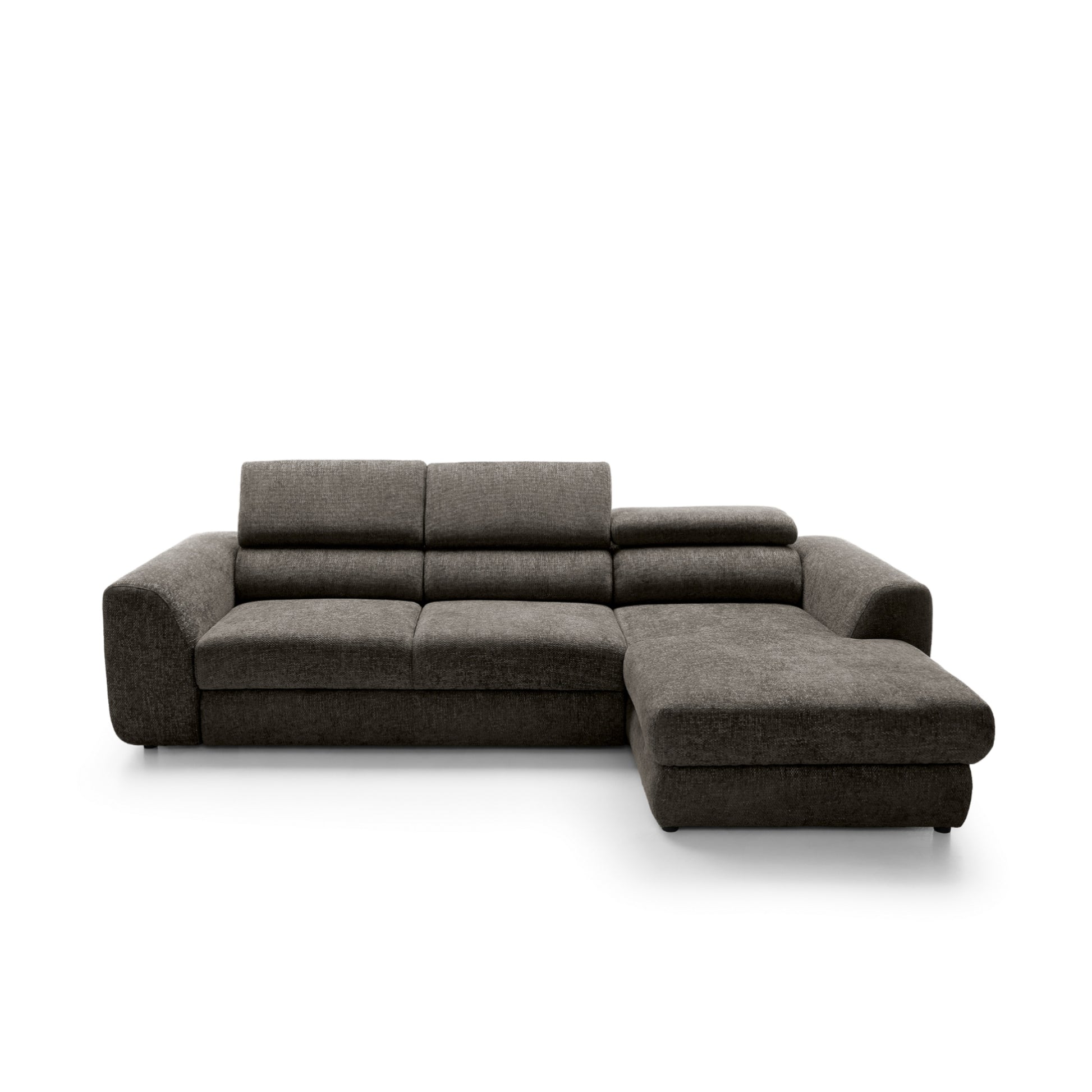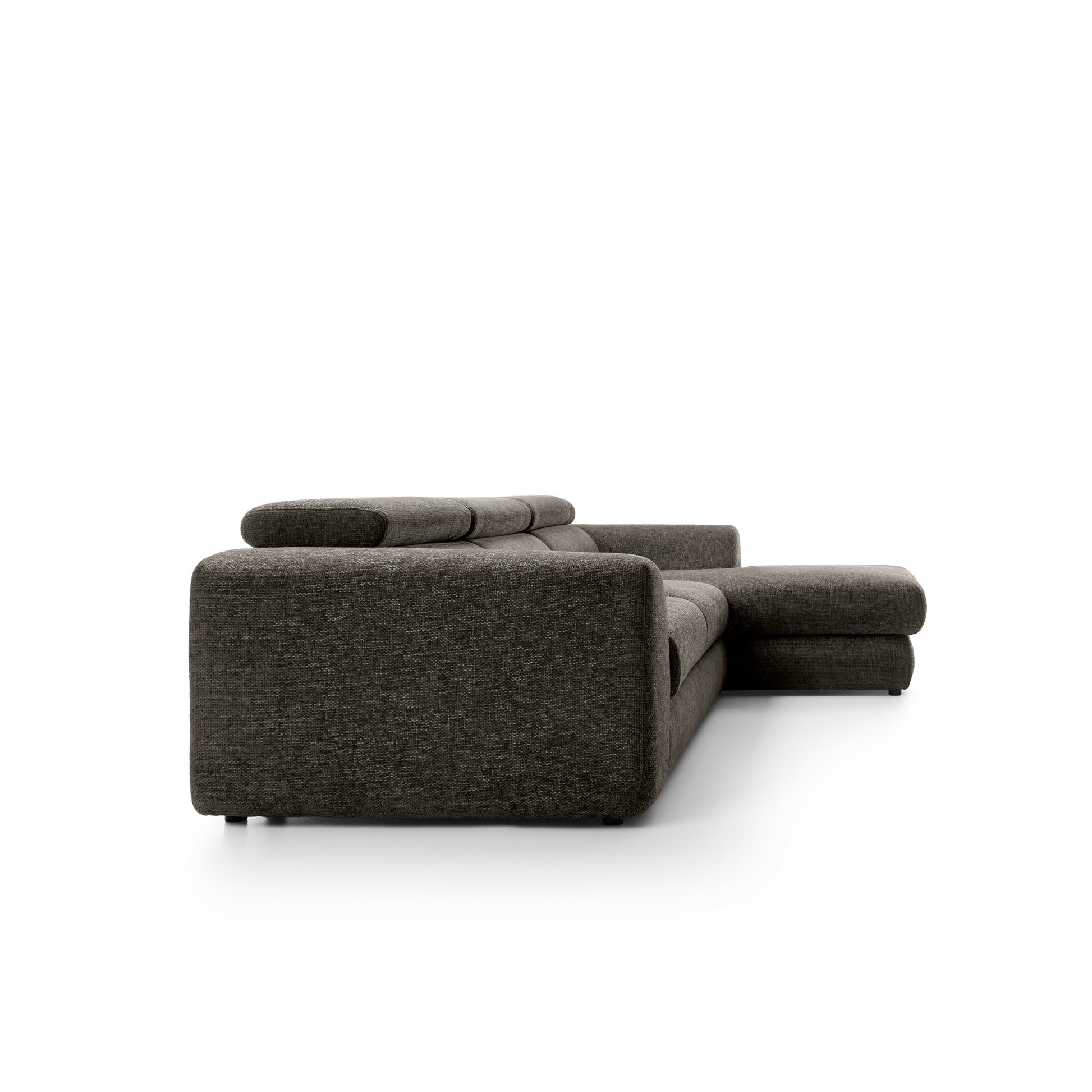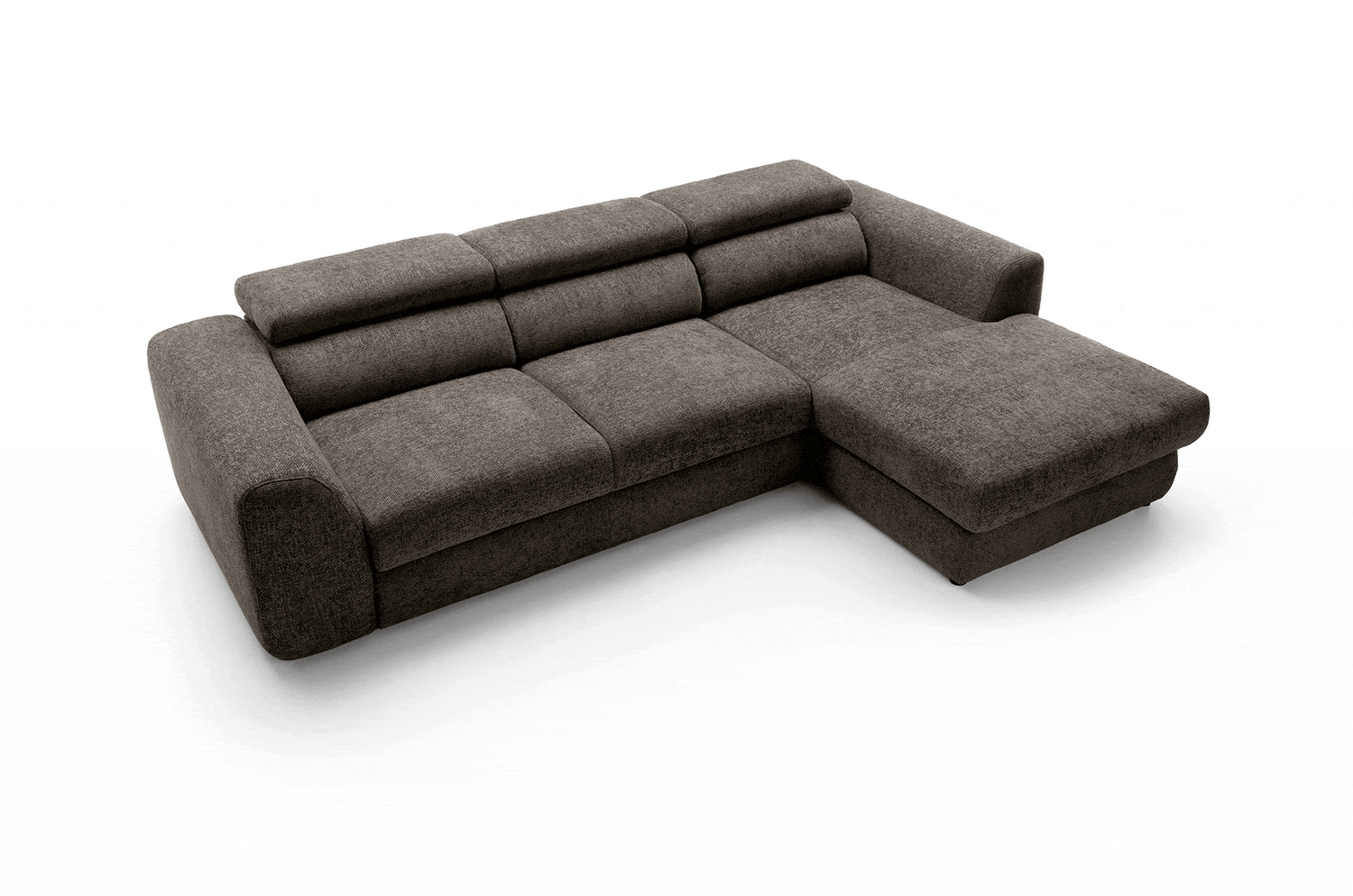 Szerokie siedziska, wypełnione miękką pianką, zapewniają wygodę nawet podczas wielogodzinnego relaksu, a wydłużona część narożna (leżanka) zaprasza do odprężenia w pozycji półleżącej. Oparcia ergonomicznie wyprofilowane dbają o zdrowe podparcie kręgosłupa, natomiast regulowane zagłówki umożliwiają indywidualne dopasowanie kąta podparcia – docenisz je podczas wieczornego seansu czy popołudniowej drzemki.