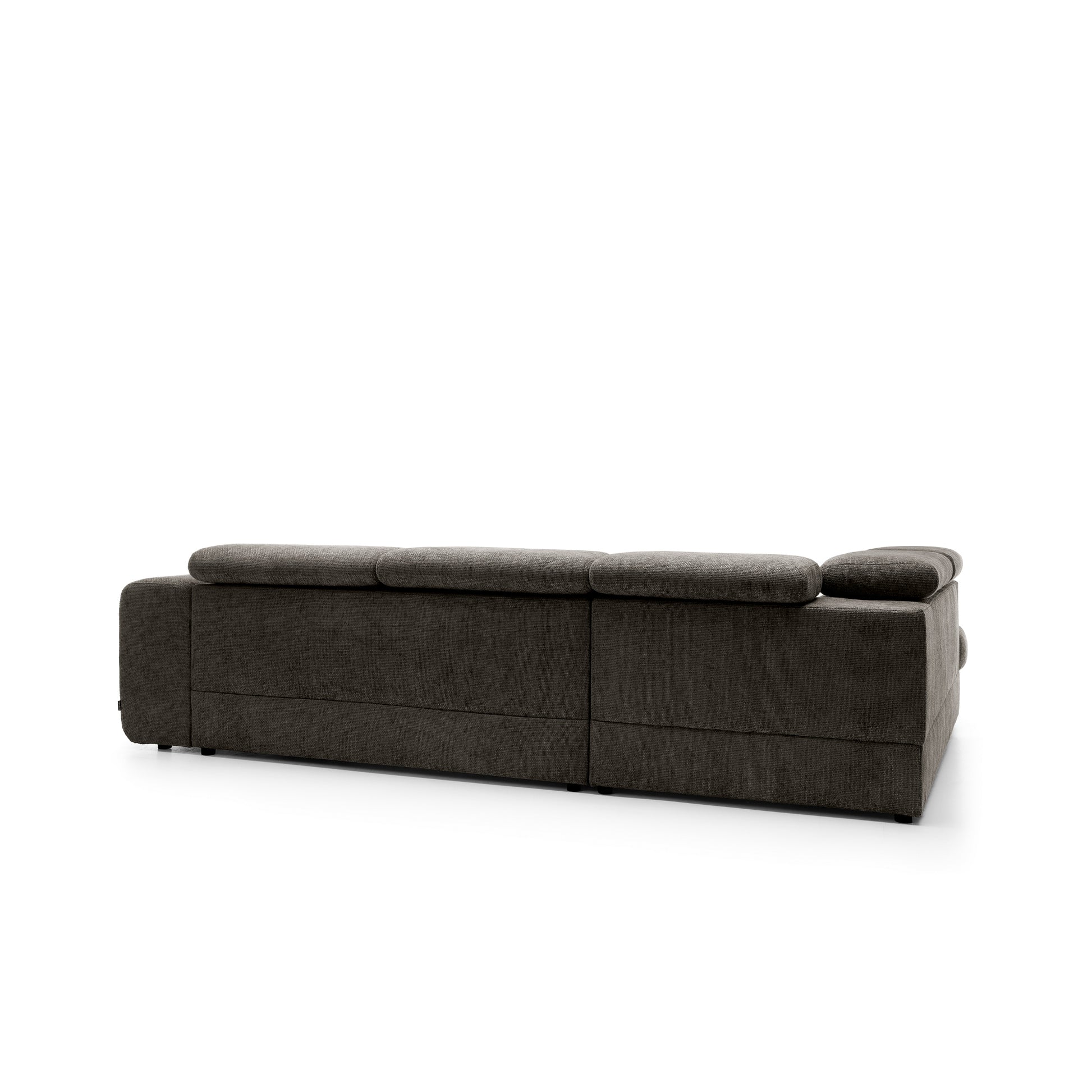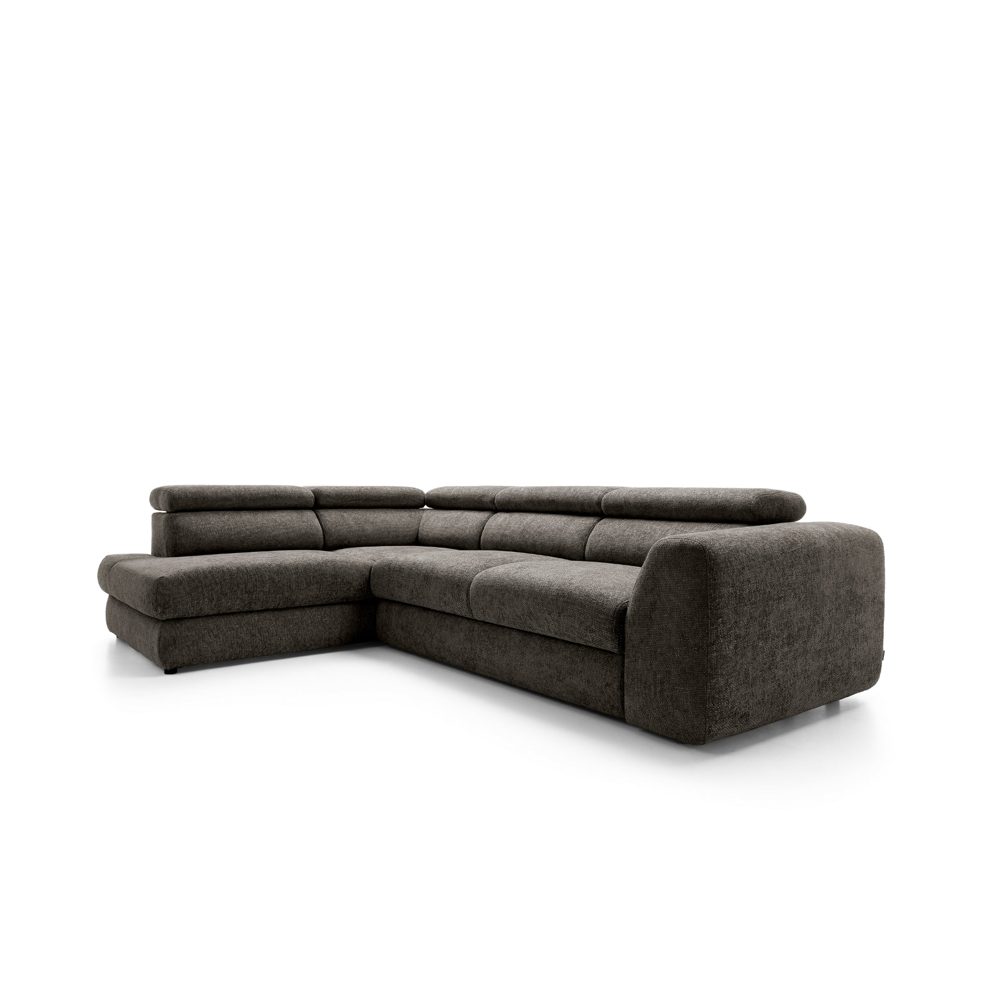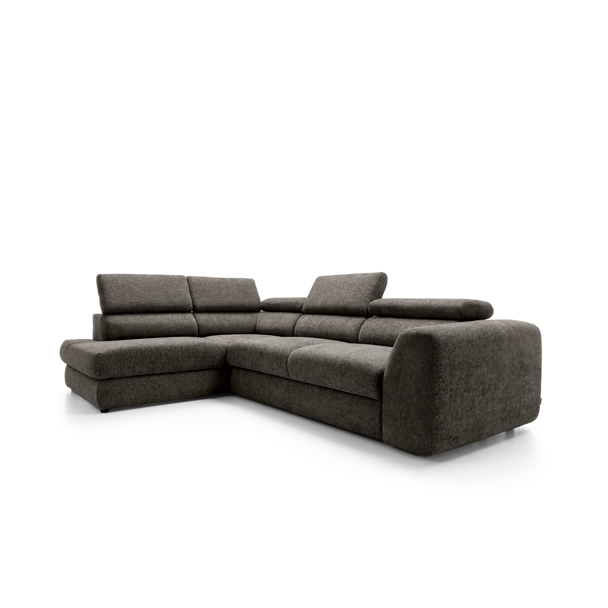Szerokie, miękkie siedziska i grube oparcia zapewniają wygodę niezależnie od pory dnia. Wydłużona część narożna (207 cm) umożliwia swobodne wyciągnięcie nóg i relaks w pozycji półleżącej. Dodatkowo, regulowane zagłówki pozwalają dopasować kąt podparcia do własnych preferencji – idealne na dłuższy odpoczynek, filmowy wieczór czy popołudniową drzemkę.