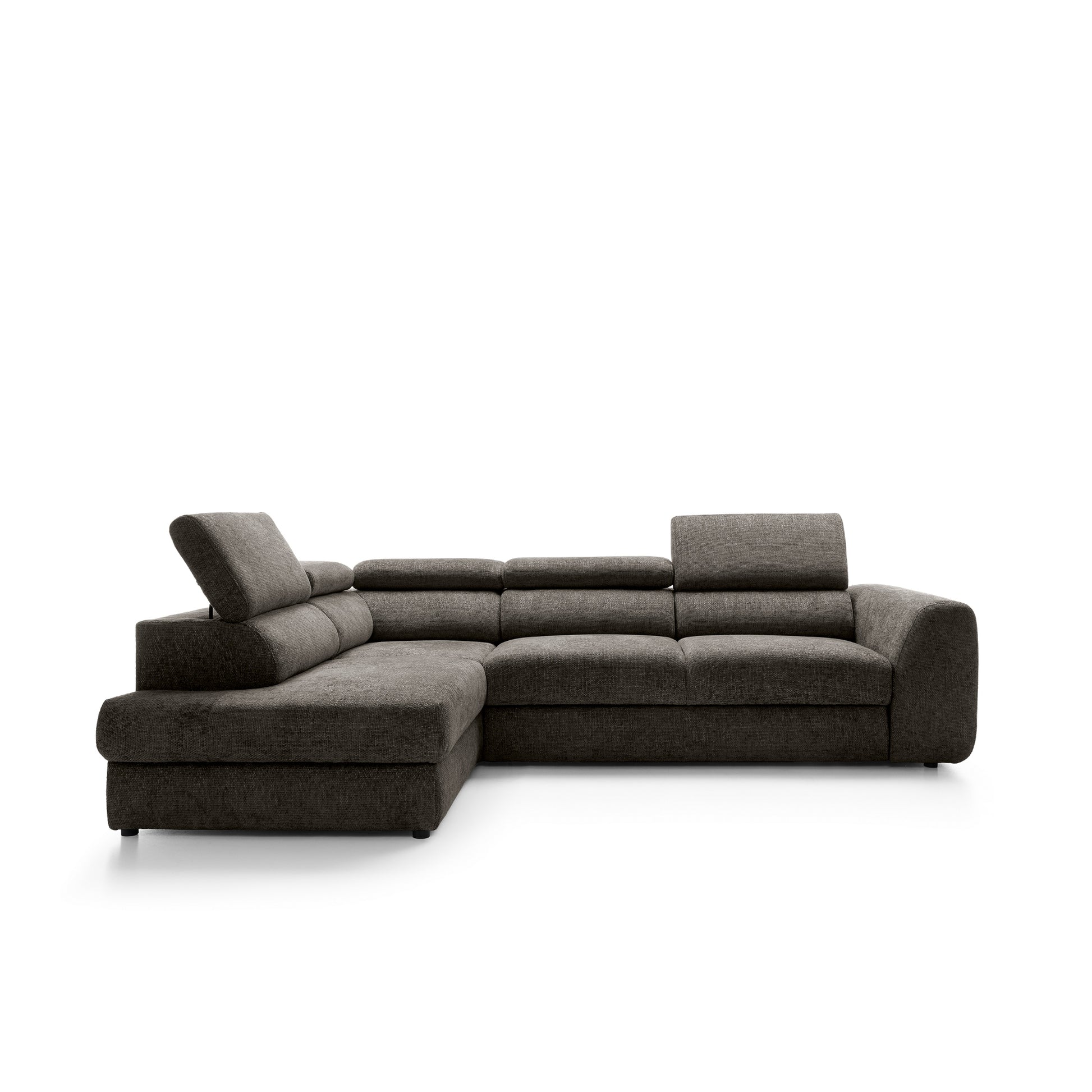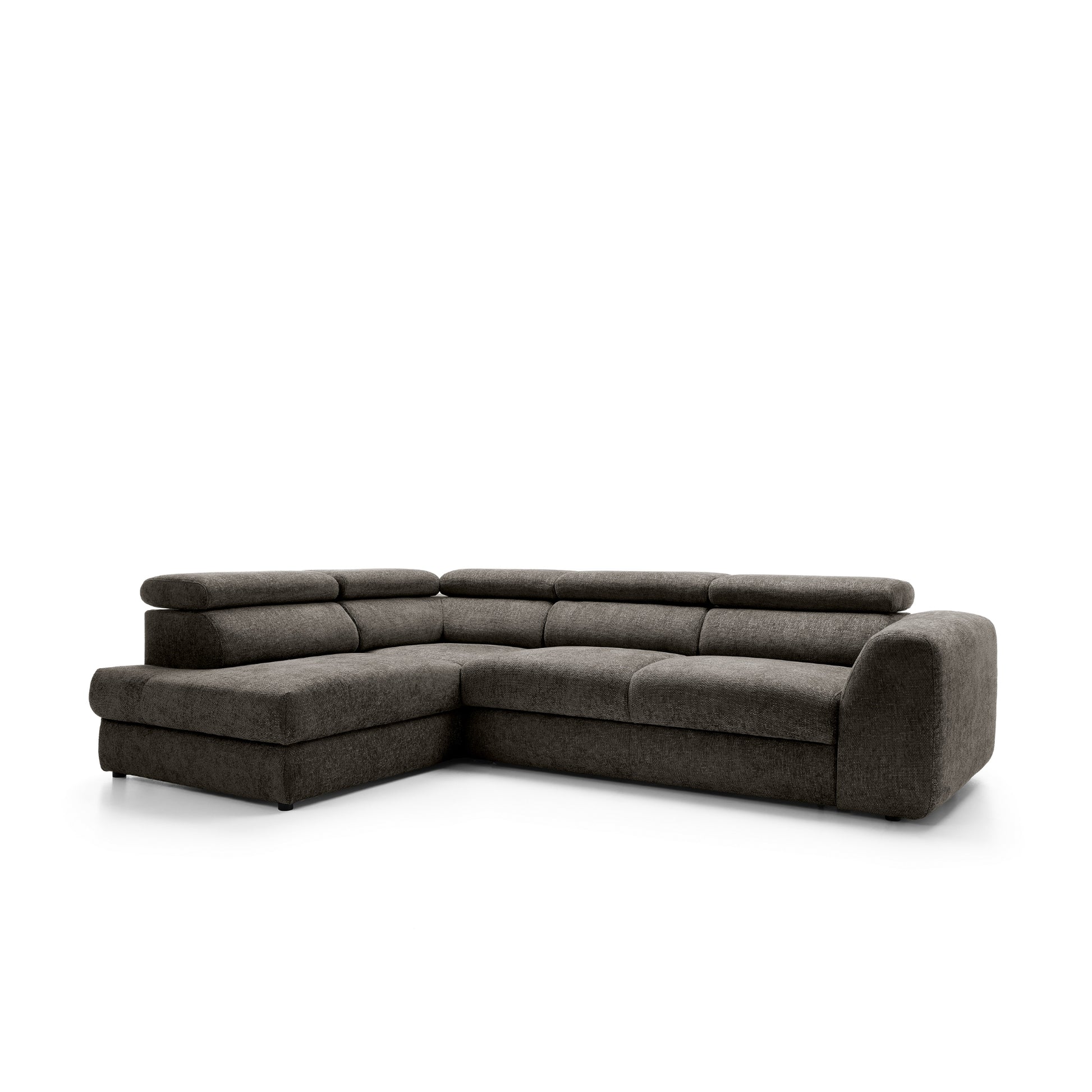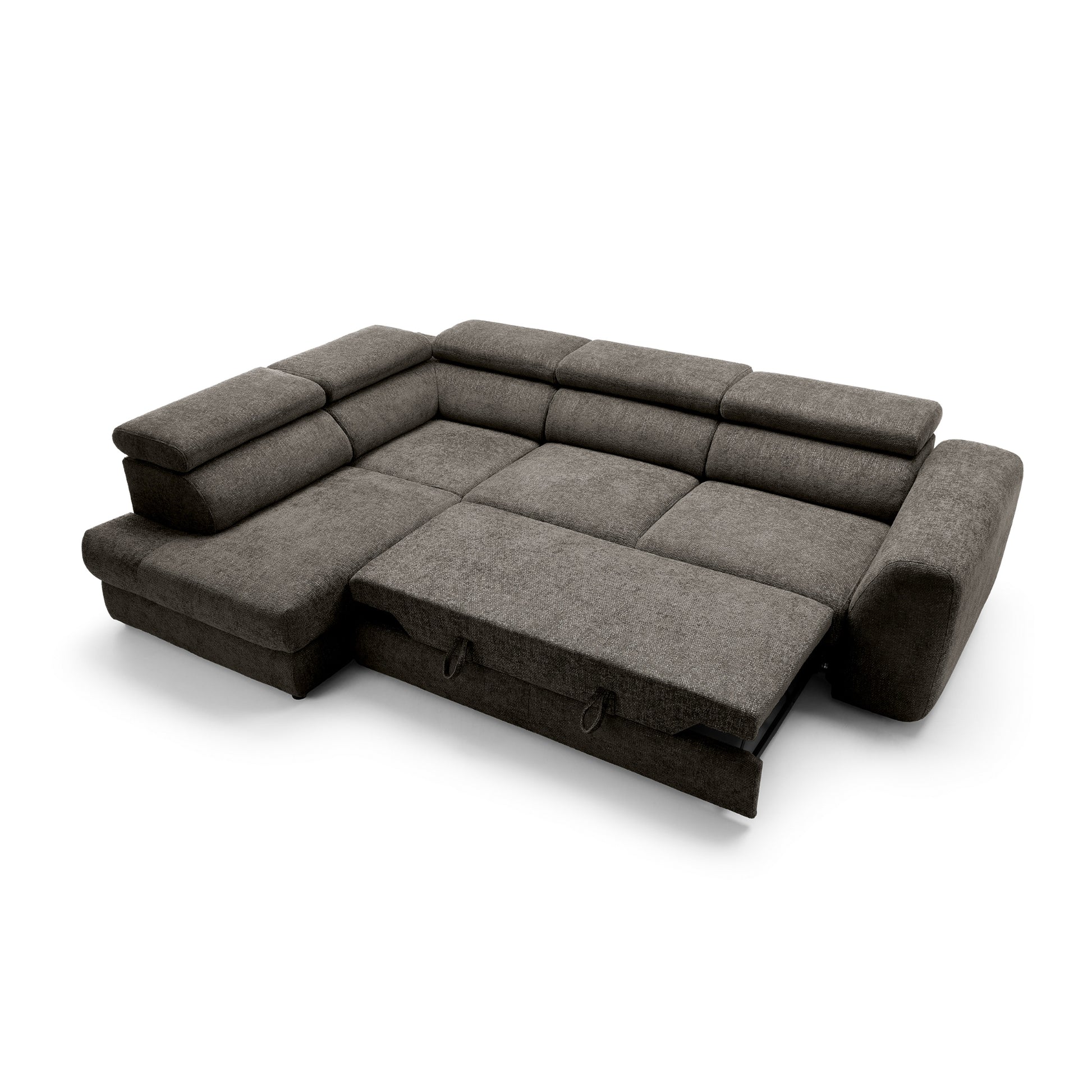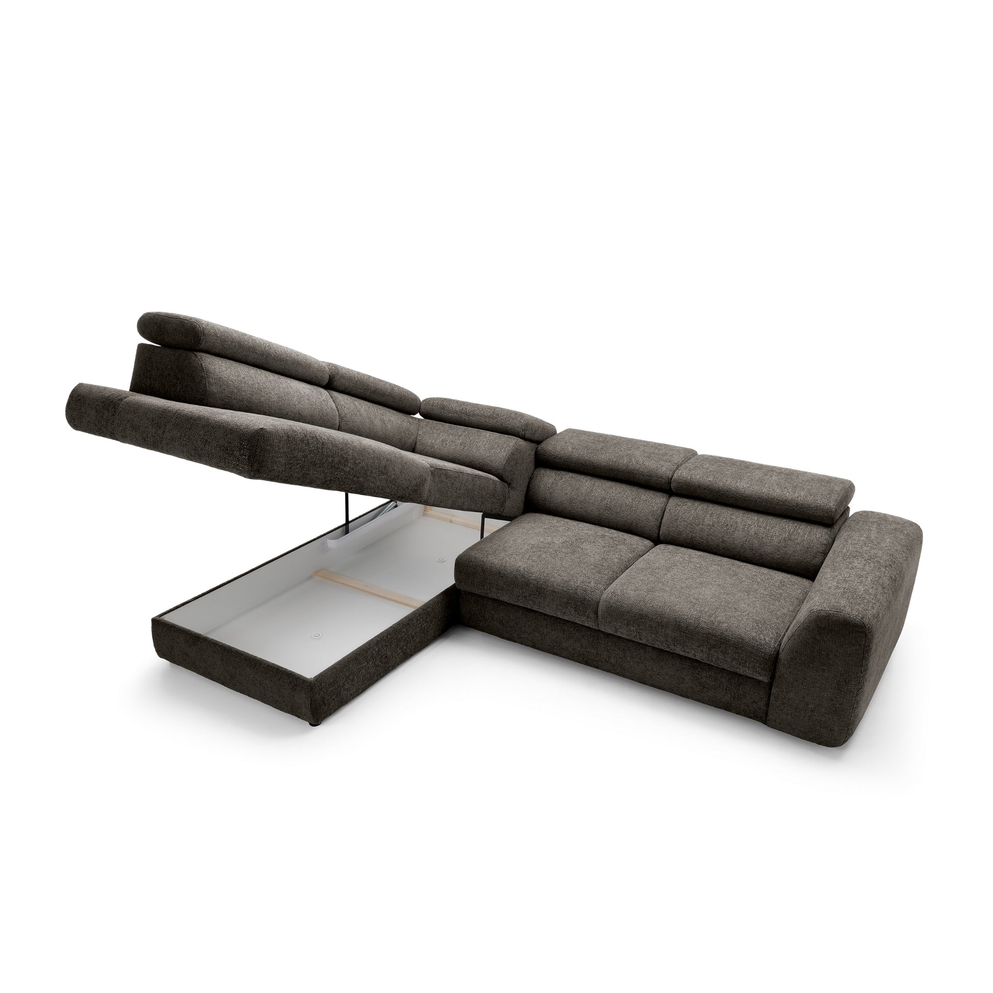 Szerokie, miękkie siedziska i grube oparcia zapewniają wygodę niezależnie od pory dnia. Wydłużona część narożna (207 cm) umożliwia swobodne wyciągnięcie nóg i relaks w pozycji półleżącej. Dodatkowo, regulowane zagłówki pozwalają dopasować kąt podparcia do własnych preferencji – idealne na dłuższy odpoczynek, filmowy wieczór czy popołudniową drzemkę.