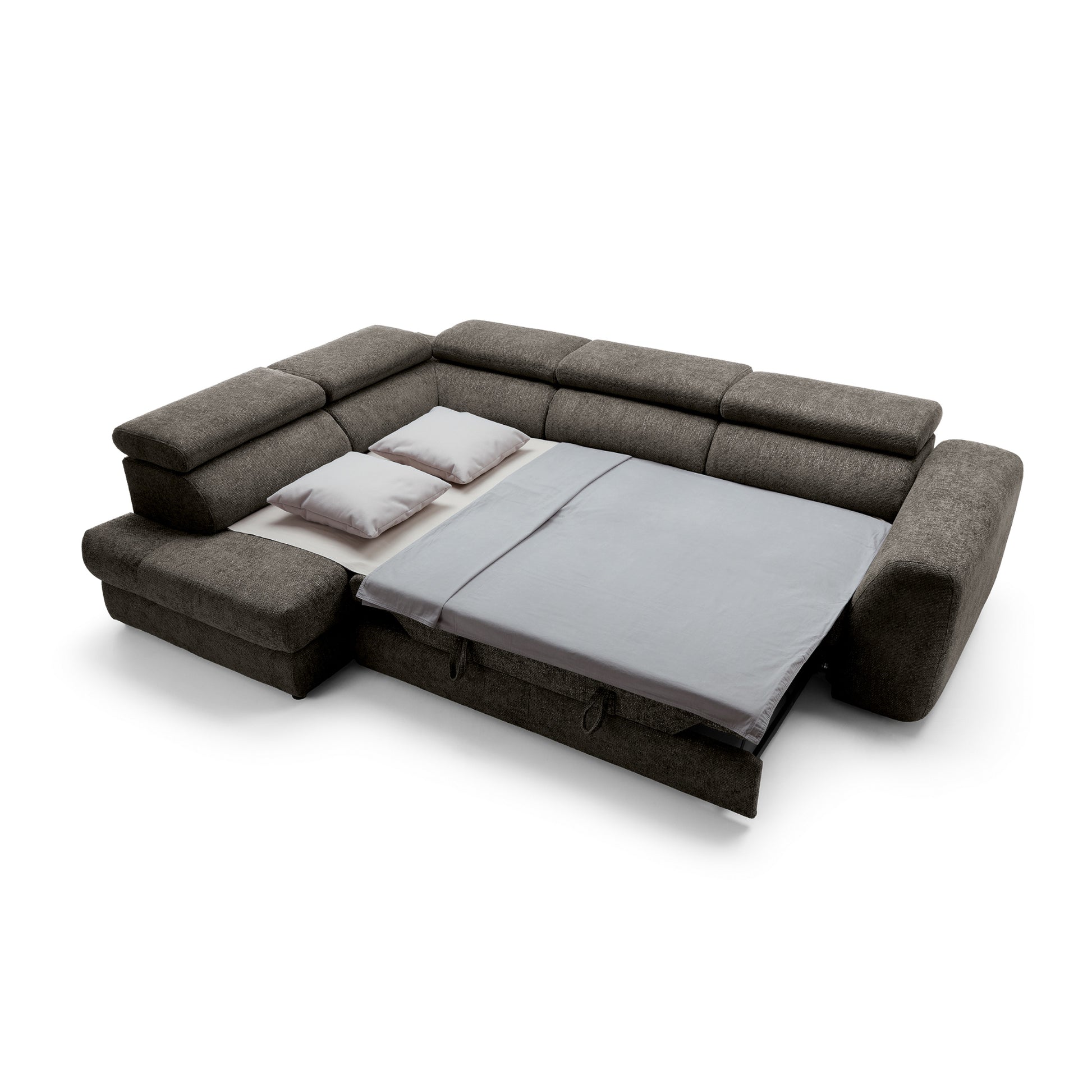 Z myślą o codziennej praktyczności, narożnik Bluvel II został wyposażony w funkcję spania – łatwy w obsłudze mechanizm rozkładania pozwala stworzyć wygodne łóżko o powierzchni 202 × 128 cm. Wbudowany pojemnik na pościel umożliwia wygodne przechowywanie koców i poduszek, pomagając utrzymać porządek.