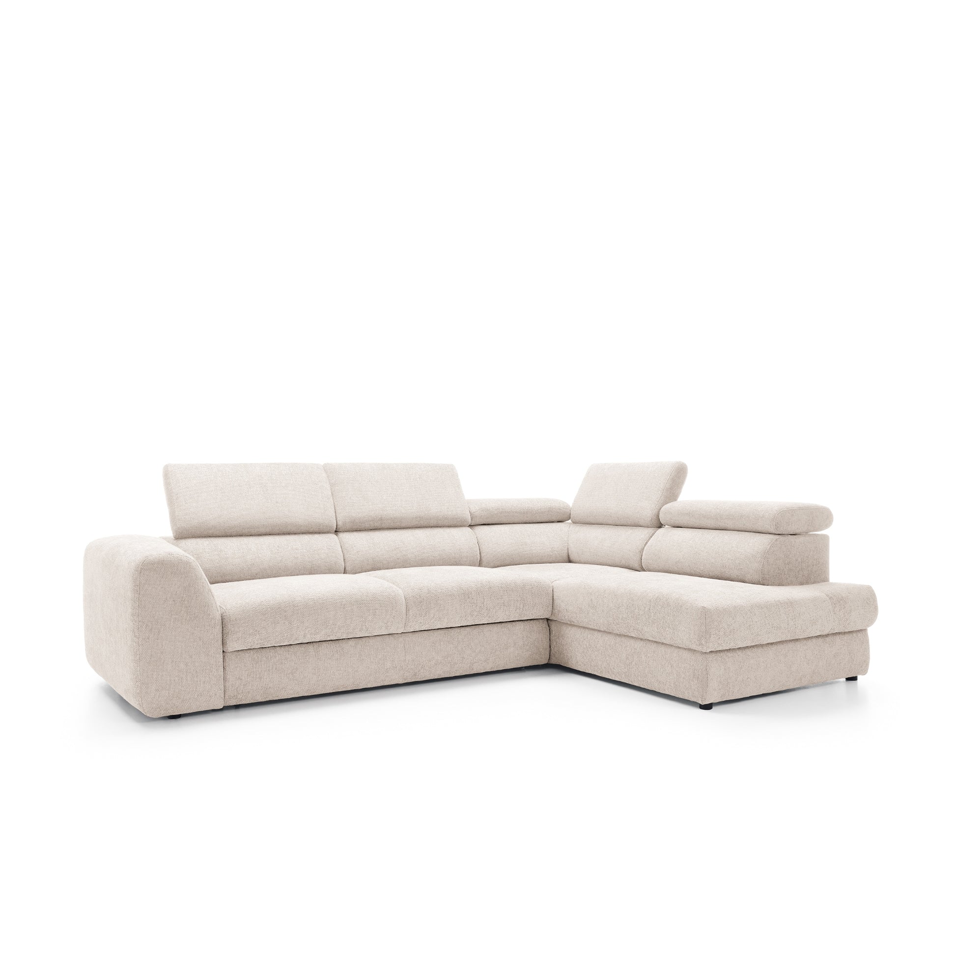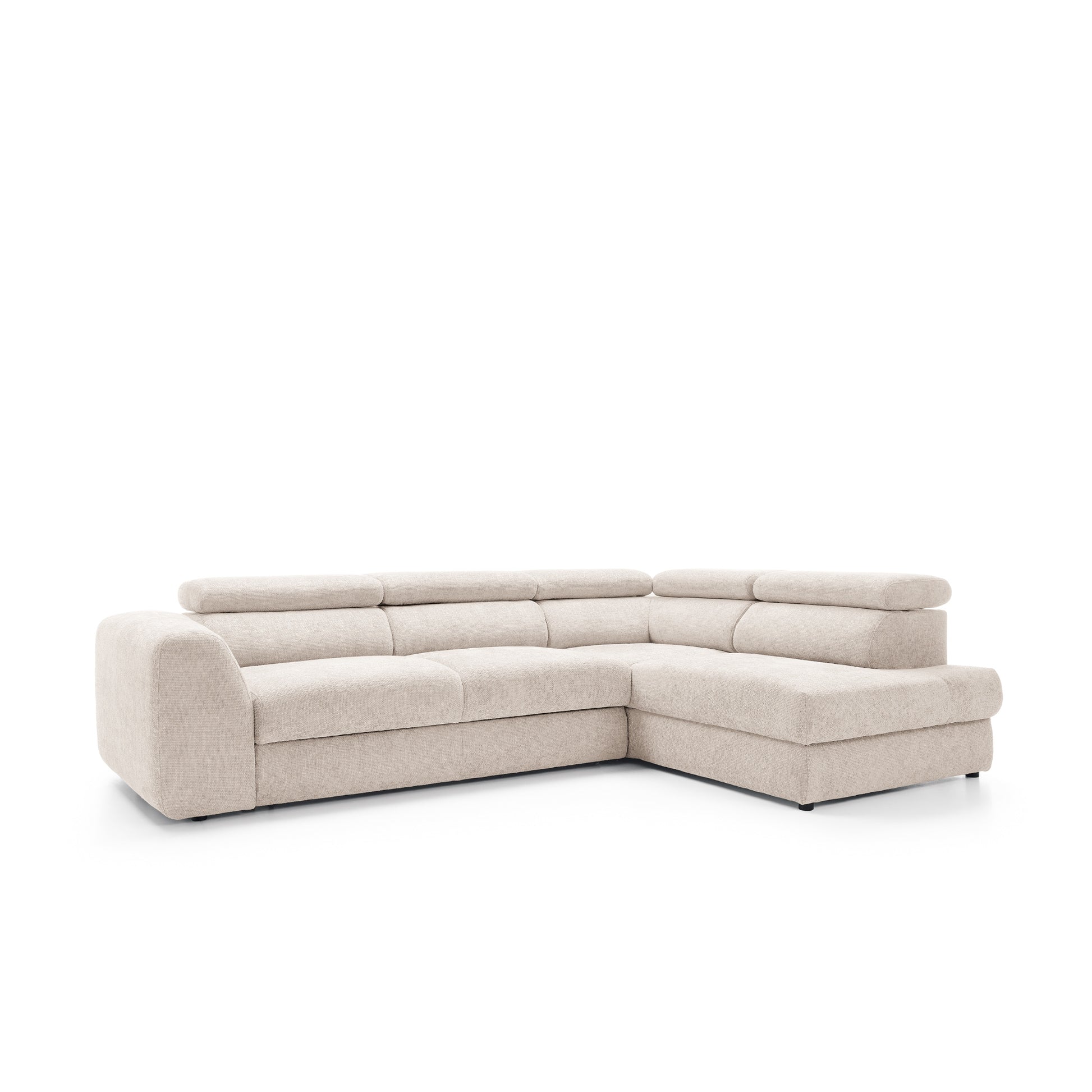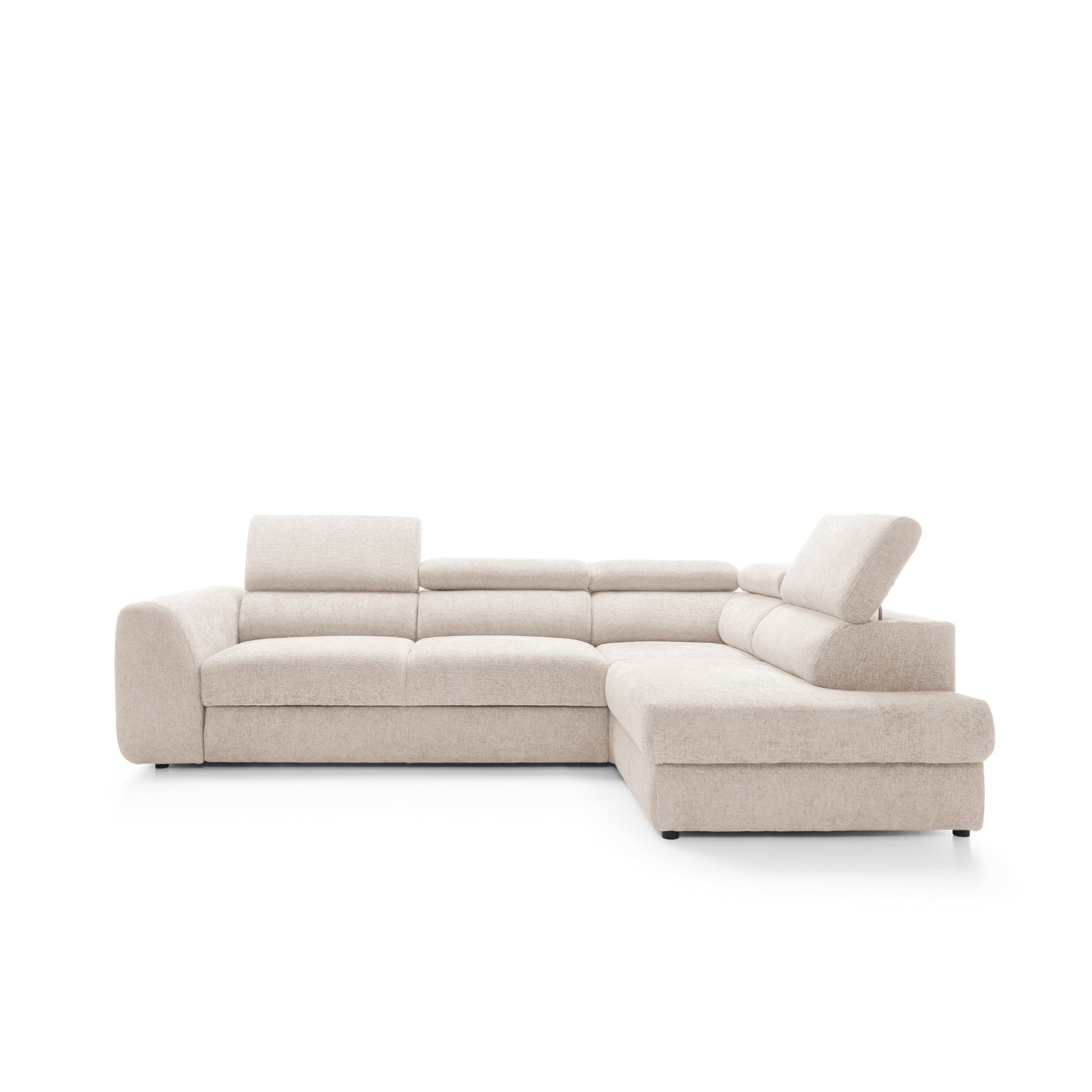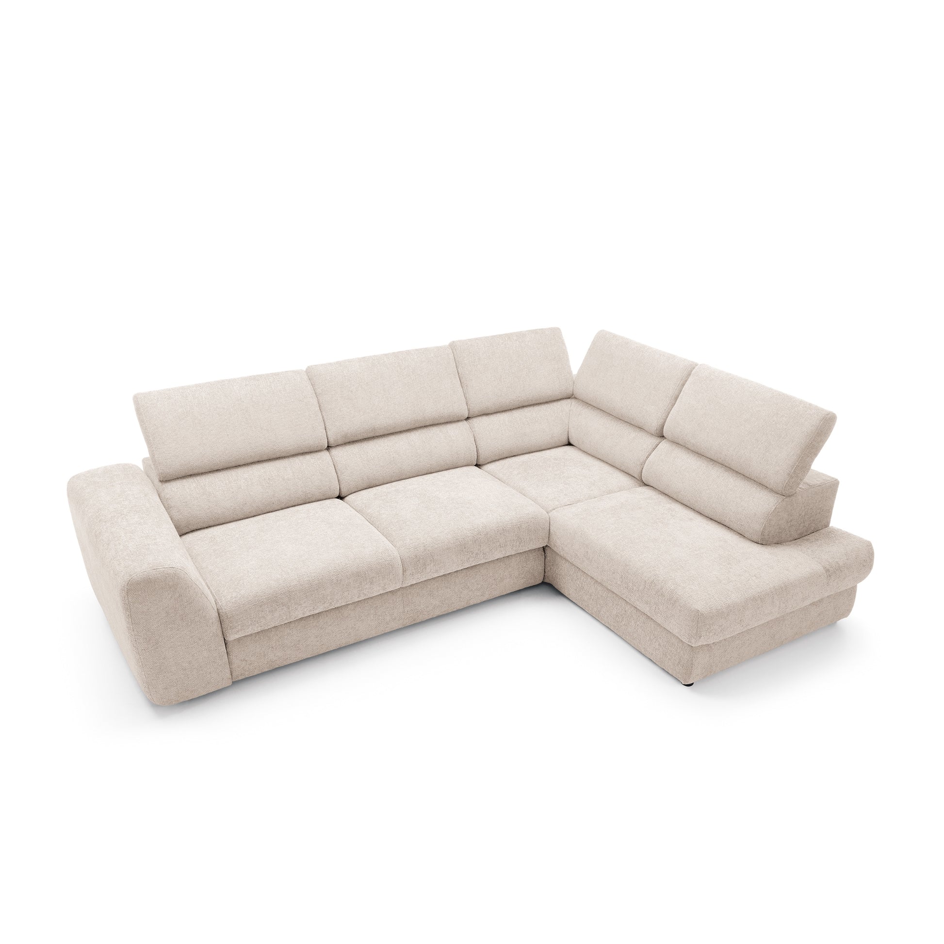 Szerokie, miękkie siedziska i grube oparcia zapewniają wygodę niezależnie od pory dnia. Wydłużona część narożna (207 cm) umożliwia swobodne wyciągnięcie nóg i relaks w pozycji półleżącej. Dodatkowo, regulowane zagłówki pozwalają dopasować kąt podparcia do własnych preferencji – idealne na dłuższy odpoczynek, filmowy wieczór czy popołudniową drzemkę.