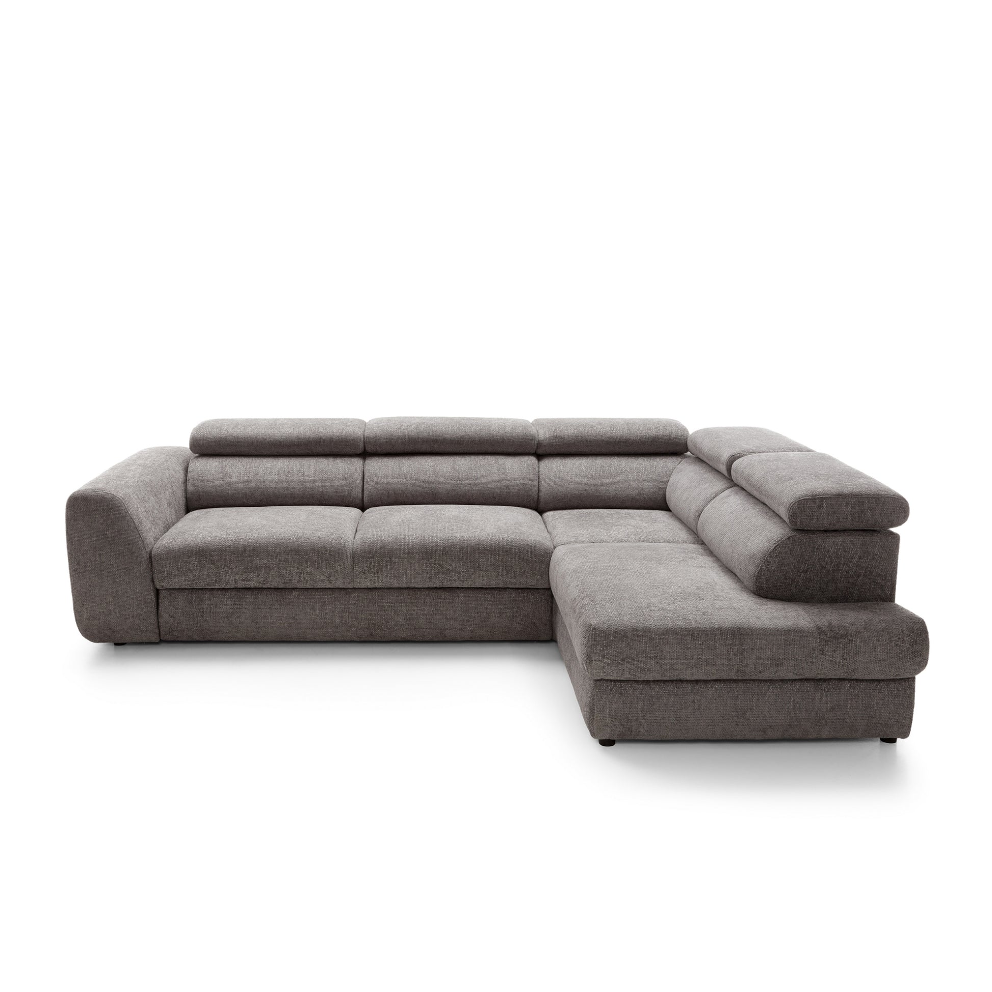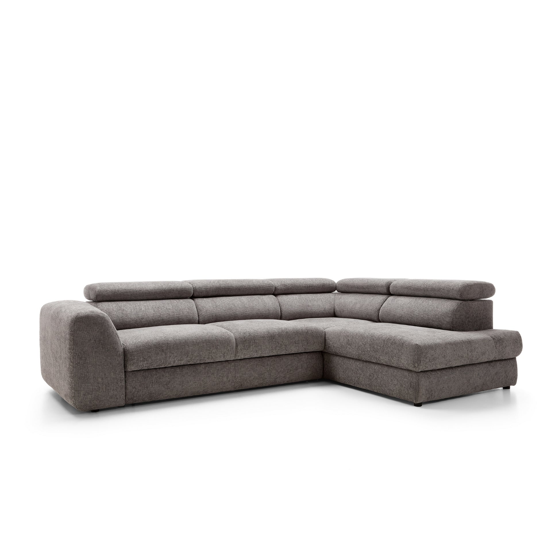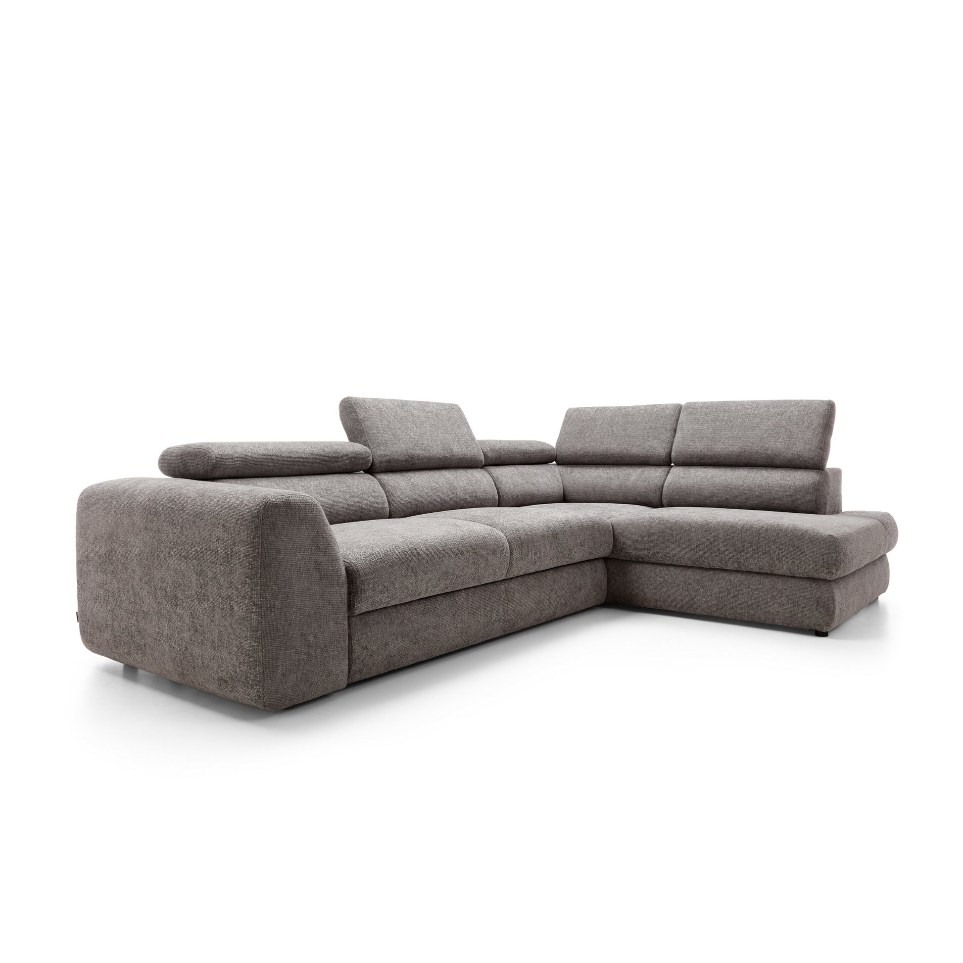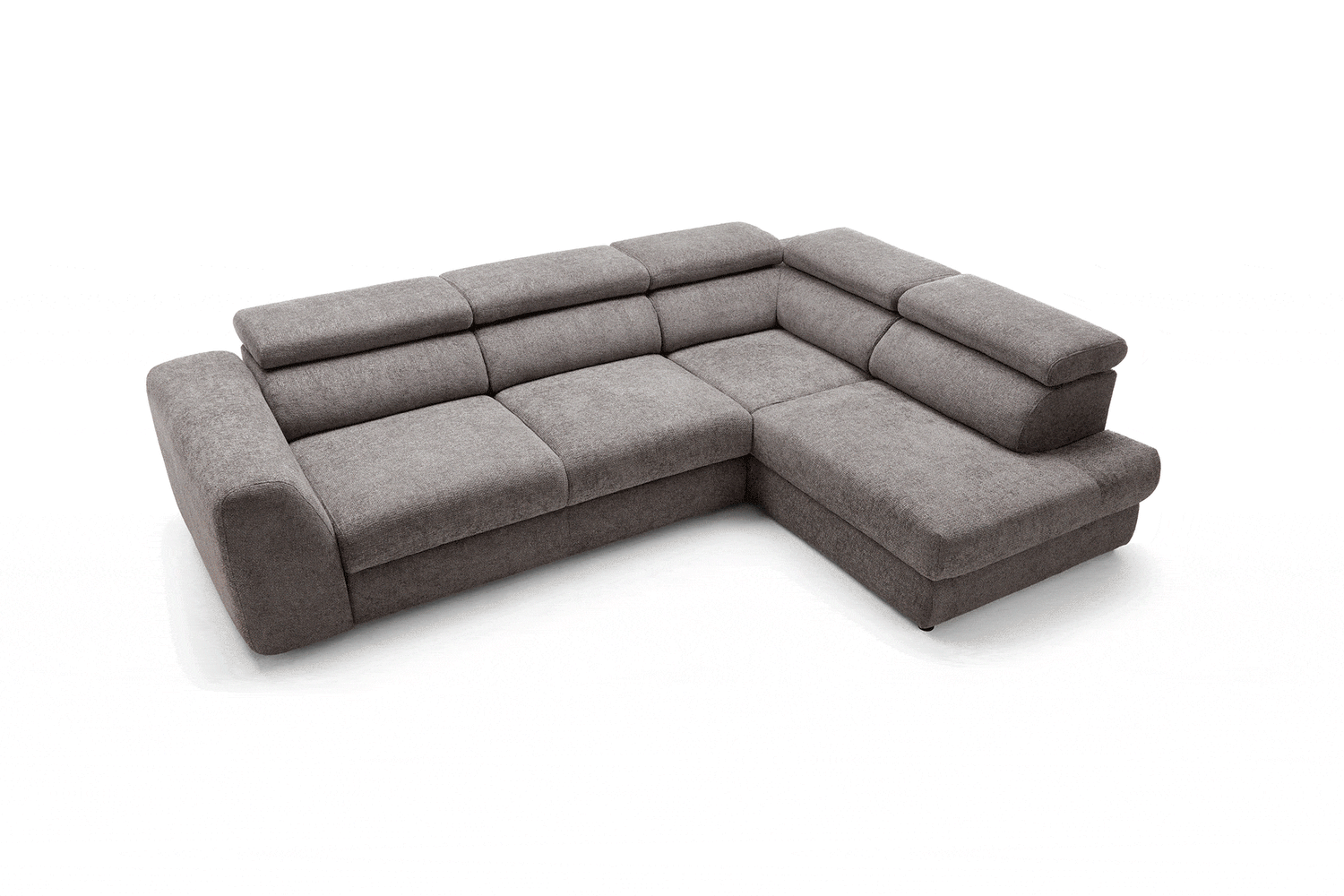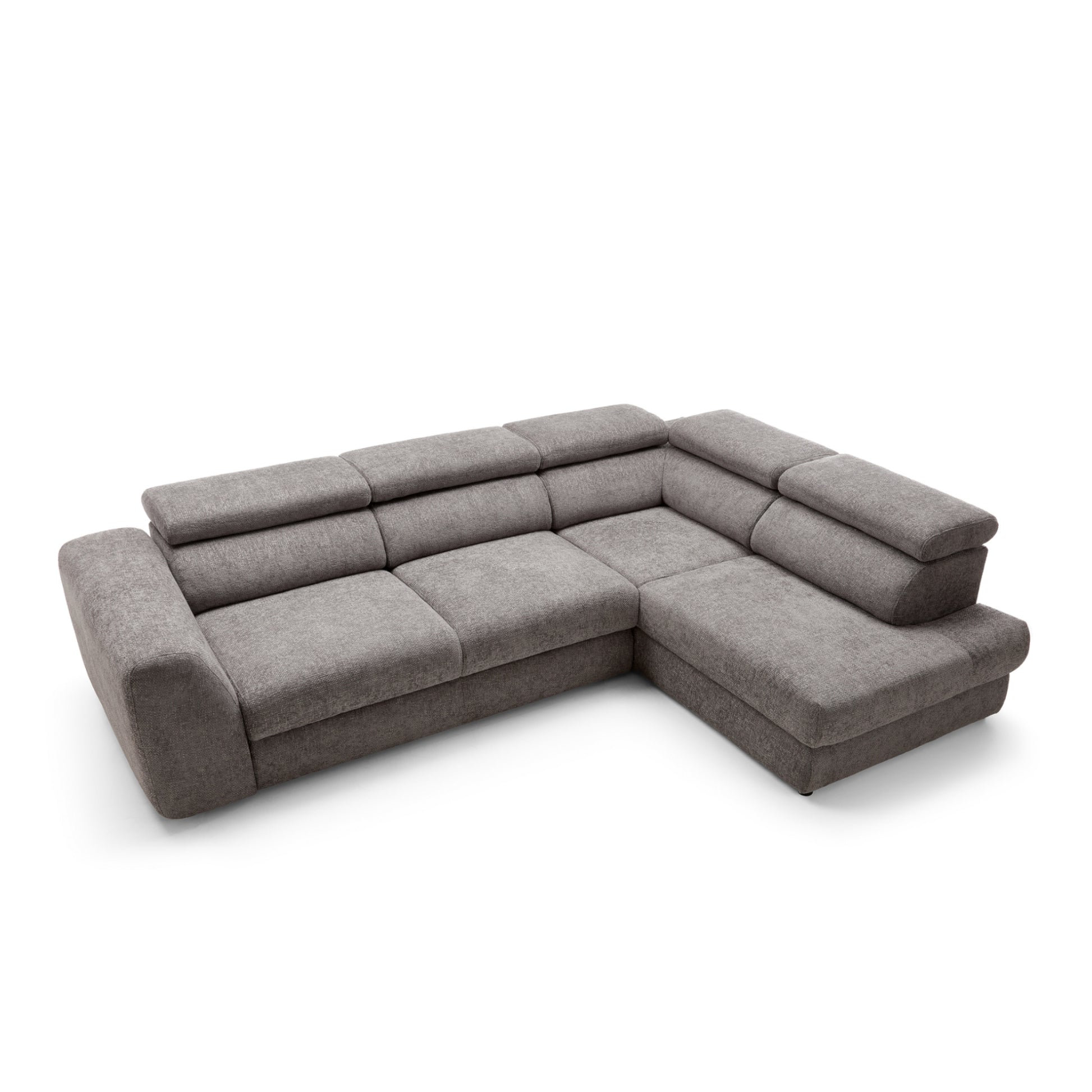 Szerokie, miękkie siedziska i grube oparcia zapewniają wygodę niezależnie od pory dnia. Wydłużona część narożna (207 cm) umożliwia swobodne wyciągnięcie nóg i relaks w pozycji półleżącej. Dodatkowo, regulowane zagłówkipozwalają dopasować kąt podparcia do własnych preferencji – idealne na dłuższy odpoczynek, filmowy wieczór czy popołudniową drzemkę.
