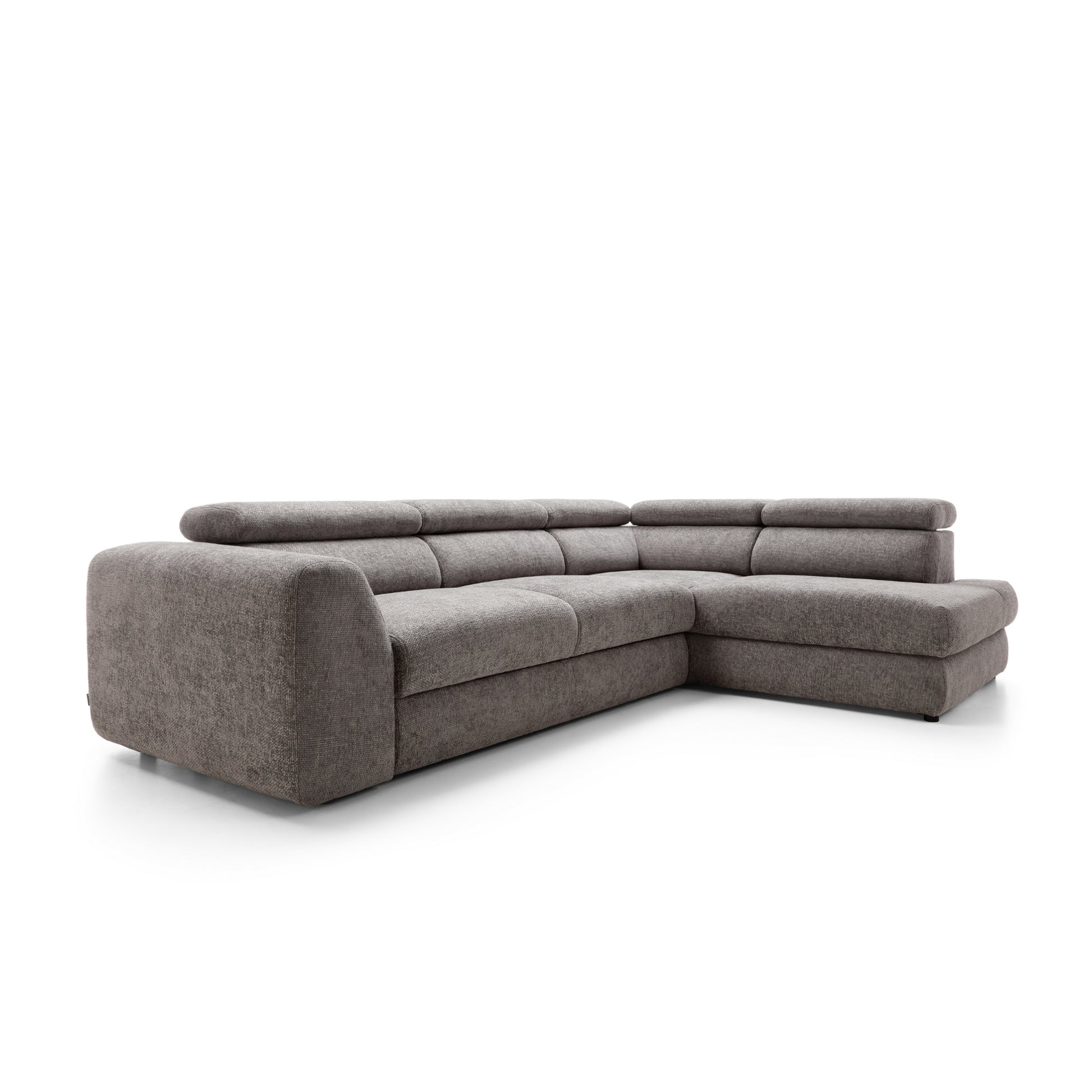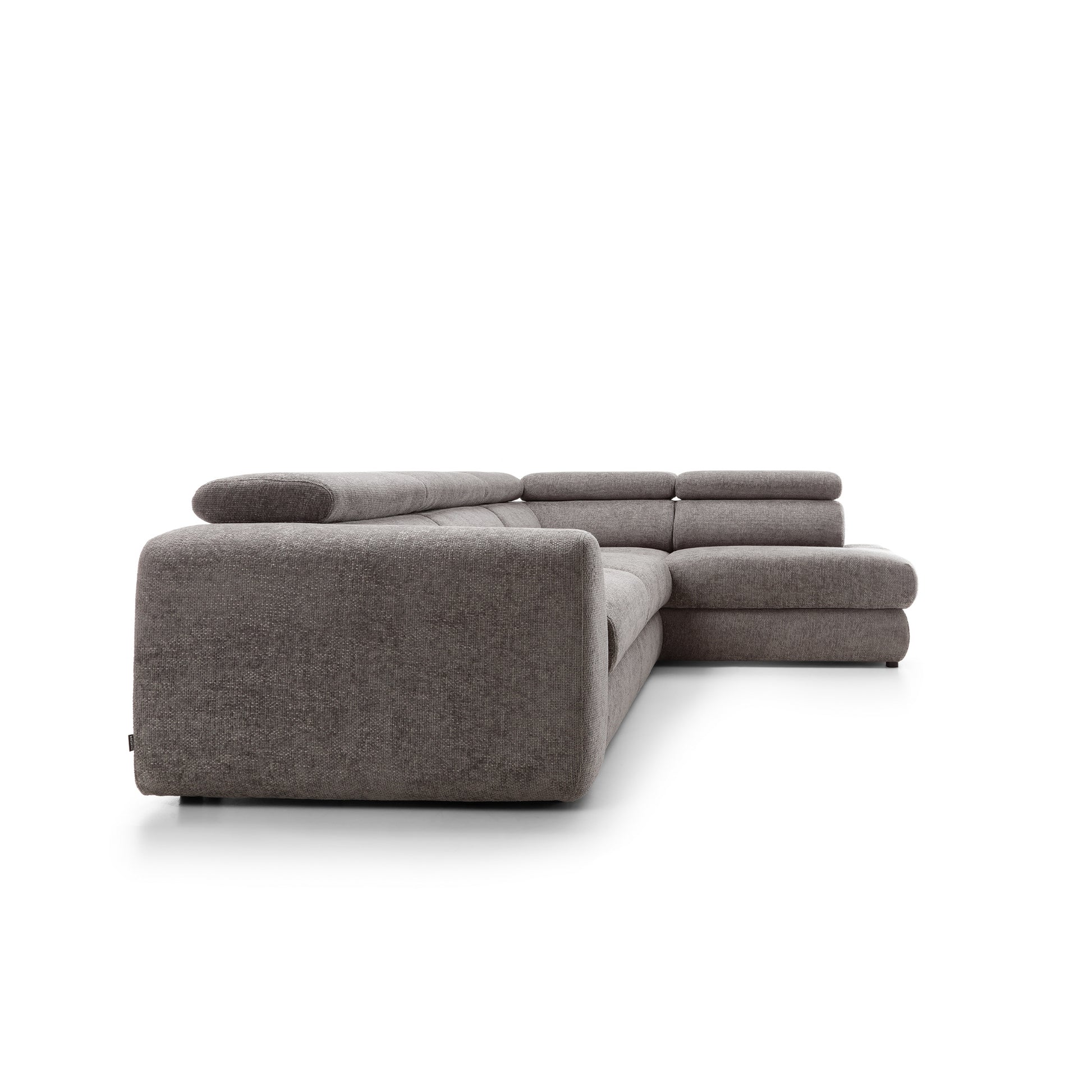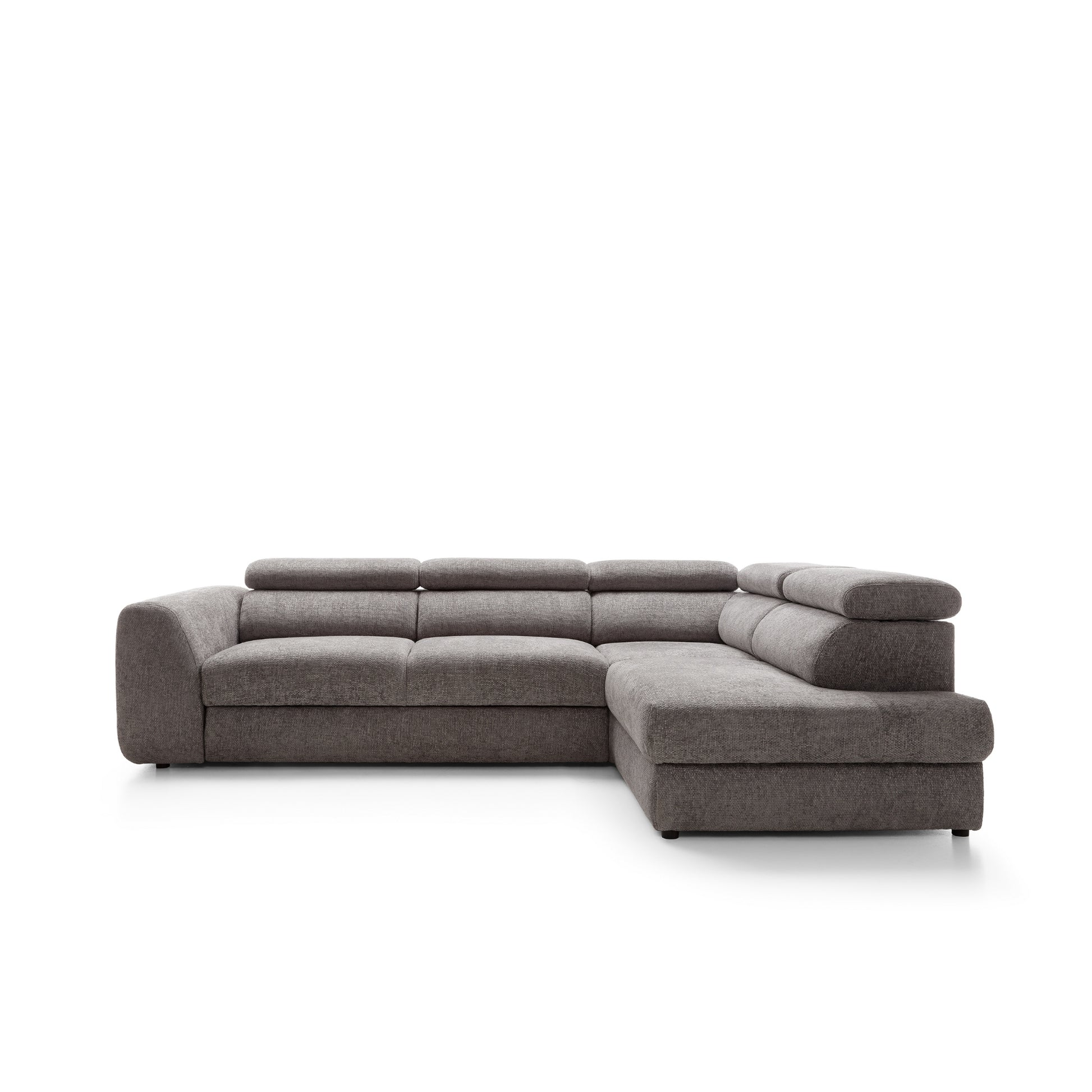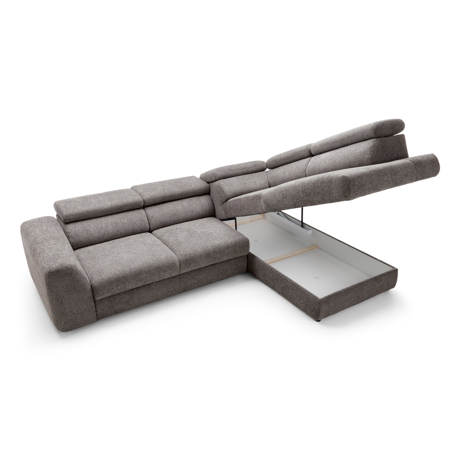 Szerokie, miękkie siedziska i grube oparcia zapewniają wygodę niezależnie od pory dnia. Wydłużona część narożna (207 cm) umożliwia swobodne wyciągnięcie nóg i relaks w pozycji półleżącej. Dodatkowo, regulowane zagłówkipozwalają dopasować kąt podparcia do własnych preferencji – idealne na dłuższy odpoczynek, filmowy wieczór czy popołudniową drzemkę.