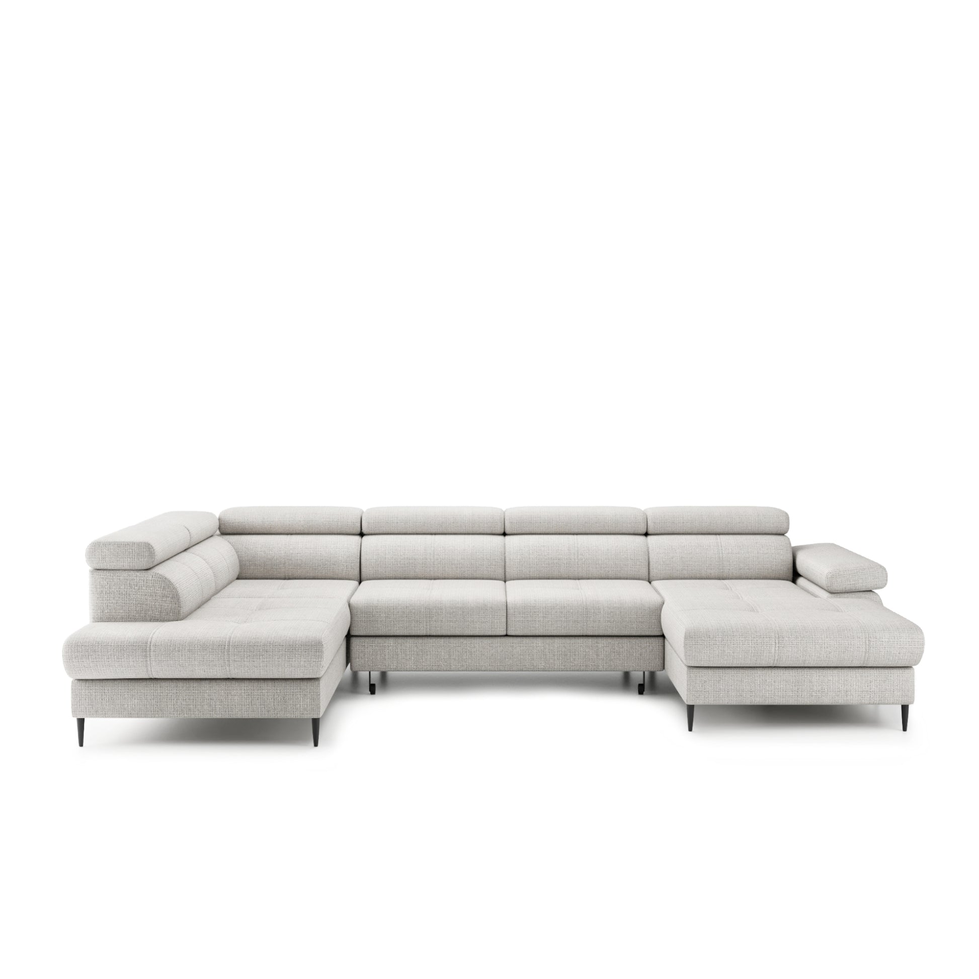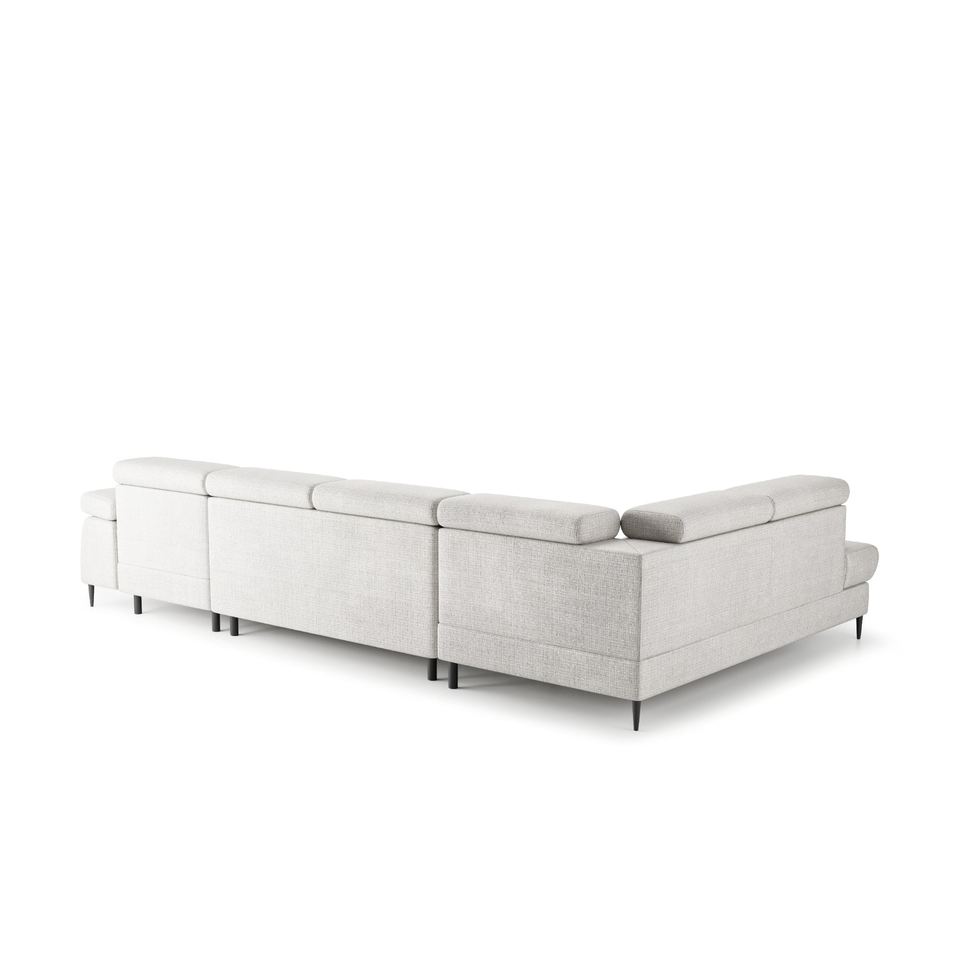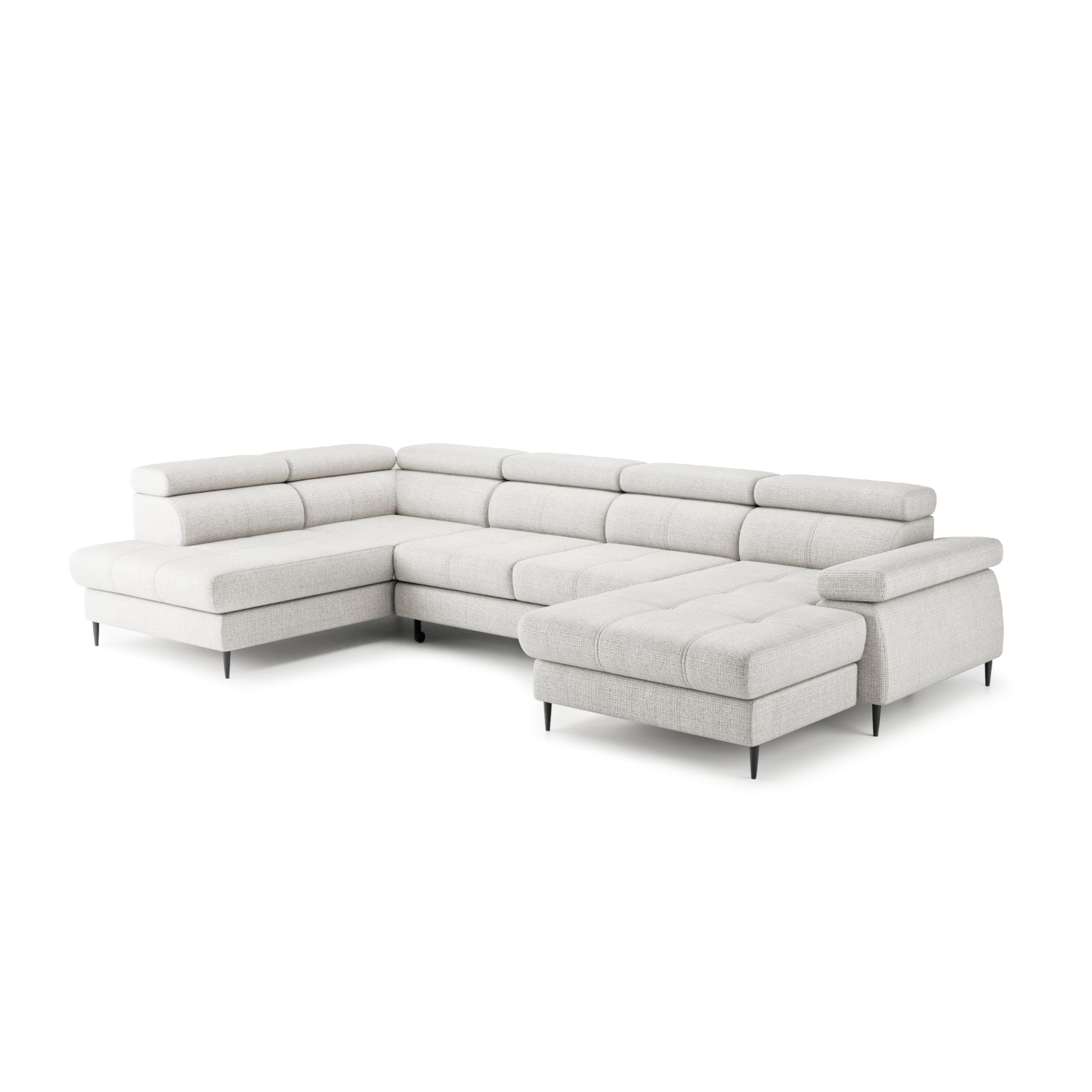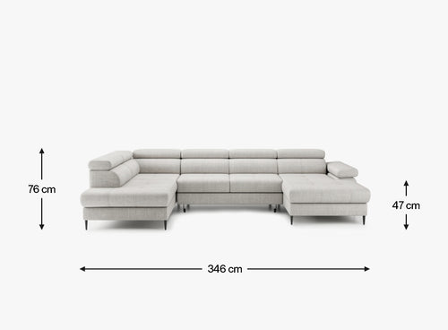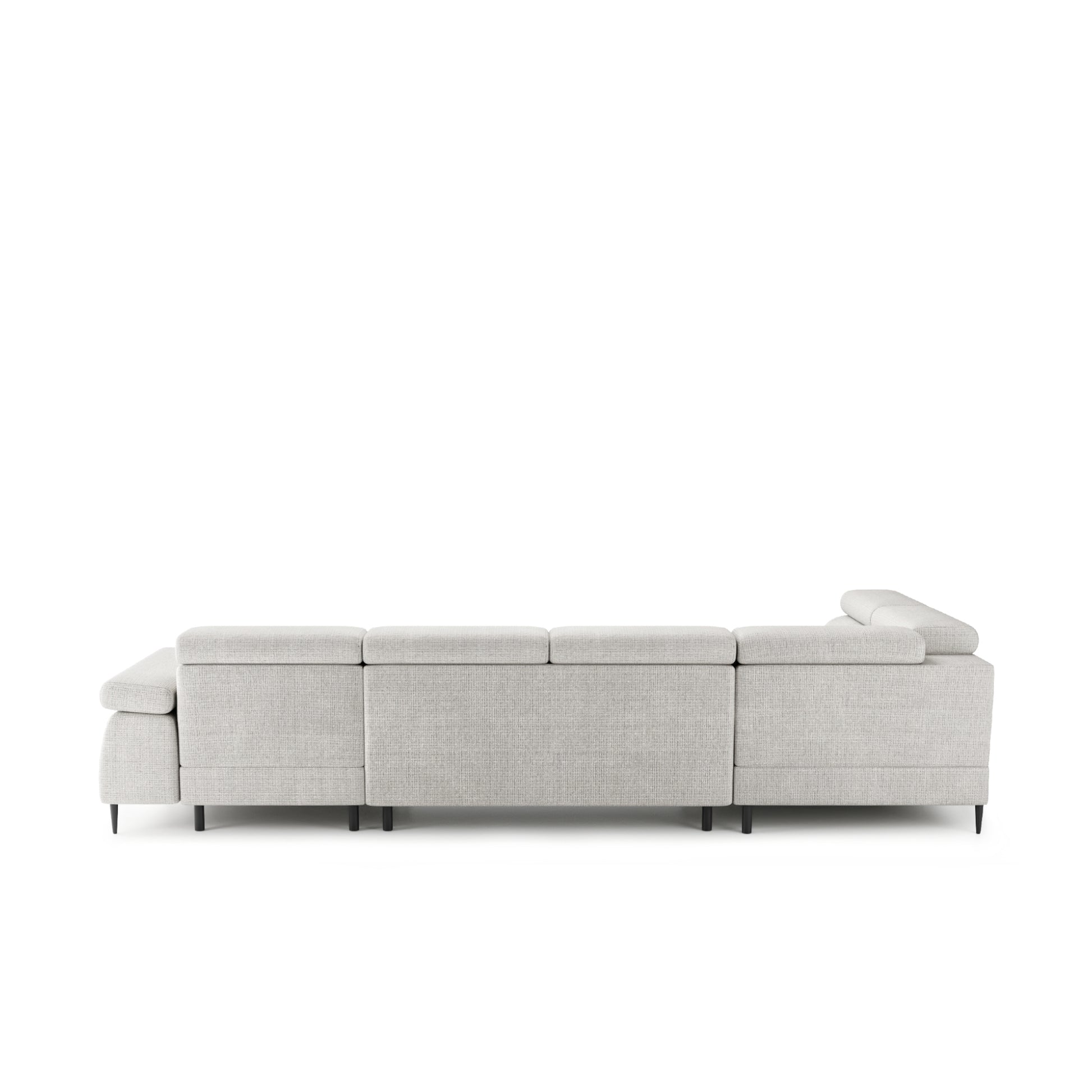 Dzięki rozbudowanym wymiarom (szerokość 346 cm, głębokość 102 cm, część narożna 203 cm) Cordoba III oferuje obszerną przestrzeń wypoczynkową, która doskonale sprawdzi się w większych salonach. Wysokość siedziska 47 cm i jego szerokość użytkowa 270 cm zapewniają komfort zarówno przy krótkim relaksie, jak i dłuższym wypoczynku. Regulowane zagłówki z eleganckim, czarnym wykończeniem umożliwiają dopasowanie kąta oparcia do indywidualnych potrzeb, podnosząc komfort i podkreślając nowoczesny styl mebla.