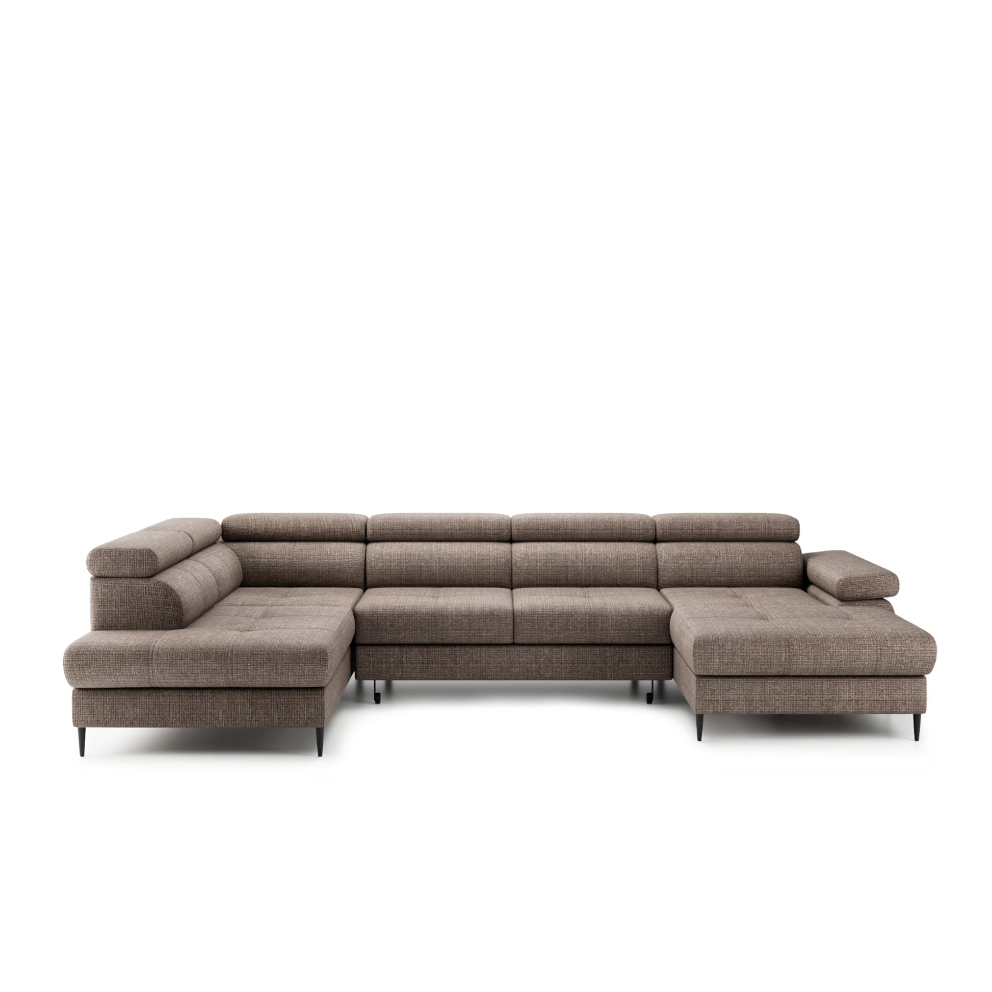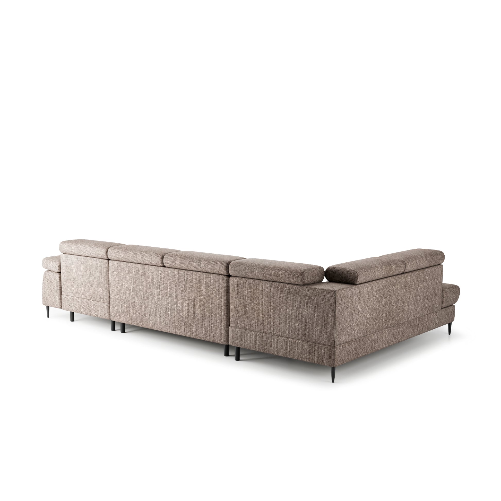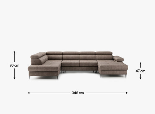 Dzięki rozbudowanym wymiarom (szerokość 346 cm, głębokość 102 cm, część narożna 203 cm) Cordoba III oferuje obszerną przestrzeń wypoczynkową, która doskonale sprawdzi się w większych salonach. Wysokość siedziska 47 cm i jego szerokość użytkowa 270 cm zapewniają komfort zarówno przy krótkim relaksie, jak i dłuższym wypoczynku. Regulowane zagłówki z eleganckim, czarnym wykończeniem umożliwiają dopasowanie kąta oparcia do indywidualnych potrzeb, podnosząc komfort i podkreślając nowoczesny styl mebla.