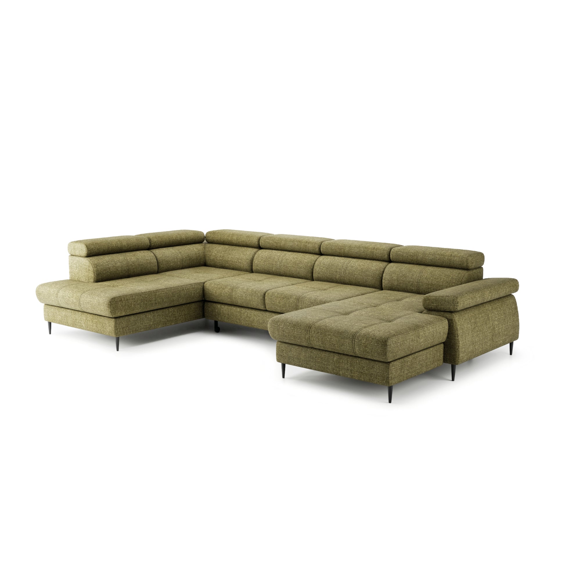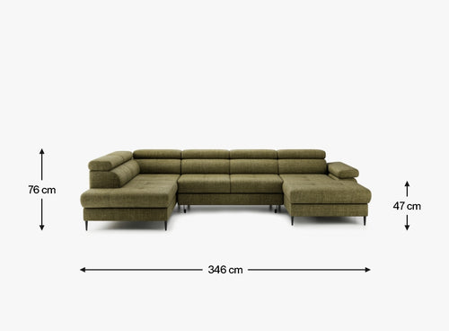 Dzięki rozbudowanym wymiarom (szerokość 346 cm, głębokość 102 cm, część narożna 203 cm) Cordoba III oferuje obszerną przestrzeń wypoczynkową, która doskonale sprawdzi się w większych salonach. Wysokość siedziska 47 cm i jego szerokość użytkowa 270 cm zapewniają komfort zarówno przy krótkim relaksie, jak i dłuższym wypoczynku. Regulowane zagłówki z eleganckim, czarnym wykończeniem umożliwiają dopasowanie kąta oparcia do indywidualnych potrzeb, podnosząc komfort i podkreślając nowoczesny styl mebla.