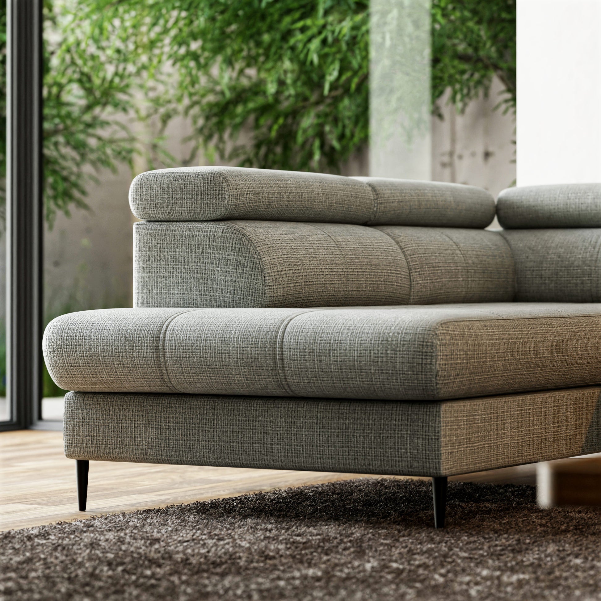 Wykończony tkaniną Cremona, narożnik zachwyca nie tylko wyglądem, ale i trwałością. Cremona to materiał o wysokiej odporności na ścieranie (60 000–70 000 cykli Martindale’a) i gramaturze 465 g/m² ± 5%, cechujący się przyjemną w dotyku strukturą oraz eleganckim wykończeniem, które świetnie prezentuje się w każdym nowoczesnym wnętrzu.