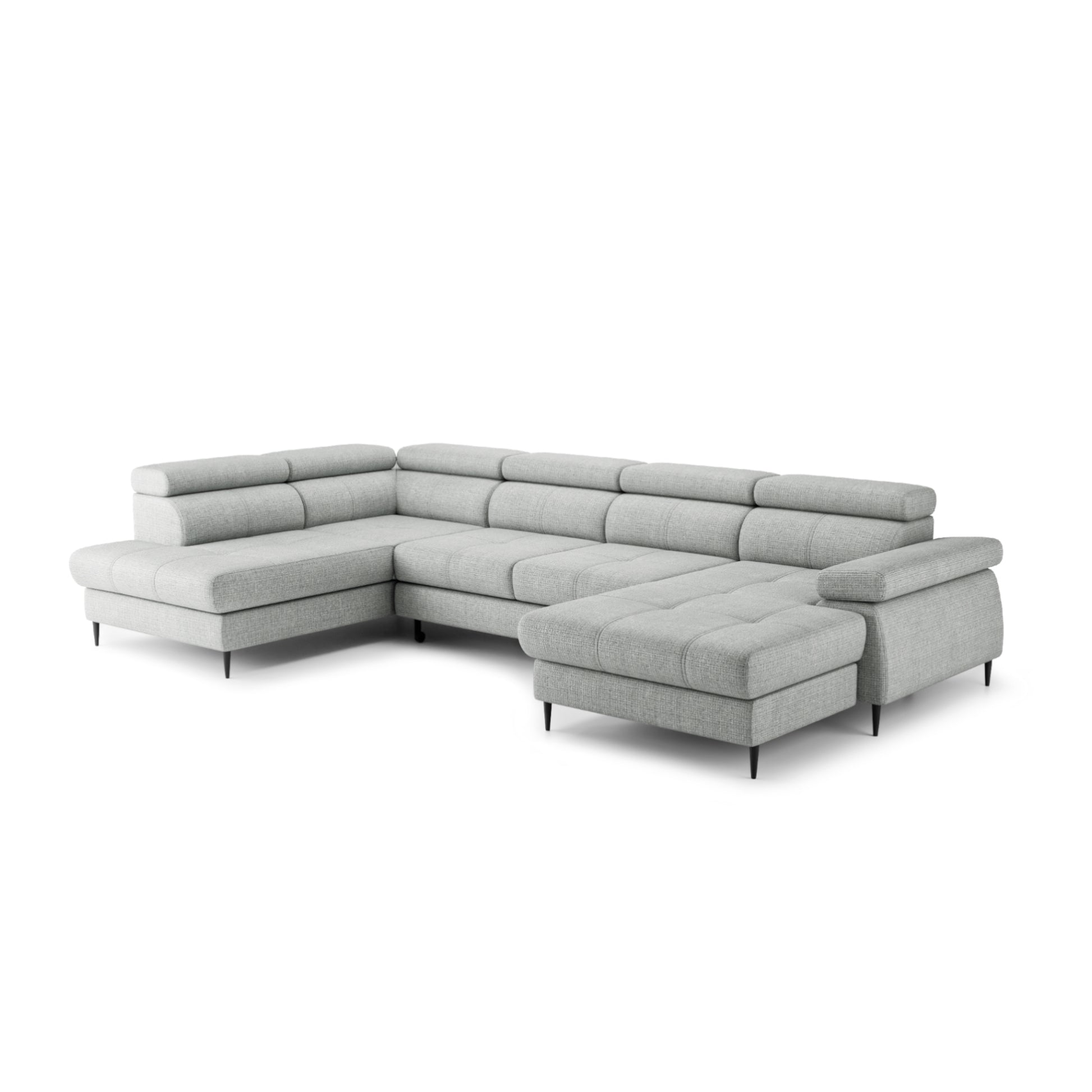 Dzięki rozbudowanym wymiarom (szerokość 346 cm, głębokość 102 cm, część narożna 203 cm) Cordoba III oferuje obszerną przestrzeń wypoczynkową, która doskonale sprawdzi się w większych salonach. Wysokość siedziska 47 cm i jego szerokość użytkowa 270 cm zapewniają komfort zarówno przy krótkim relaksie, jak i dłuższym wypoczynku. Regulowane zagłówki z eleganckim, czarnym wykończeniem umożliwiają dopasowanie kąta oparcia do indywidualnych potrzeb, podnosząc komfort i podkreślając nowoczesny styl mebla.