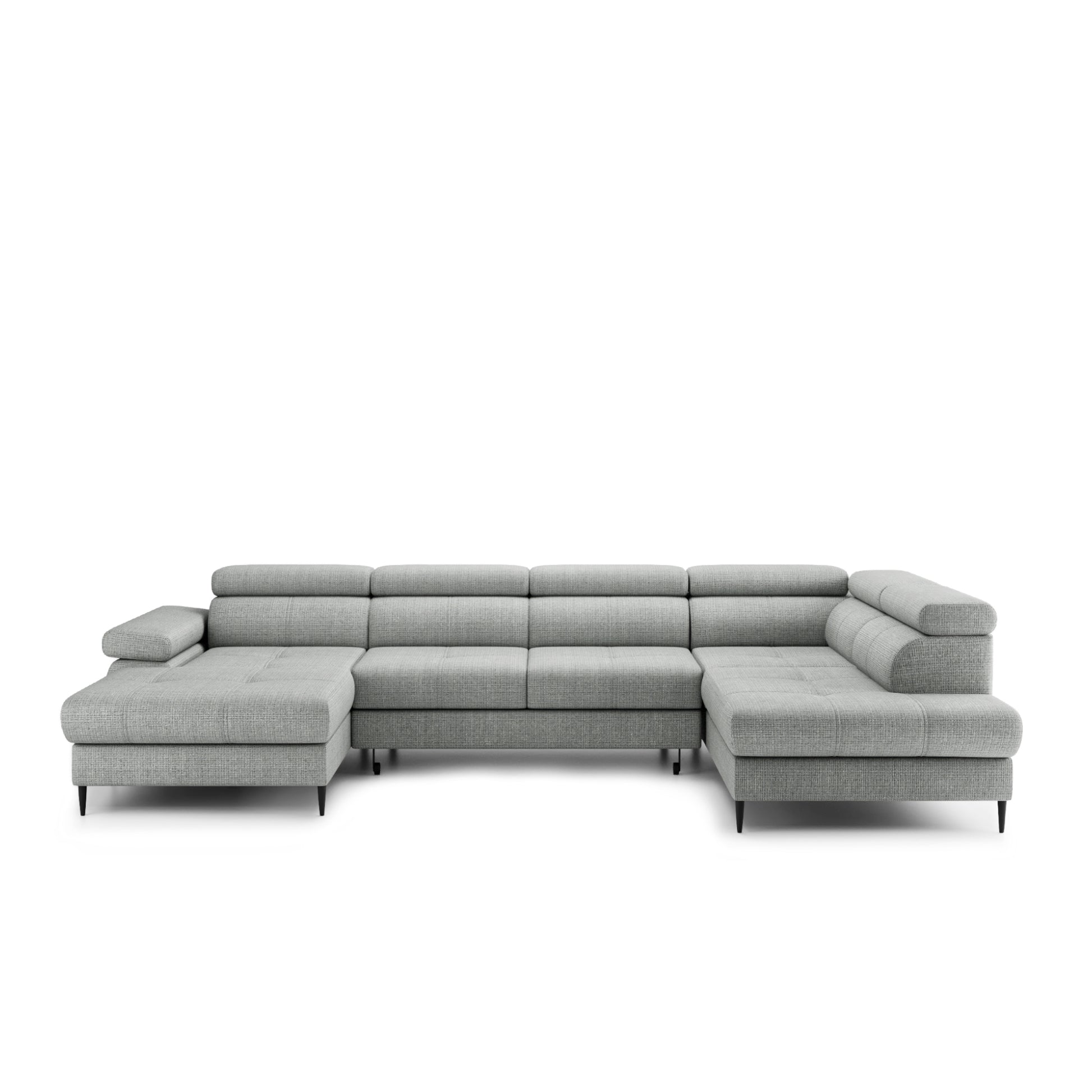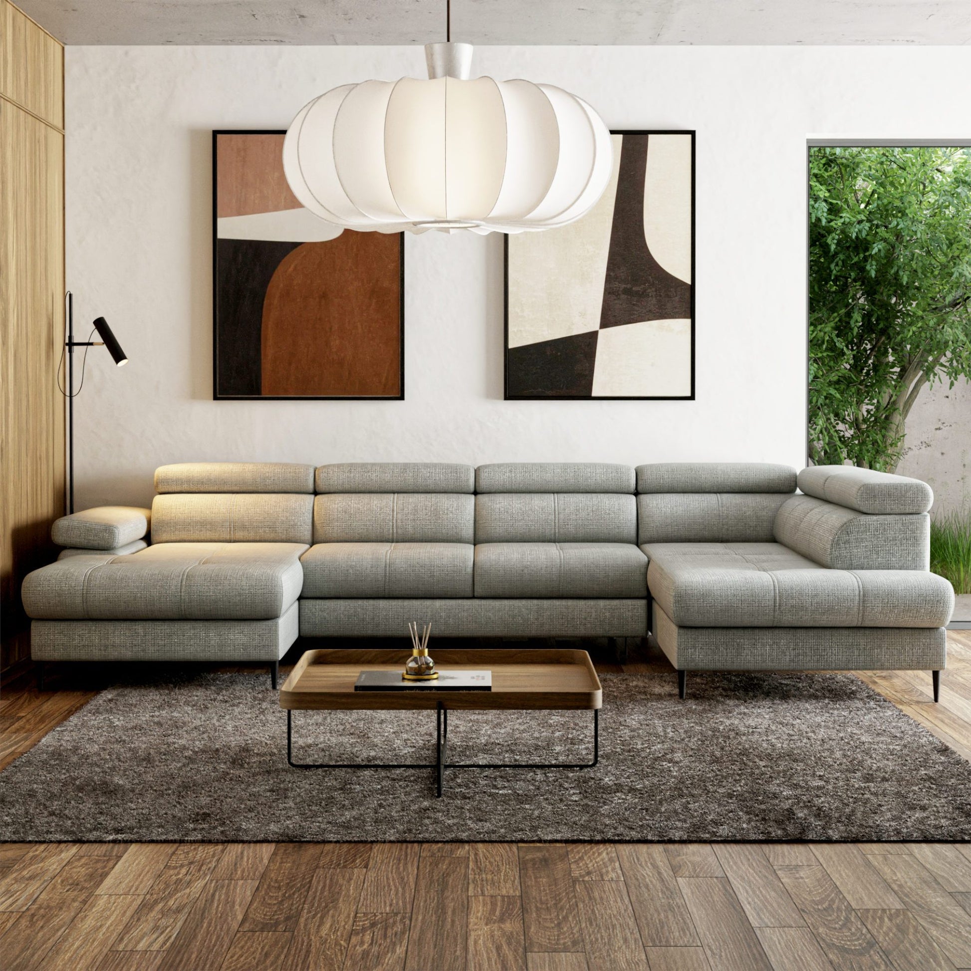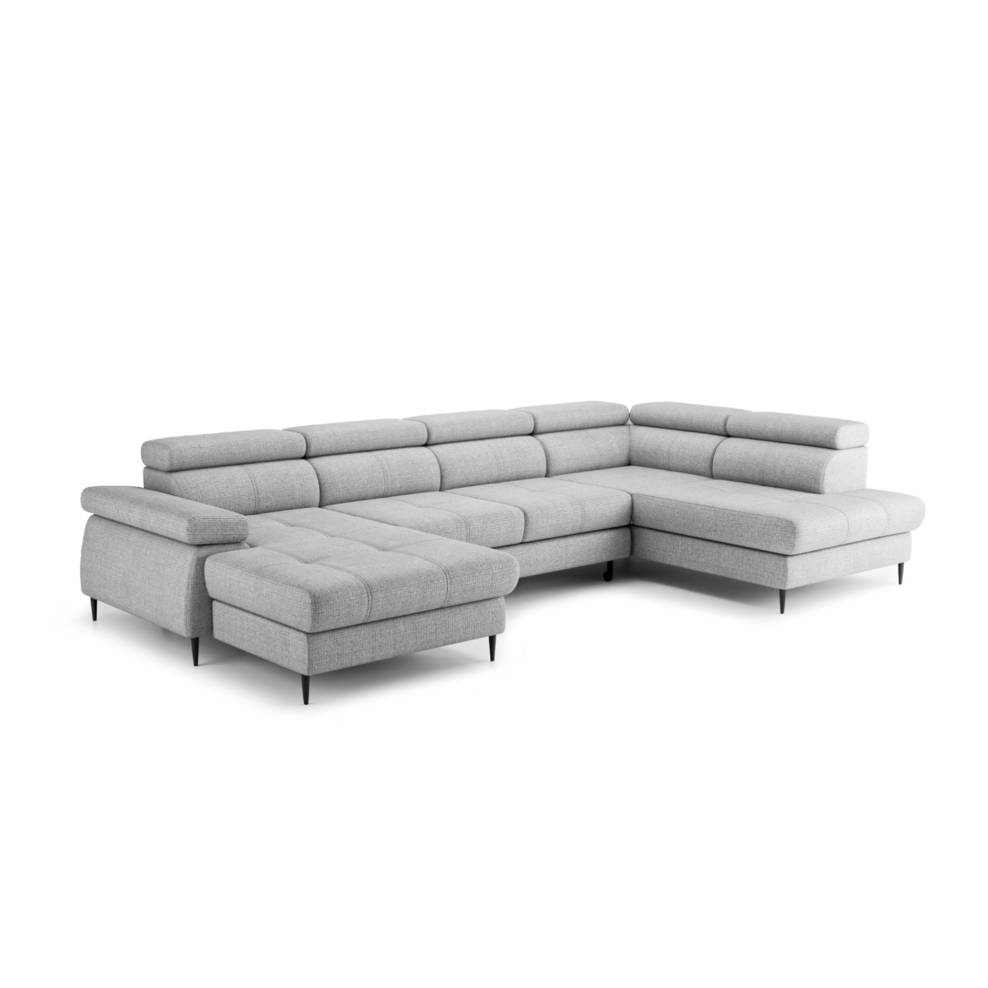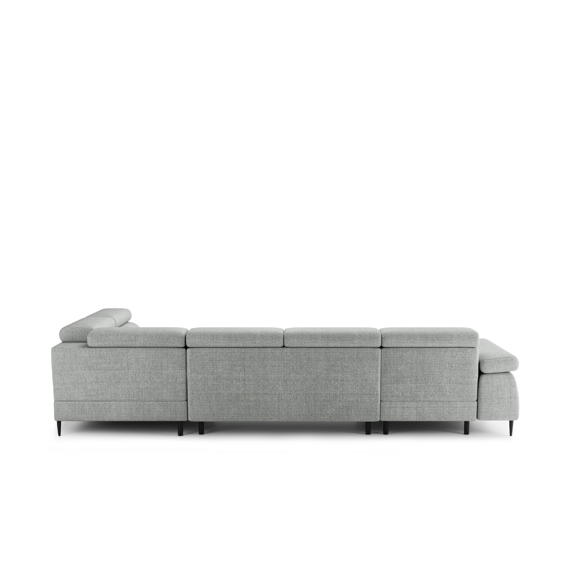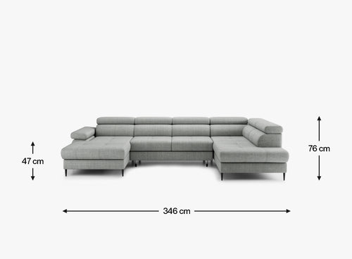 Dzięki rozbudowanym wymiarom (szerokość 346 cm, głębokość 102 cm, część narożna 203 cm) Cordoba III oferuje obszerną przestrzeń wypoczynkową, która doskonale sprawdzi się w większych salonach. Wysokość siedziska 47 cm i jego szerokość użytkowa 270 cm zapewniają komfort zarówno przy krótkim relaksie, jak i dłuższym wypoczynku. Regulowane zagłówki z eleganckim, czarnym wykończeniem umożliwiają dopasowanie kąta oparcia do indywidualnych potrzeb, podnosząc komfort i podkreślając nowoczesny styl mebla.