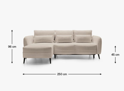 Jego subtelna, nowoczesna forma doskonale komponuje się z różnymi stylami aranżacji – od skandynawskiego po loftowy i nowoczesny. Prosta, ale elegancka linia sprawia, że narożnik staje się centralnym punktem wnętrza, dodając mu przytulności i stylu. Dekoracyjne poduszki podkreślają wyjątkowy design mebla, a jednocześnie zwiększają wygodę codziennego użytkowania. Czarne, drewniane nogi nadają całości lekkości, a jednocześnie zapewniają stabilność i trwałość.