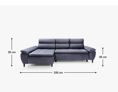Narożnik lewostronny · funkcja spania · pojemnik na pościel · regulowane podłokietniki · profilowane oparcie