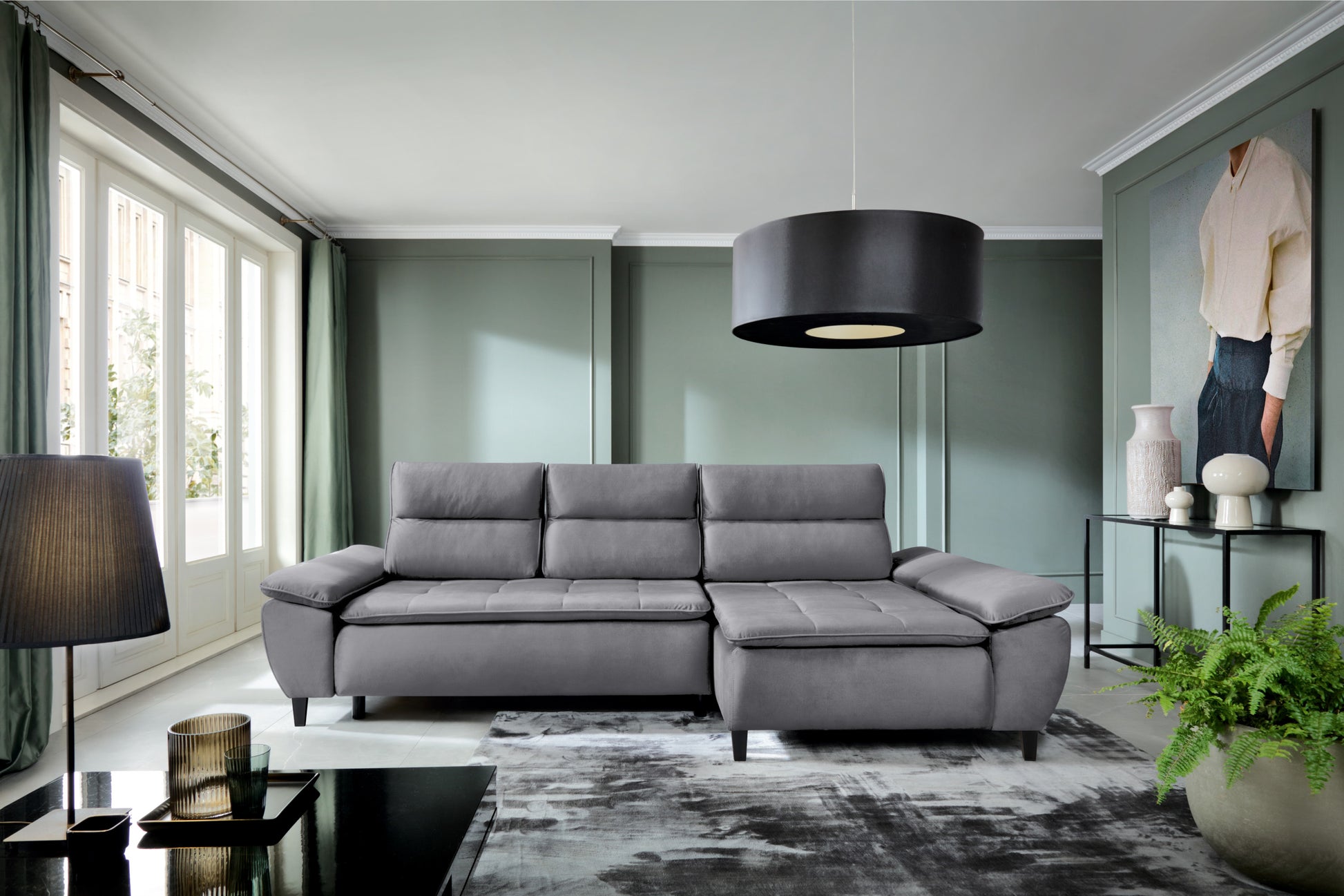 Nowoczesny narożnik rozkładany – na nóżkach i z regulacją podłokietników
