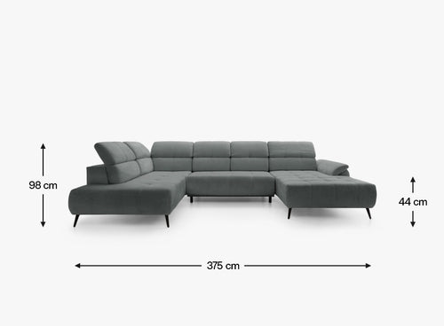 Narożniki z tej linii wyróżniają się niezwykłą wygodą użytkowania, dzięki profilowanym oparciom z możliwością regulacji górnej części – praktycznym zagłówkom. Stylowy wygląd podkreślają eleganckie, dwuigłowe przeszycia z subtelnymi wciągami na siedzisku, ozdobny bok mebla oraz wysokie nóżki, które dodają konstrukcji lekkości i nowoczesnego charakteru.