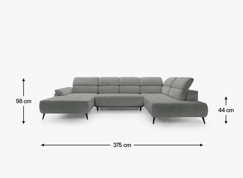 Narożniki z tej linii wyróżniają się niezwykłą wygodą użytkowania, dzięki profilowanym oparciom z możliwością regulacji górnej części – praktycznym zagłówkom. Stylowy wygląd podkreślają eleganckie, dwuigłowe przeszycia z subtelnymi wciągami na siedzisku, ozdobny bok mebla oraz wysokie nóżki, które dodają konstrukcji lekkości i nowoczesnego charakteru.