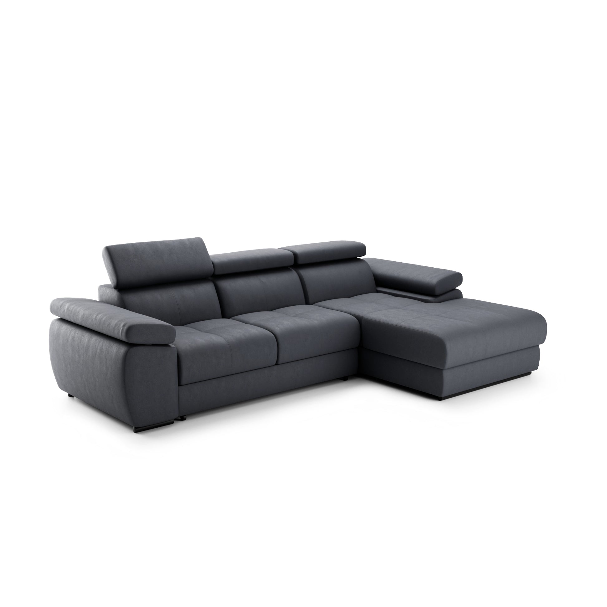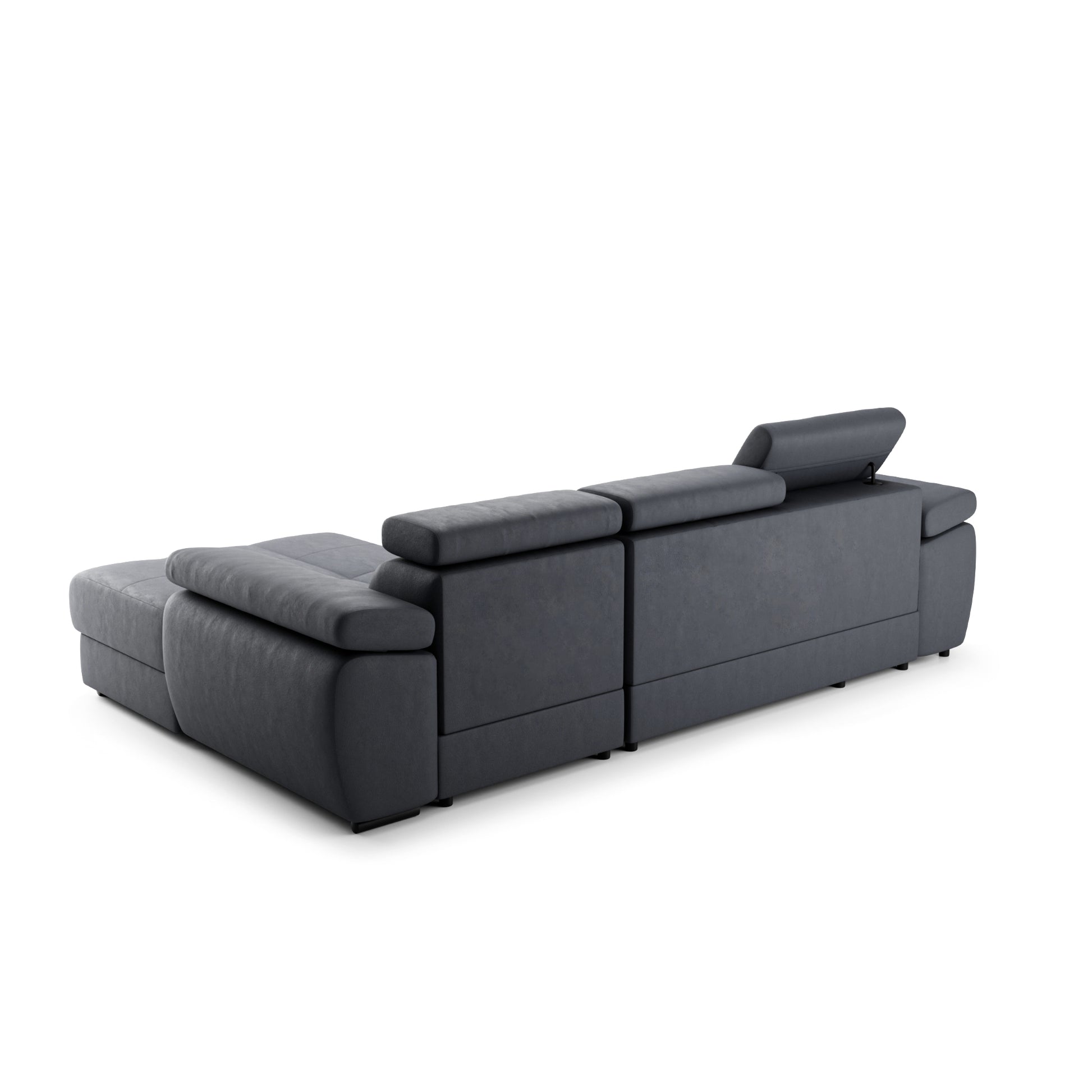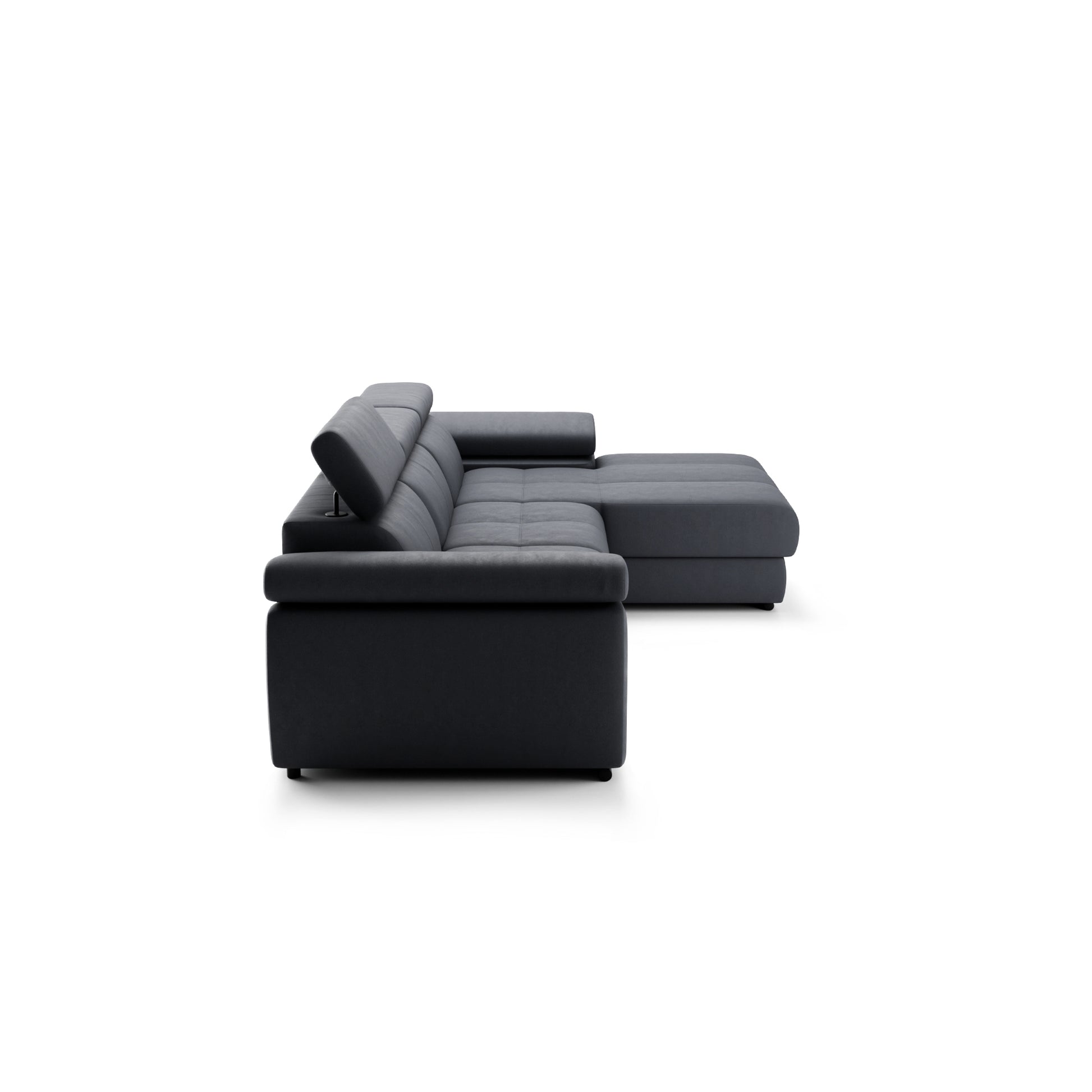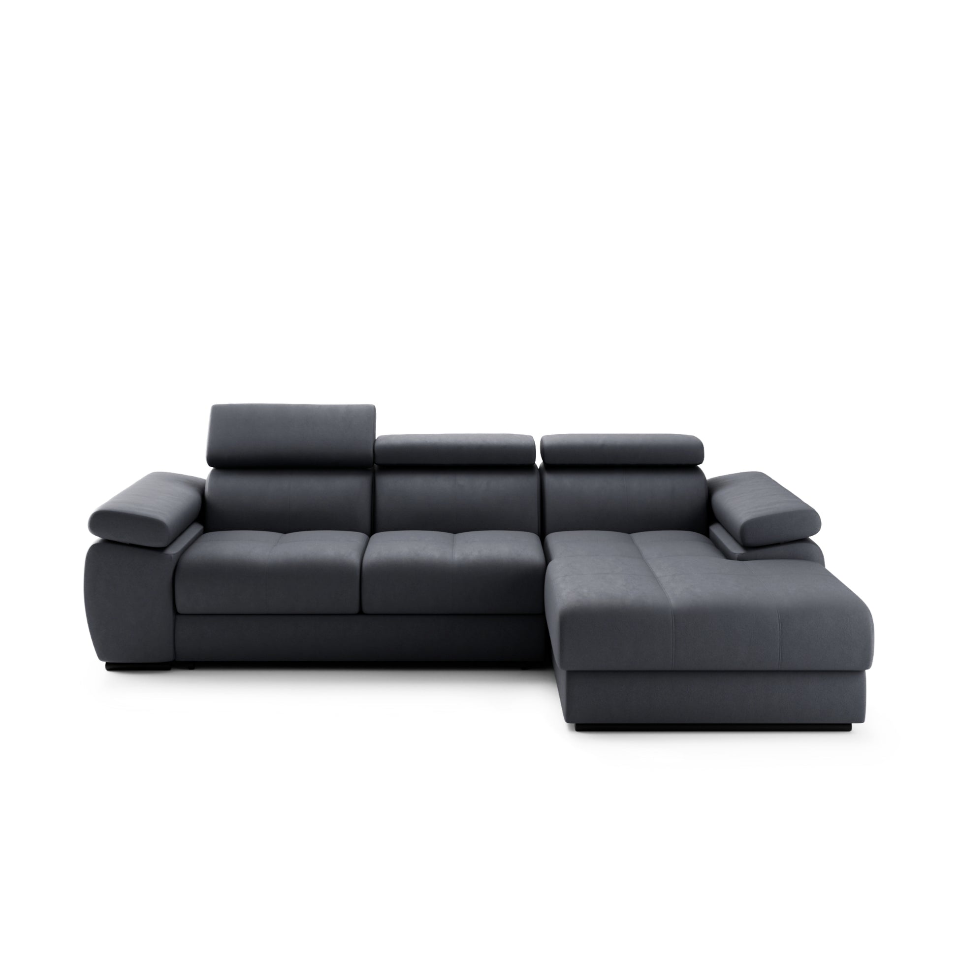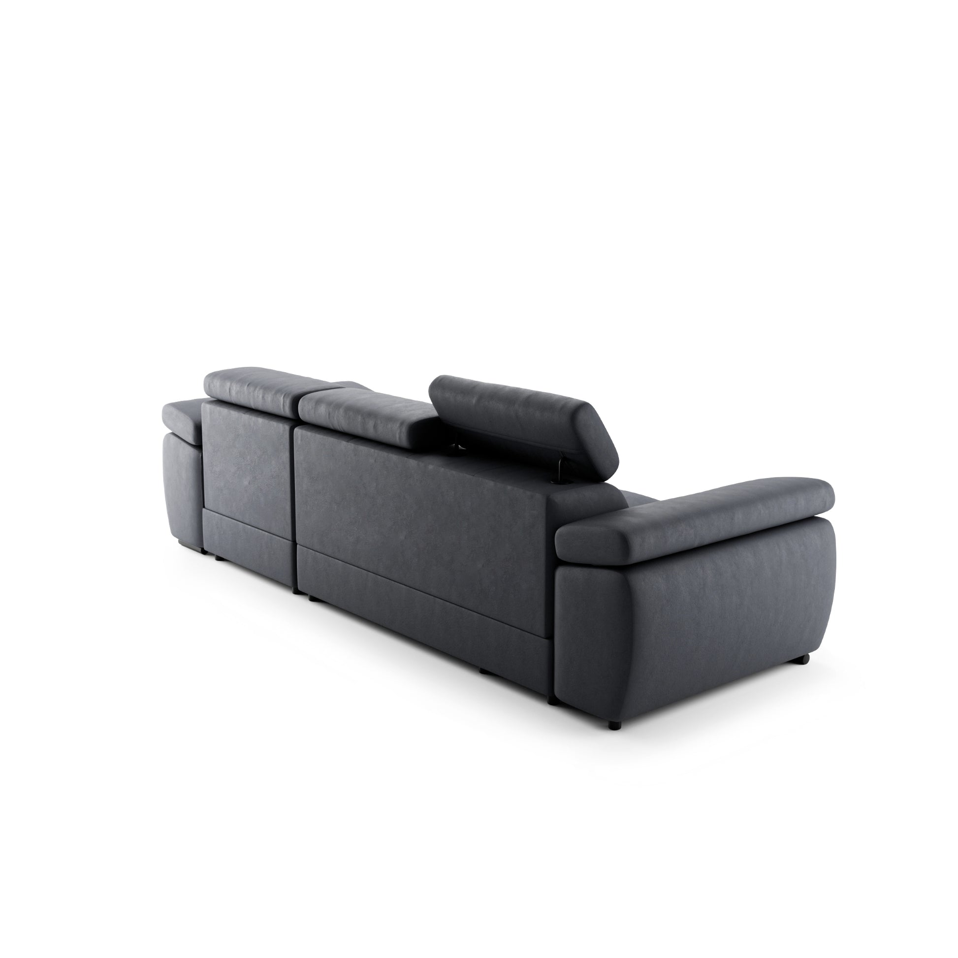 Zagłówki z możliwością regulacji (do wysokości 95 cm) oraz ruchomy podłokietnik pozwalają na pełne dopasowanie do indywidualnych potrzeb, oferując zarówno ergonomię, jak i relaks na najwyższym poziomie. Zastosowanie wysokoelastycznej pianki oraz specjalnie zaprojektowanego układu sprężynującego gwarantuje miękkość i stabilne podparcie, które utrzymuje się przez lata.