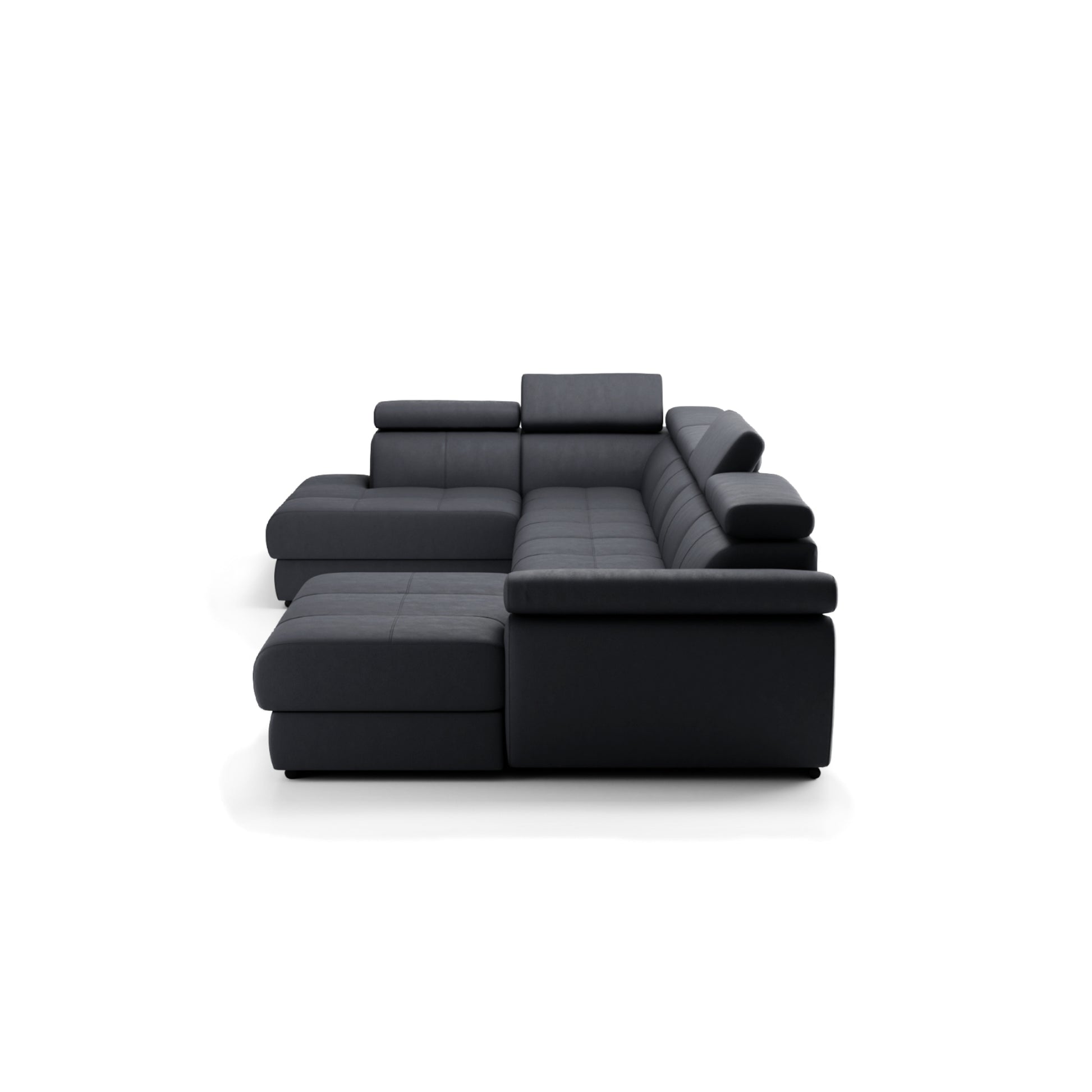 Mebel wyróżnia się starannie wyprofilowaną linią siedziska, które wypełniono wysokoelastyczną pianką i sprężynami, gwarantującymi sprężystość i komfort niezależnie od pozycji. Dodatkowo regulowane zagłówki i podłokietniki pozwalają precyzyjnie dopasować narożnik do indywidualnych potrzeb – czy to do wypoczynku w pozycji półleżącej, czy jako wsparcie podczas czytania.